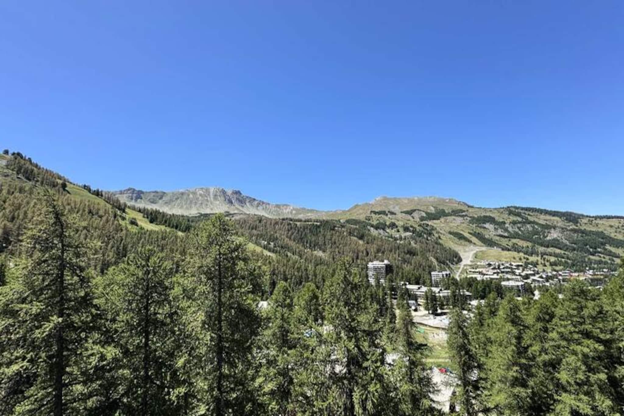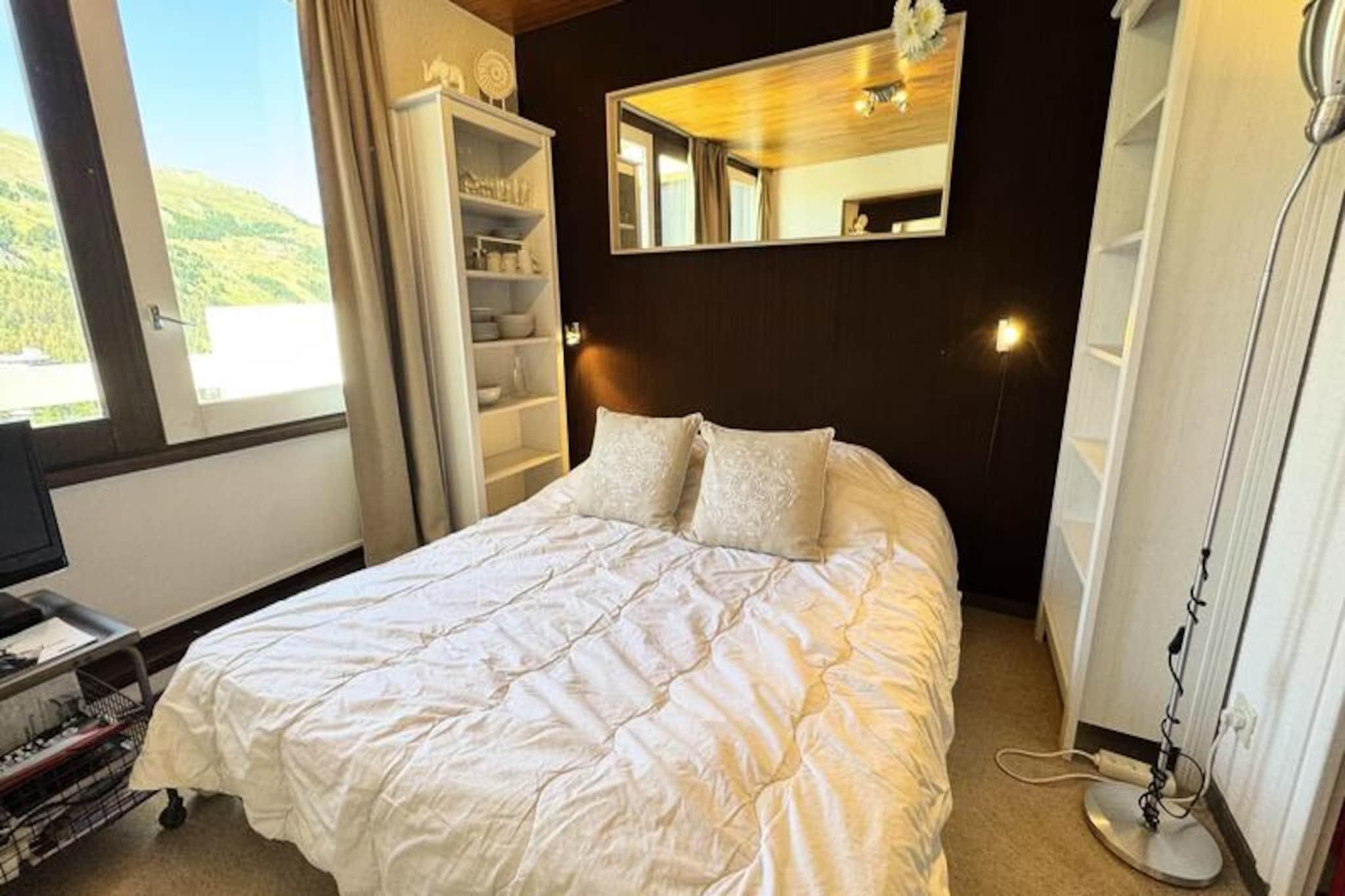 Högt ovanför den pittoreska gröna backen Chemin des Italiens erbjuder denna mysiga lägenhet med ski-in/ski-out en perfekt alpin tillflyktsort för upp till fyra gäster. Från sitt upphöjda läge på 7:e våningen bjuds du på hisnande panoramautsikt över den majestätiska bergskedjan Écrins och de omgivande topparna, vilket skapar en lugn bakgrund för din semester. Oavsett om du besöker oss för snöfyllda äventyr eller sommarresor, placerar denna charmiga fastighet dig i hjärtat av händelsernas centrum. Lägenheten är omsorgsfullt utformad för komfort och bekvämlighet. Vardagsrummet har ett fullt utrustat kök med öppen planlösning och moderna bekvämligheter, inklusive diskmaskin, kombinerad ugn, kylskåp, filterkaffemaskin och en raclettegrill för mysiga middagar i bergen. Koppla av i vardagsrummet med en TV eller varva ner i badrummet, komplett med badkar och toalett. För sovarrangemang är en sovalkov med två våningssängar perfekt för barn eller vänner, medan bäddsoffan i vardagsrummet kan förvandlas till en bekväm dubbelsäng. Kliv ut, och du är bara några minuter från den fyrsäsongsöppna rodelbanan, kälkbacken och sherparestaurangen, samt uthyrningsbutiker för alla dina skidåkningsbehov. En gratis busshållplats vid foten av byggnaden ger enkel tillgång till hela anläggningen, medan den närliggande Point Show, bara 500 meter bort, erbjuder en ny swimmingpool och en mängd olika butiker. Parkeringsplatser finns bekvämt belägna i närheten, vilket garanterar en problemfri vistelse. Oavsett om du är här för att ta dig fram genom orörda backar, utforska natursköna stigar eller bara njuta av den alpina charmen, lovar denna lägenhet en oförglömlig flykt i hjärtat av de franska Alperna.