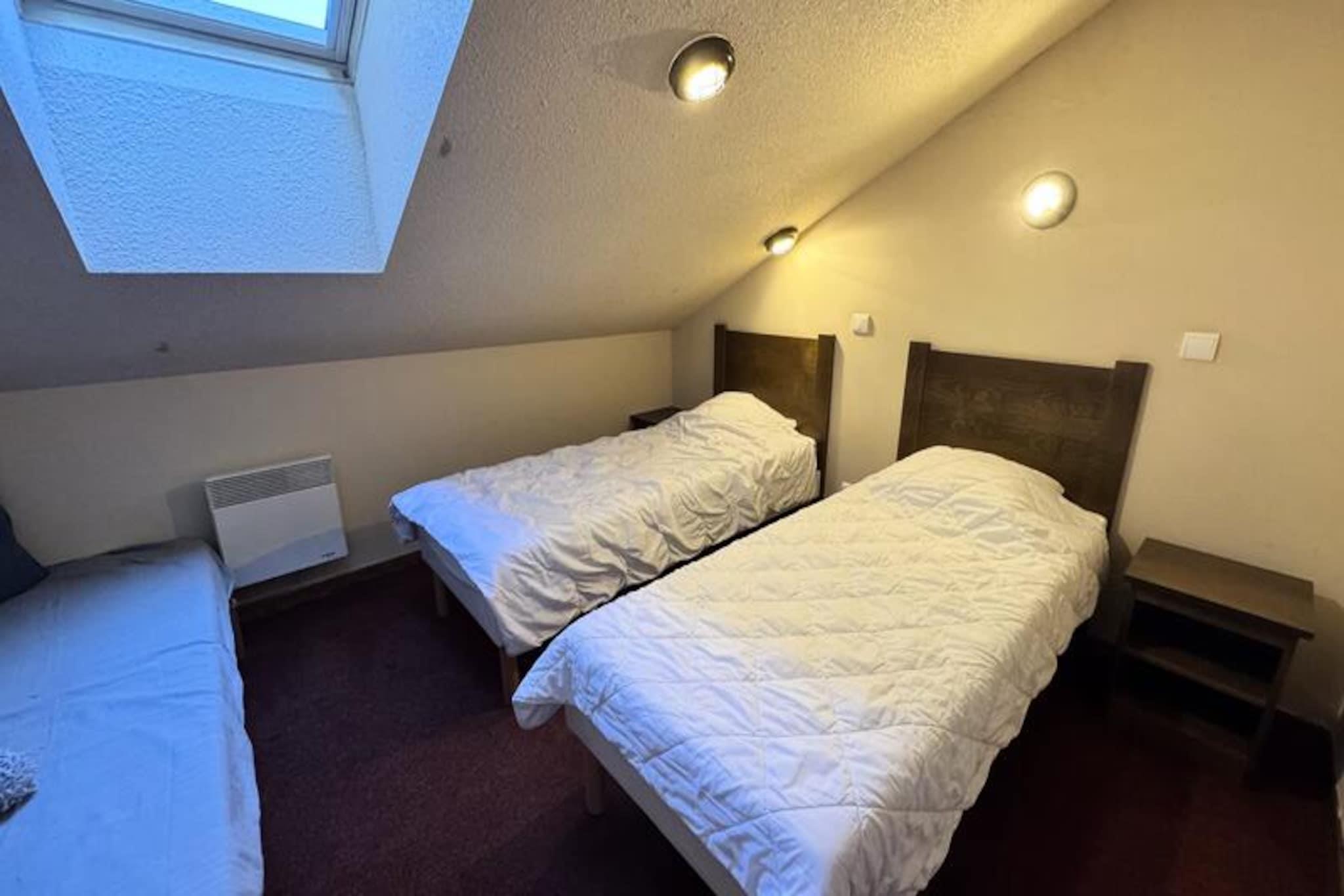 Högt ovanför de fridfulla sluttningarna i de franska Alperna erbjuder denna charmiga duplexlägenhet en perfekt blandning av lugn och äventyr. Belägen i ett lugnt område precis intill orten, erbjuder den direkt tillgång till ski-in/ski-out, vilket gör att du enkelt kan kliva in i det alpina underlandet. Efter en dag med utforskande av snötäckta spår, varva ner på den möblerade terrassen och njut av den hisnande utsikten över bergen som sträcker sig långt in i horisonten. Denna bostad är din port till oförglömliga alpina ögonblick, oavsett om du åker genom färskt pudersnö eller njuter av sommarsolen. \n\nLägenheten är designad för att rymma upp till åtta gäster och har rymliga vardagsrum med en ljus och välkomnande atmosfär. Köket med öppen planlösning är fullt utrustat med moderna apparater, inklusive kylskåp, kombinerad mikrovågsugn, diskmaskin, Nespressomaskin och till och med ett fondue- och racletteset för mysiga kvällar. På bottenvåningen hittar du ett sovrum med våningssängar, ett duschrum med toalett och det huvudsakliga vardagsrummet. På övervåningen erbjuder ytterligare två sovrum – ett med dubbelsäng och det andra med tre enkelsängar – vilsamma avkopplingar. Ett badrum och en separat toalett kompletterar planlösningen och garanterar komfort för alla. Bäddsoffan i vardagsrummet ger extra sovplats, vilket gör den idealisk för familjer eller grupper av vänner.\n\nResidenset har också en swimmingpool, öppen under turistsäsong, som erbjuder ett uppfriskande dopp efter en dag i backarna. I närheten hittar du skidskolor, butiker på Point Show och resortens centrum, allt inom gångavstånd. Reserverade parkeringsplatser säkrade med en digital kod och bom ökar bekvämligheten, medan Wi-Fi och tvättmöjligheter garanterar en problemfri vistelse. Oavsett om du är här för vintersport eller sommarvandringar, är denna lägenhet perfekt belägen för att utforska Alpernas skönhet.\n\nVälj detta residens för dess oslagbara läge, moderna bekvämligheter och löftet att skapa värdefulla minnen i hjärtat av de franska Alperna.