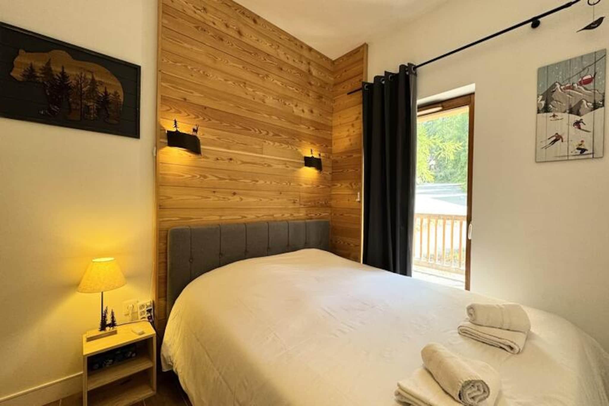 I hjärtat av de fridfulla franska Alperna inbjuder denna moderna bostad dig att njuta av en oöverträffad bergsflykt. Bara 400 meter från Point Show och de första skidliftarna erbjuder fastigheten oöverträffad bekvämlighet för både skidentusiaster och naturälskare. Tänk dig att vakna upp till den friska alpina luften och den hisnande utsikten över Peynier, där snöklädda toppar sträcker sig så långt ögat kan nå och skapar en magisk bakgrund för din semester. Oavsett om du är här för vintersport eller sommarvandringar, sätter denna bostad scenen för oförglömliga äventyr. \n\nStig in i denna charmiga lägenhet på 34 m² och upptäck ett varmt, omsorgsfullt designat utrymme som kombinerar komfort och praktiskhet. Köket med öppen planlösning är fullt utrustat med moderna apparater, inklusive diskmaskin, ugn, induktionshäll, Nespressomaskin och till och med en raclettegrill för mysiga kvällar. Vardagsrummet, komplett med TV, erbjuder en perfekt plats att varva ner efter en dags utforskande. Sovrummen inkluderar ett lugnt sovrum med dubbelsäng, en sovalkov med våningssängar och ett elegant badrum med separat toalett, vilket garanterar en vilsam vistelse för upp till fyra gäster. \n\nBekvämlighet är i främsta rummet här, med sängkläder, bäddade sängar vid ankomst och slutstädning ingår. Residenset har också privata parkeringsplatser, två hissar och ett säkert skidrum för din utrustning. Wi-Fi säkerställer att du håller dig uppkopplad medan du njuter av lugnet i bergen. \n\nMed butiker och backar bara en kort promenad bort, och den majestätiska utsikten över Peynier som möter dig varje morgon, är detta residens det perfekta valet för dig som söker en harmonisk blandning av komfort, äventyr och alpin charm. Oavsett om du snubblar genom orörd snö eller njuter av sommarsolen, lovar detta boende en semester att uppskatta.