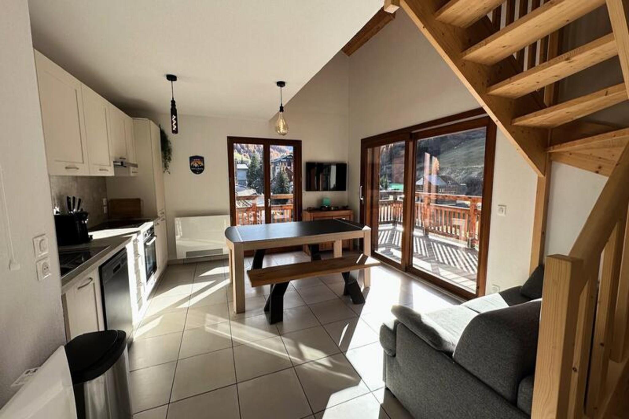 Fastigheten, tillsammans med sin eleganta och rymliga layout, erbjuder bekvämt boende för upp till sex personer. Lägenheten har två dubbelrum och ett sovrum med en våningssäng, vilket ger gott om sovmöjligheter för familjer eller små grupper. Vardagsrummet är öppet och inbjudande, med en terrass med vacker utsikt över Sainte-Maries sluttningar, kompletterad med en balkong i sydostläge. Även om husdjur inte är tillåtna, kan gästerna välja ytterligare tjänster som att hyra sängkläder och handdukar mot en avgift. Observera att fastigheten är rökfri och kräver en deposition vid bokning. Även om ingen slutstädning ingår, är den tillgänglig mot en extra kostnad. Beläget vid foten av Sainte-Maries backar, erbjuder detta residens privilegierad tillgång för skid entusiaster, vilket gör det till ett idealiskt val för en vintersemester. Gästerna kan njuta av bekvämligheten med en närliggande gratis pendelhållplats, som ger enkel tillgång till resortens centrum på bara 15 till 20 minuter. Oavsett om du är här för att åka skidor, vandra eller bara för att varva ner, ger bostadens närhet till utomhusaktiviteter och den omgivande naturliga skönheten den perfekta miljön för en aktiv eller avkopplande semester. Fastighetens centrala läge i en liten bergsby förstärker dess attraktivitet ytterligare, och erbjuder en fridfull oas med enkel tillgång till lokala attraktioner. Lägenheten är välutrustad med moderna bekvämligheter för att säkerställa en bekväm vistelse. Köket har nödvändiga apparater som diskmaskin, kyl/frys, induktionshällar, traditionell ugn, mikrovågsugn, brödrost, vattenkokare och till och med en Tassimo kaffemaskin. Dessutom kan gästerna njuta av bekvämligheten med en tvättmaskin och specialutrustning som en våffel- och fonduebryggare, perfekt för mysiga kvällar. Med allt du behöver för att förbereda och njuta av måltider garanterar lägenheten en bekväm och självförsörjande upplevelse för gästerna.