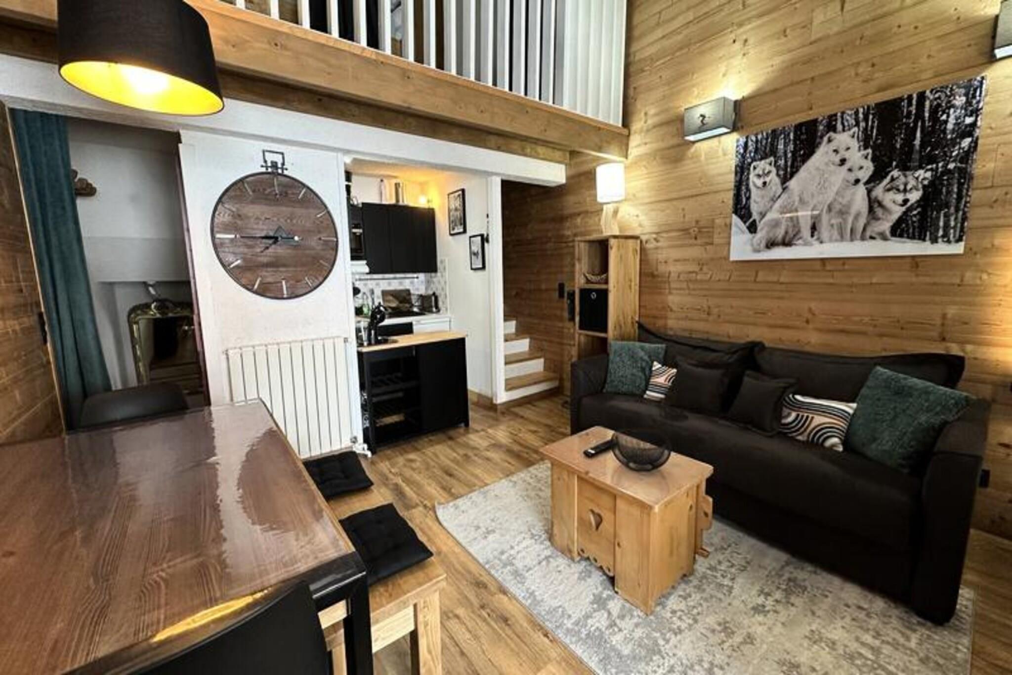 Denna fastighet, tillsammans med sin bekväma tillgång till ski-in/ski-out, erbjuder en lägenhet på 40 m² designad för att rymma upp till 7 gäster, vilket gör den perfekt för familjer eller små grupper. Lägenheten har ett sovrum med våningssäng och låda, en mezzanine med dubbelsäng och ett vardagsrum med en bäddsoffa. Den har också en liten balkong i söderläge med utsikt över backarna. Ytterligare bekvämligheter inkluderar en elektrisk öppen spis, högtalare, kombiugn, vattenkokare, Dolce Gusto kaffemaskin, stavmixer och brödrost. Boendet tillåter inte husdjur och rökning är strängt förbjuden. Slutstädning och sängkläder erbjuds mot en extra kostnad, med en deposition som krävs.