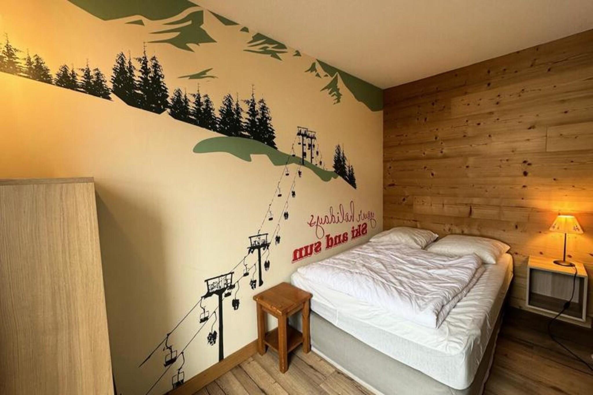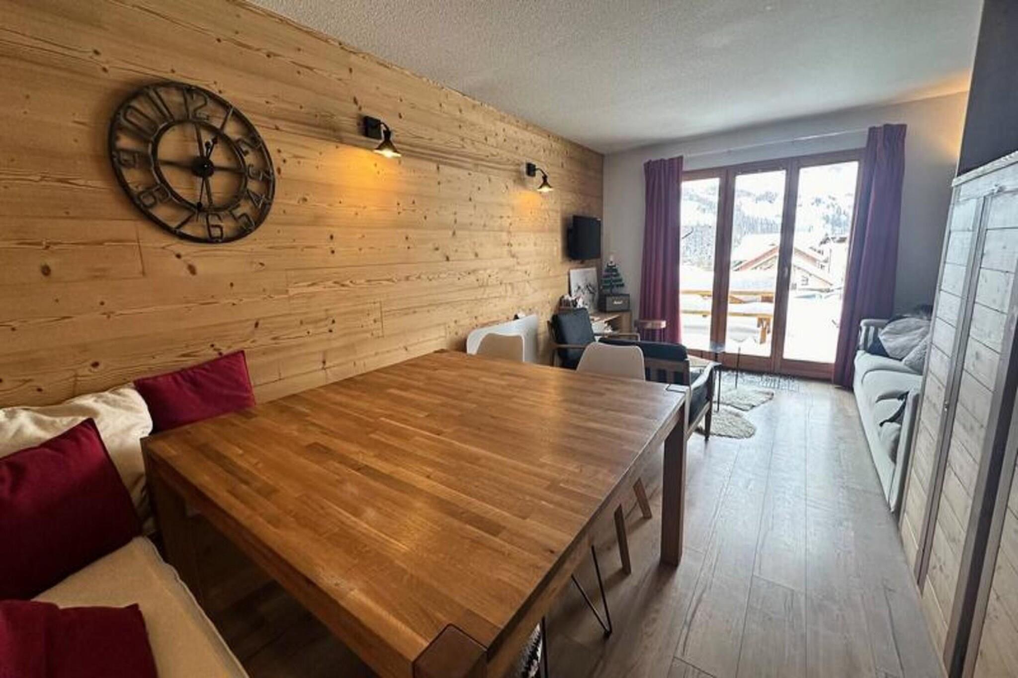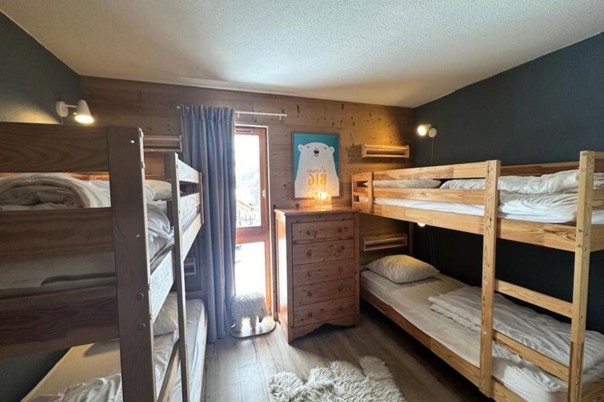 Denna charmiga triplex ligger högst upp på resorten och erbjuder en perfekt bas för din bergsresa. Beläget mittemot Caribou rodel (sommar rodel) och bara en kort bit från skidbackarna, ger det snabb tillgång till snöiga äventyr. En närliggande gratis pendelhållplats garanterar bekväm transport runt resorten. Bottenvåningen välkomnar dig till ett fullt utrustat kök som leder till ett rymligt, ljust vardagsrum med en stor terrass med fantastisk utsikt över resorten. På första våningen hittar du ett dubbelrum med balkong, ett badrum med toalett och en sovsal med fyra våningssängar. Den andra våningen innehåller ett duschrum med toalett och två dubbelrum, ett med egen balkong. Köket är omtänksamt utrustat med en traditionell ugn, mikrovågsugn, induktionshällar, pannkaksbryggare, Nespresso-maskin, brödrost, diskmaskin, kyl/frys och en mixer, vilket gör måltidsberedningen enkel och trevlig. För extra bekvämlighet finns en tvättmaskin och torktumlare i boendet. Linne och slutstädning är valfria, med en husdjursfri, rökfri policy som säkerställer en ren och bekväm vistelse. Med hisnande vyer, enkel tillgång till backarna och massor av bekvämligheter, är detta boende perfekt för din alpina reträtt.