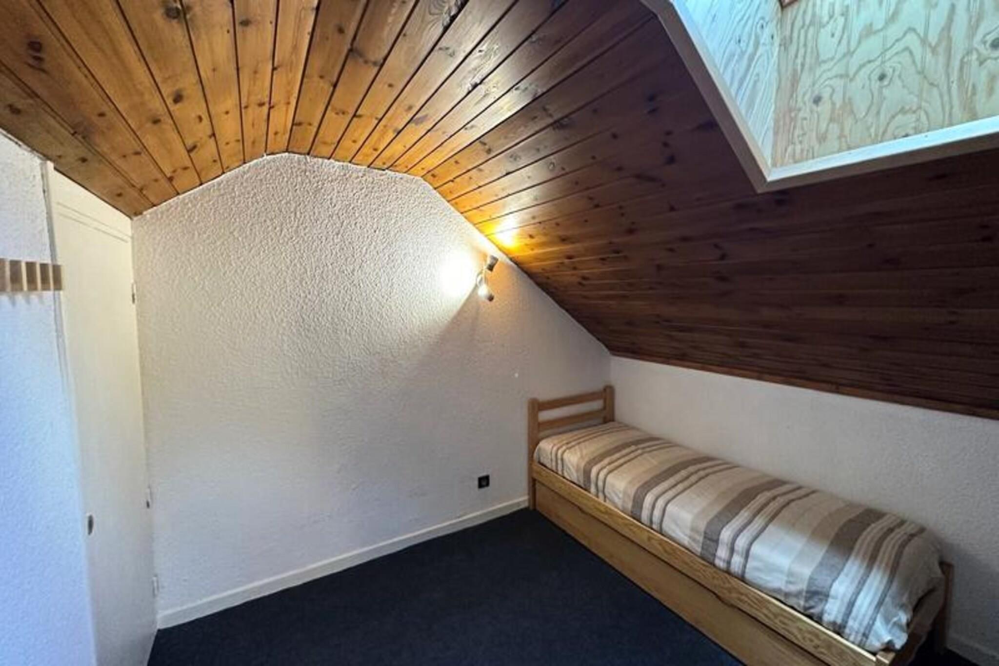 Fastigheten, tillsammans med sin rymliga layout, är utformad för att bekvämt rymma upp till 6 personer. Lägenheten har ett stort vardagsrum/matsal som vetter mot en terrass med utsikt över snöfronten. Sovplatserna inkluderar en mezzanin med dubbelsäng och ett öppet sovrum högst upp på en stege med en utfällbar säng. Till lägenheten hör även en bergshörna nära entrén och ett duschrum med WC. Husdjur är inte tillåtna och boendet är rökfritt. Valfria tjänster som sängkläder (lakan och handdukar) är tillgängliga mot en extra avgift, och slutstädning ingår inte. En deposition krävs vid ankomsten. Boendet har ett bekvämt läge vid foten av backarna och erbjuder direkt tillgång till ski-in och ski-out med närliggande skidliftar, inklusive Telemix Chabrière och Mayts stollift. Lägenheten ligger bara 20 meter från turistbyrån och butikerna, vilket gör den till en utmärkt bas för att utforska området. Show Point med sin pool ligger bara 250 meter bort, och andra närliggande attraktioner garanterar att gästerna enkelt kan njuta av både vintersporter och fritidsaktiviteter. Det centrala läget ger enkel tillgång till alla bekvämligheter resorten har att erbjuda. Lägenhetens kök är välutrustat för att laga mat, och fastigheten erbjuder bekväma och funktionella vardagsrum. Ytterligare bekvämligheter inkluderar en terrass, perfekt för att njuta av bergsluften, och nödvändiga verktyg för att säkerställa en avkopplande vistelse. Uppvärmning tillhandahålls och lägenheten ligger i en byggnad i mycket gott skick. Med sitt bekväma läge och väldesignade bostadsyta är denna fastighet ett idealiskt val för dem som vill uppleva en minnesvärd vistelse i bergen.