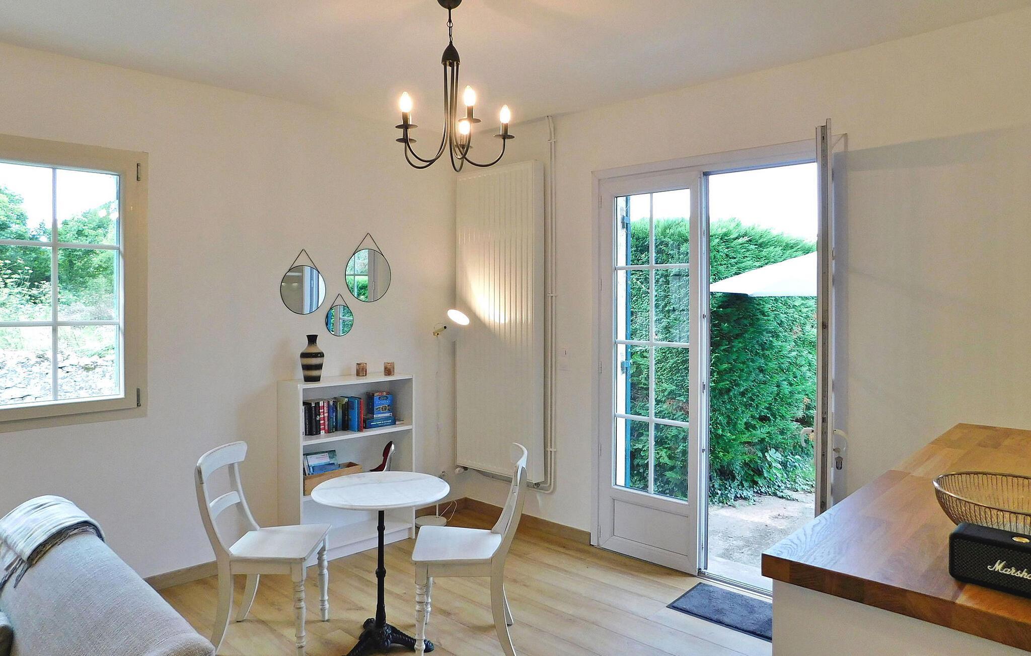 Detta semesterhus är en del av en egendom där ägarna bor och har en gemensam uppvärmd pool med ett annat semesterboende och ägarna. Huset ligger vid infarten till en by på vinvägen mellan Bergerac och Pécharmant. Invändigt finns en entré som leder till ett vardagsrum med ett kök i öppen planlösning med en high bar och en matplats. I vardagsrummet finns en mysig sittgrupp. Sovavdelningen har två sovrum, kompletterade med ett badrum med duschkabin och toalettartiklar. Utomhus finns en terrass med trädgårdsmöbler och en gräsmatta. Dessutom finns en gemensam uppvärmd pool som är tillgänglig för gästerna i det andra semesterboendet och ägarna. Huset ligger i hjärtat av en stor park omgiven av grönska. Det finns en liten stormarknad 200 meter bort i byn. Fler affärer finns i Montcaret (5 km) eller i Pineuilh (13 km).