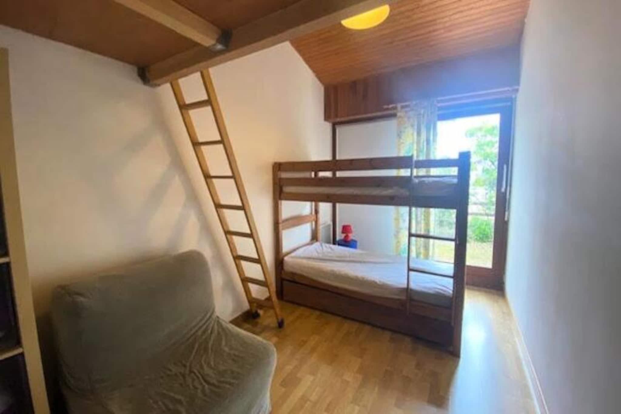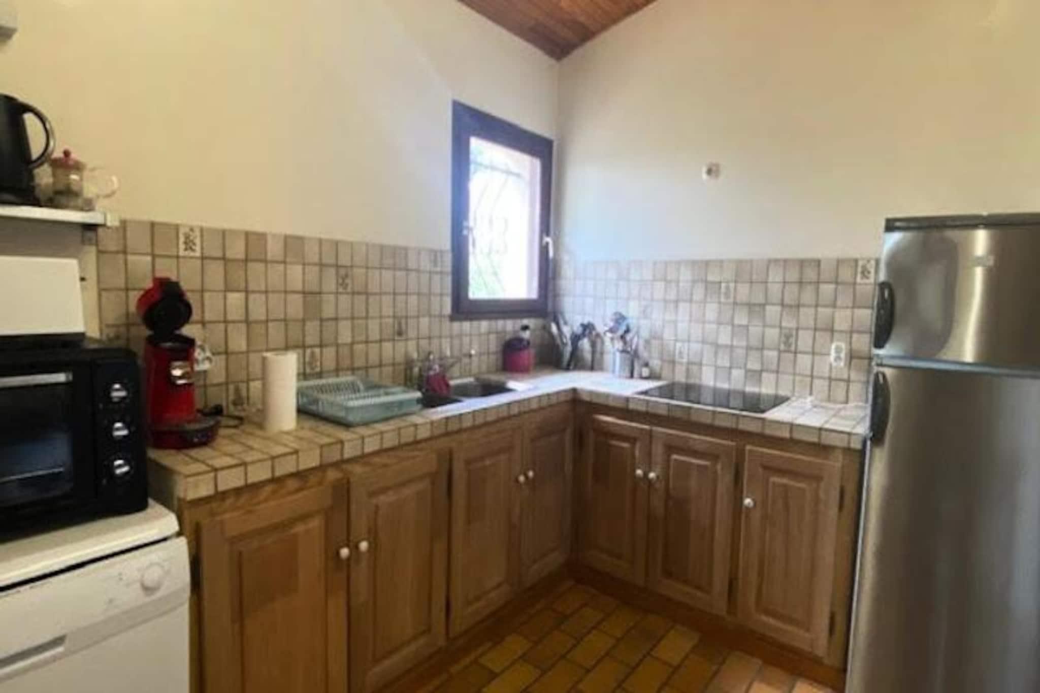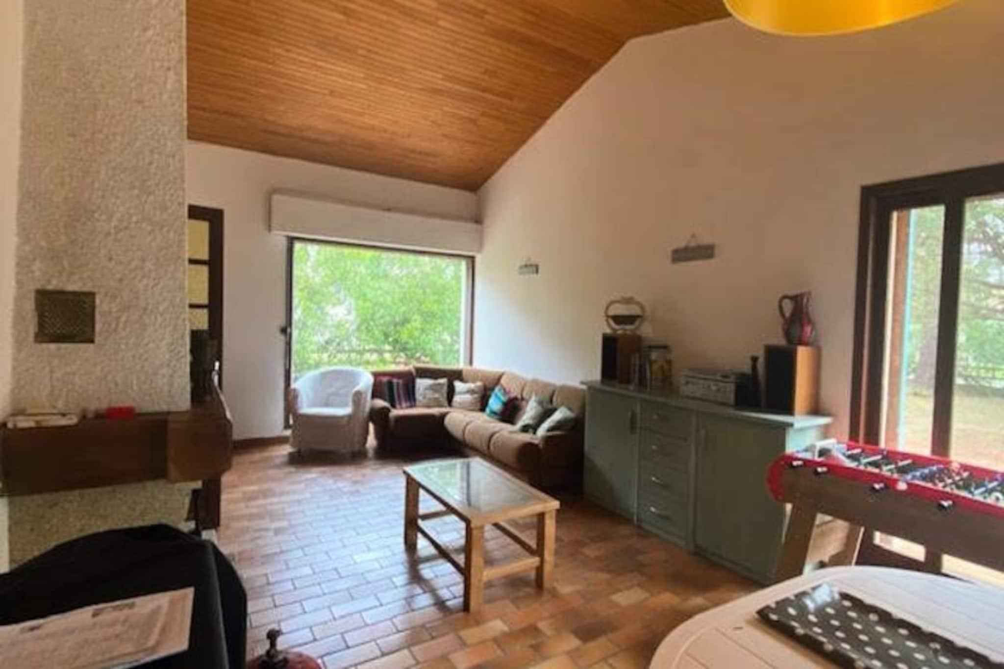 En kort promenad från Montalivets pulserande hjärta och bara några minuter från Atlantkustens gyllene sandstränder, erbjuder detta rymliga semesterhus en lugn tillflyktsort för både familjer och vänner. Omgivet av frodig grönska och det lugnande ljudet av havsbrisen, är det den perfekta miljön för att skapa oförglömliga minnen i en av Frankrikes charmigaste kustdestinationer. Oavsett om du söker avkoppling eller äventyr, inbjuder denna fastighet dig att uppleva det bästa av kustlivet. \n\nInuti rymmer huset bekvämt upp till sju gäster fördelade på tre välutrustade sovrum och en mezzanin. Vardagsrummet, komplett med en TV, erbjuder ett mysigt utrymme för att varva ner efter en dag av utforskande, medan det fullt utrustade köket och den angränsande matplatsen gör delade måltider enkla och trevliga. Varje sovrum är omsorgsfullt utformat med gott om förvaring, vilket garanterar en ordningsam vistelse. Ett modernt duschrum och separat toalett ökar bekvämligheten, medan mezzaninen erbjuder ytterligare sovplatser för större grupper. \n\nStig ut för att upptäcka den vidsträckta 800 m² stora trädgården, en sann höjdpunkt på fastigheten. Här hittar du en rymlig terrass perfekt för måltider utomhus, en grillplats för sommarfester och aktiviteter som pingis och fotbollsspel för att hålla alla underhållna. De närliggande stränderna och det livliga stadskärnan, med sina butiker, restauranger och marknader, ligger bara ett stenkast bort, vilket gör det enkelt att fördjupa sig i den lokala kulturen och naturens skönhet. \n\nOavsett om du solar dig, utforskar kustlederna eller njuter av en familjegrillfest under stjärnorna, erbjuder detta hem en blandning av komfort, charm och bekvämlighet som kommer att få dig att längta tillbaka.