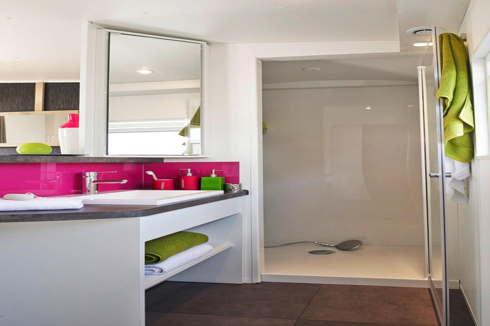 Öppet kök(Kokplattor, vattenkokare, kaffebryggare(kaffekapslar), mikrovågsugn, diskmaskin, kylskåp(+ frys)), ardags- och matrum(TV(Inga holländska TV-kanaler, Inga tyska TV-kanaler), matbord, luftkonditionering), sovrum(dubbelsäng(160 x 190 cm)), sovrum(2x enkelsäng(80 x 190 cm)), badrum(dusch, handfat, toalett ), badrum(dusch, handfat, toalett ), WC(toalett ), terrass(12 m2), trädgårdsmöbler, parkering, swimmingpool(delas med andra gäster , separat barnpool finns (50cm djup)), boule(delas med andra gäster ), lekplats(delas med andra gäster ), bordtennis(delas med andra gäster ), Stekbord/stekhäll