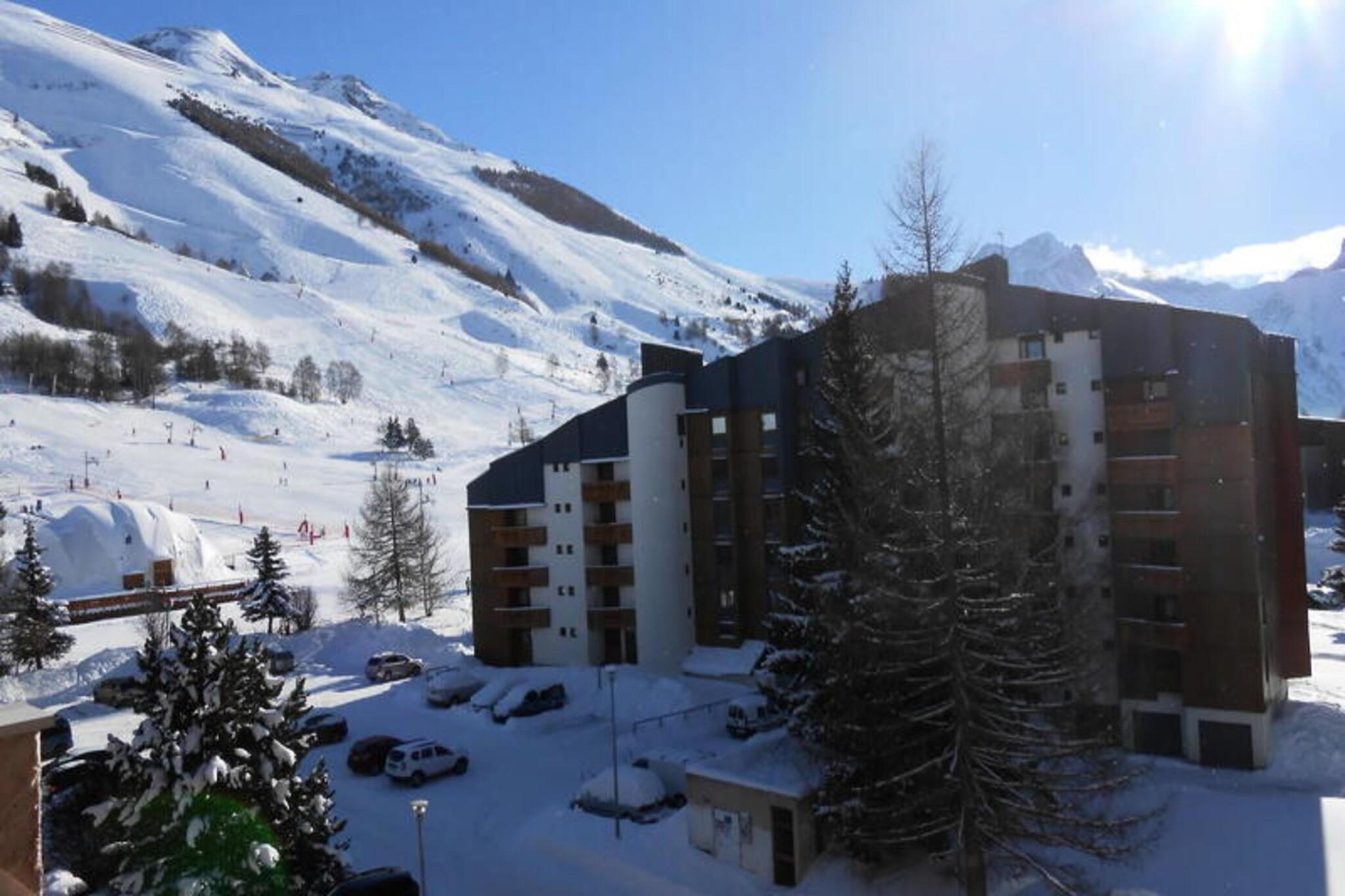 Denna lägenhet på 47 m² för 6 personer ligger på 5:e våningen, nås med hiss, och har en balkong i söderläge med fantastisk utsikt över bergen och sluttningarna. Lägenheten har ett vardagsrum med TV, soffa och matplats, samt ett sovrum med en dubbelsäng (140x190), en utdragbar soffa (2 enkelsängar: 80x190) och ett separat sovrum med två enkelsängar. våningssängar (90x190). Den övre britsen rekommenderas inte för barn under 6 år. Fastigheten är inte husdjursvänlig och inkluderar ett skidskåp, tvättmaskin, elektriska jalusier och en privat parkeringsplats för en vanlig bil (N°36). Lägenheten har ett bekvämt läge vid foten av backarna, i den centrala sektorn, bara en kort promenad från viktiga bekvämligheter. Linbanan Jandri Express, som ger direkt tillgång till glaciären, ligger i närheten. Butiker, poolen, ishallen, biblioteket, olika skidskolor och vandringsleder ligger alla inom gångavstånd, vilket gör det till en idealisk plats för både vinter- och sommaraktiviteter. Lägenheten har ett fullt utrustat kök som är öppet mot vardagsrummet, komplett med 2 keramikhällar, en kombinerad mikrovågsugn, kylskåp, diskmaskin, kaffebryggare, vattenkokare, brödrost, raclettemaskin och fondueset. Badrummet har ett badkar, och det finns en separat toalett för extra bekvämlighet. Sängkläder, handdukar, wifi och slutstädning är tillgängliga mot en extra kostnad och bör reserveras i förväg.