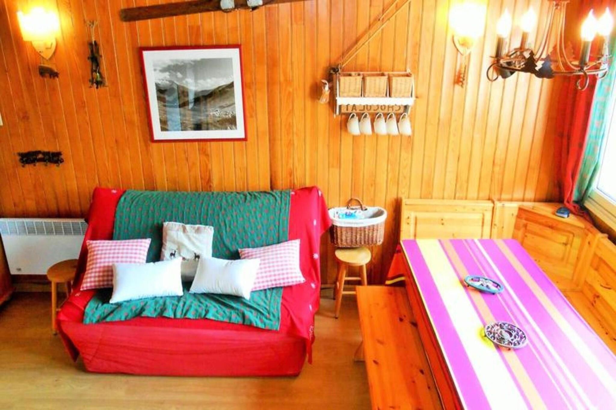 Denna charmiga 33 m² stora studio i 2 plan rymmer upp till 4 gäster och ligger på 4:e våningen i ett lugnt boende utan hiss. Fastigheten har en balkong i söderläge, ett mysigt vardagsrum med TV, en bäddsoffa (dubbelsäng) och en matplats med parkettgolv. En brant trappa leder till sovdelen på övervåningen med lågt i tak, med en dubbelsäng och två enkla våningssängar (övre koj är inte lämplig för barn under 6 år). Husdjur är inte tillåtna, och ett skidskåp finns för extra bekvämlighet. Idealiskt beläget vid foten av sluttningarna nära stationsingången, erbjuder detta boende utmärkt tillgång till vinter- och sommaraktiviteter. Belle Etoile-stolliften, bara några steg bort, ansluter till det nybörjarvänliga Crêtes-området, med möjlighet att åka tillbaka till byggnaden. Under sommaren kan du njuta av minigolf, studsmattor och olika fritidsaktiviteter i närheten. Butiker och postkontoret är bekvämt belägna bara 10 meter från byggnaden, vilket gör det enkelt att komma åt dagliga nödvändigheter. Köket i öppen planlösning är fullt utrustat med en elektrisk gasspis, ugn, fyra elektriska kokplattor, mikrovågsugn, kylskåp, diskmaskin, kaffebryggare, vattenkokare, brödrost, raclettemaskin och fondueset. Badrummet har dusch och toalett. Uppvärmning ingår, och sängkläder, handdukar, Wi-Fi och slutstädning kan ordnas i förväg.