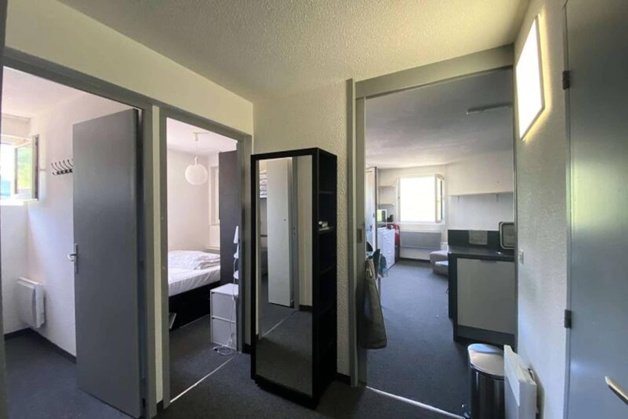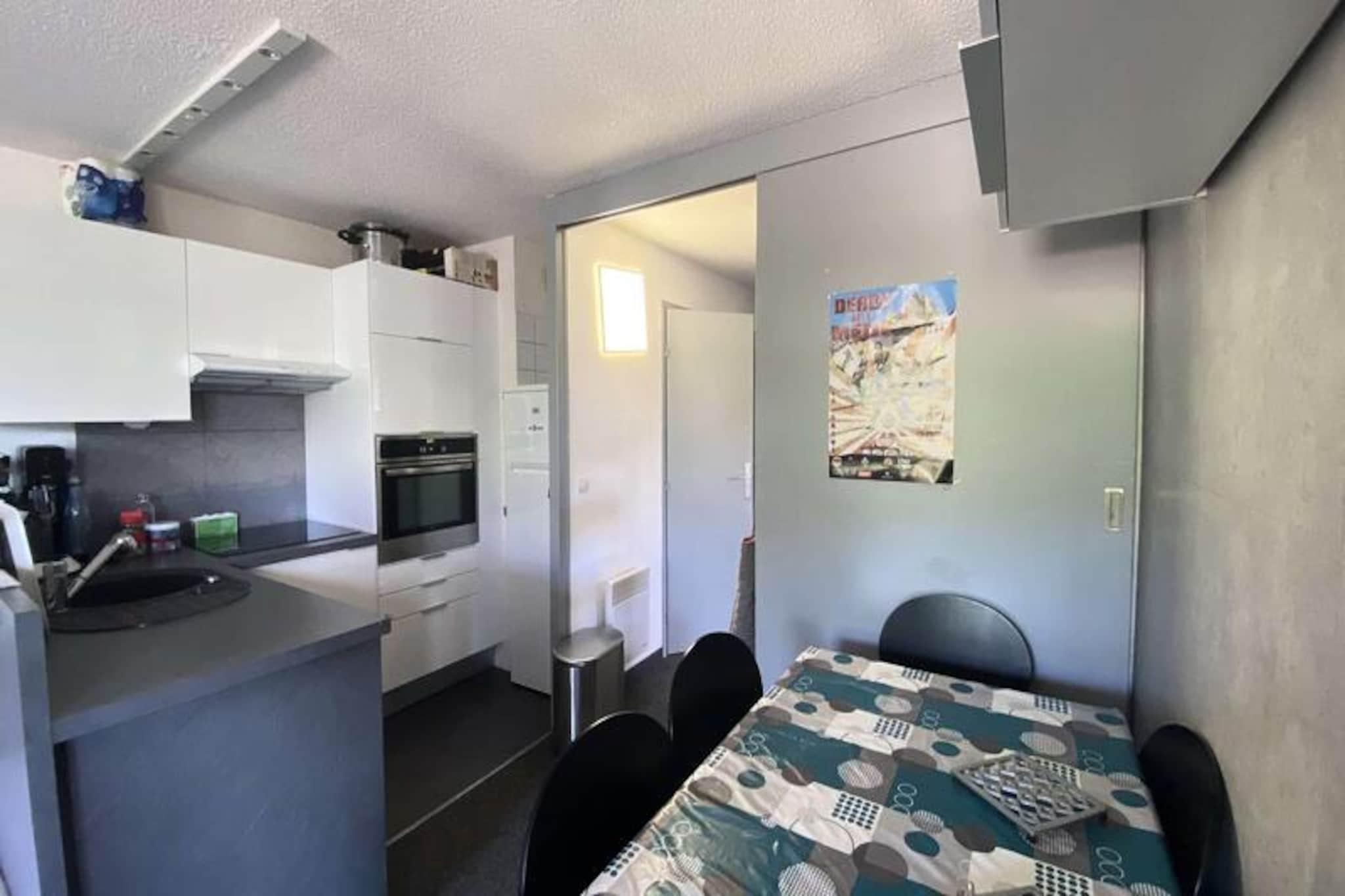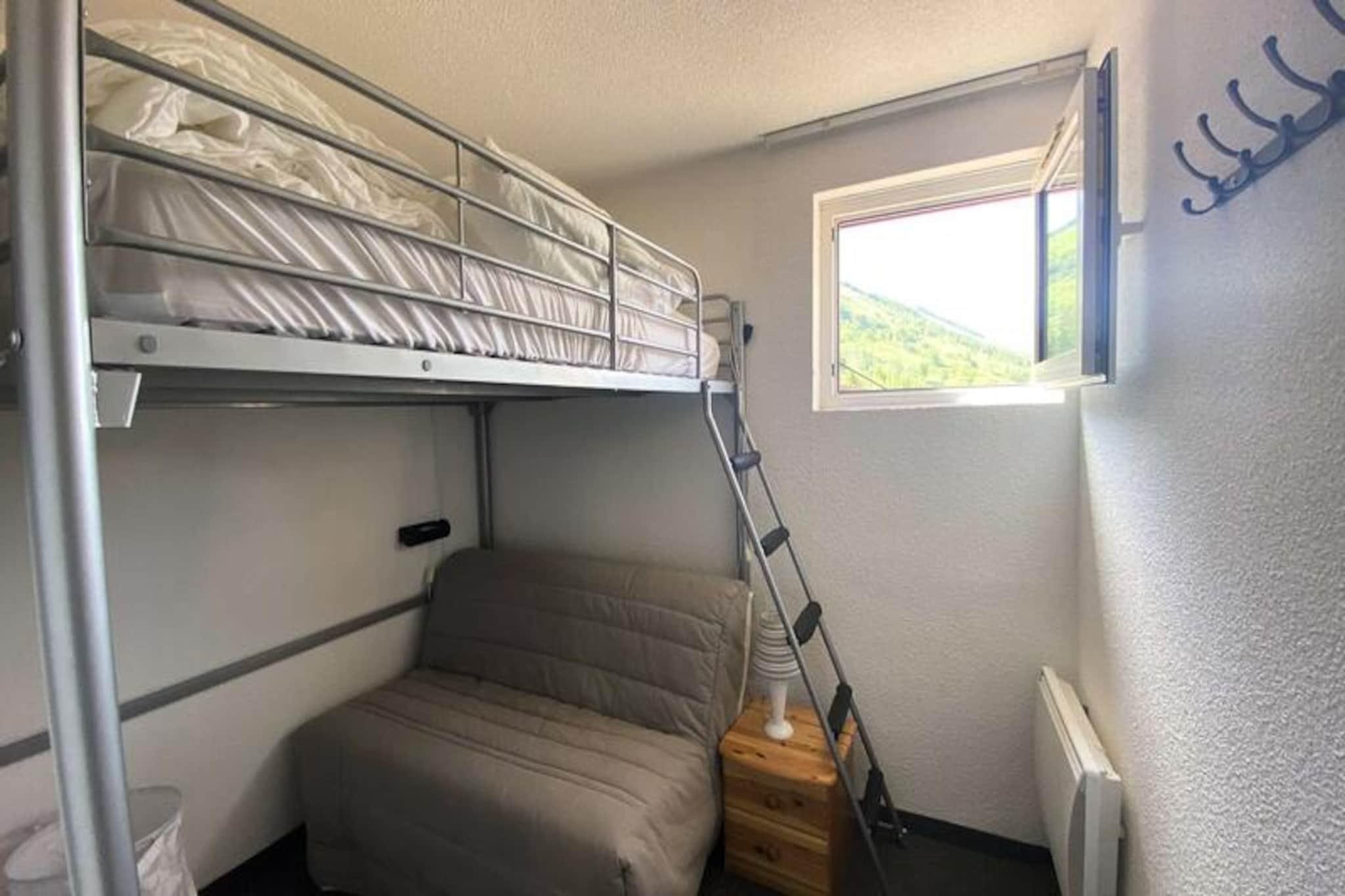 Högt ovanför de pittoreska sluttningarna i Les Deux Alpes erbjuder denna charmiga lägenhet med två sovrum en lugn tillflyktsort i det eftertraktade området Village 1800. Belägen på fjärde våningen i Écrins 3-residensen, har den bekväm tillgång till Le Village-liften, vilket gör den till en idealisk bas för att utforska det berömda skidområdet. Från det ögonblick du kliver ut på den stora balkongen möts du av hisnande panoramautsikt över bergen och den livliga orten nedanför, vilket sätter tonen för en oförglömlig alpin semester. Oavsett om du är här för vinterspänning eller sommaräventyr, erbjuder denna lägenhet den perfekta blandningen av komfort och tillgänglighet. \n\nInuti är lägenheten omsorgsfullt utformad för familjer och grupper, med ett ljust vardagsrum med en bäddsoffa som öppnar upp mot balkongen, ett fullt utrustat kök med öppen planlösning för enkel matlagning och två mysiga sovrum. Ett sovrum har en våningssäng, perfekt för barn eller vänner, medan det andra erbjuder en dubbelsäng med gott om förvaring. Ett modernt badrum och separat toalett kompletterar planlösningen, vilket säkerställer praktisk användning och avskildhet för alla gäster. Residenset har även en hiss för extra bekvämlighet, vilket gör din vistelse lika enkel som den är trevlig. Les Deux Alpes är en destination som glänser året runt. På vintern tillgodoser anläggningens 225 km pister alla färdighetsnivåer, med en glaciär som når 3 600 meter för garanterad snö. Sommaren förvandlar området till ett centrum för utomhusaktiviteter, från natursköna vandringar och spännande downhill mountainbike till paragliding och golf. Anläggningens livliga atmosfär, fylld med barer, restauranger och kulturevenemang, säkerställer att det aldrig finns en tråkig stund. Oavsett om du söker adrenalinpumpande äventyr eller fridfulla bergsögonblick, är denna lägenhet din port till det bästa av Les Deux Alpes. Boka nu och skapa minnen i en av Alpernas mest ikoniska destinationer.