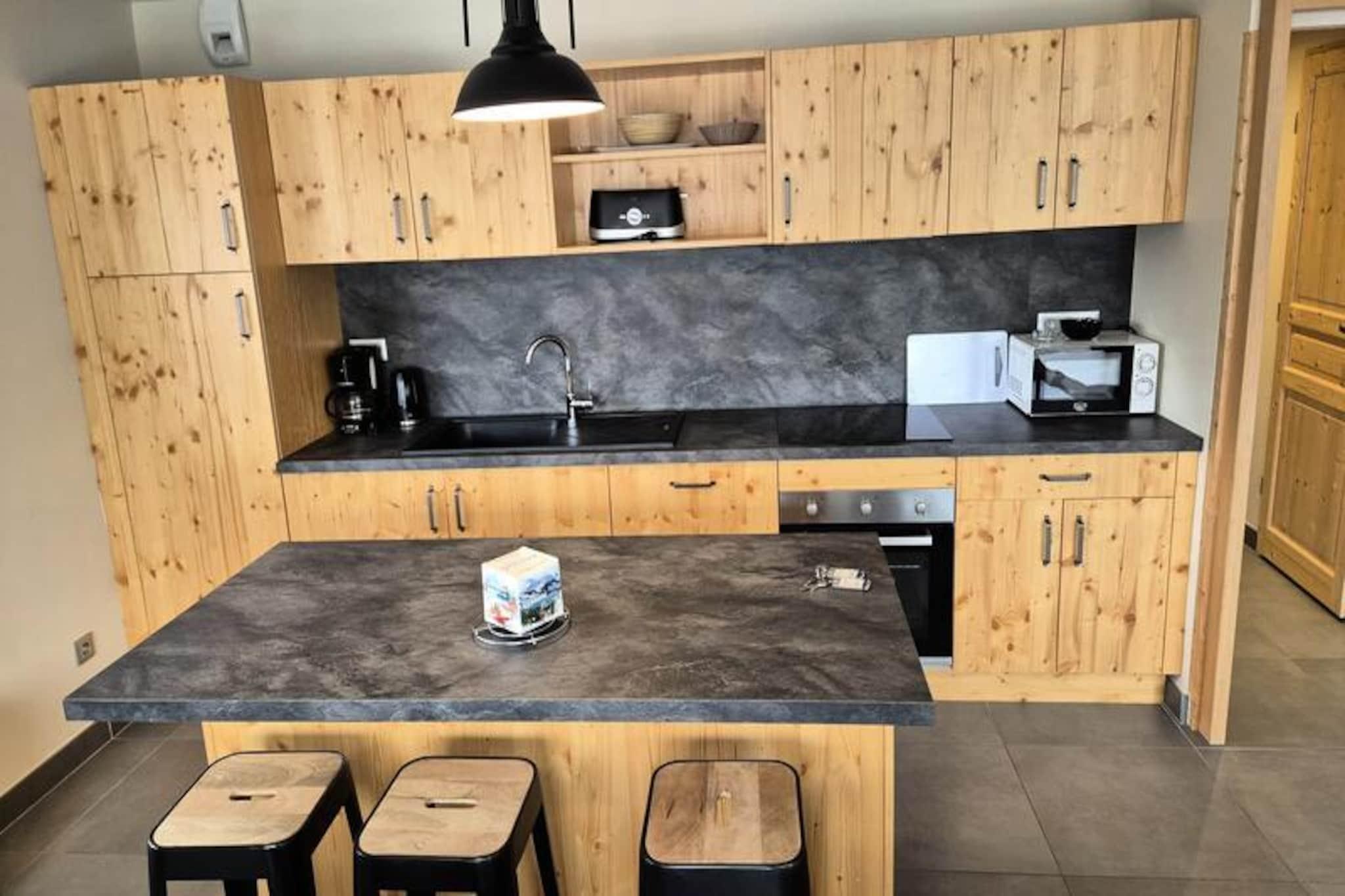 I det pulserande hjärtat av Les Deux Alpes erbjuder denna charmiga lägenhet en perfekt blandning av komfort och bekvämlighet för din alpina resa. Bara 250 meter från skidbackarna har du enkel tillgång till liftarna, samtidigt som du är bara några steg från den livliga Avenue de la Muzelle, hem till en mängd butiker, restauranger och afterski-upplevelser. Oavsett om du är här för vintersport eller sommaräventyr i bergen, placerar denna bostad dig i centrum av allt. Lägenheten är 70 m² stor och omsorgsfullt utformad för att rymma upp till 7 gäster. Belägen på 5:e våningen med hiss, har den en rymlig balkong i söderläge som inbjuder dig att njuta av solljuset och beundra den hissnande utsikten över bergen. Det stora sovrummet har en bekväm dubbelsäng och inbyggd garderob, medan det andra sovrummet erbjuder mångsidiga sovplatser med två våningssängar och en enkelsäng. Vardagsrummet, komplett med en bäddsoffa, fåtöljer och en TV, erbjuder ett mysigt utrymme att varva ner efter en dags utforskande. Det fullt utrustade köket har keramikhäll, stort kylskåp, ugn, mikrovågsugn, diskmaskin och allt du behöver för att laga läckra måltider. Bortom lägenheten lockar Les Deux Alpes med sina skid-, snowboard- och sommarvandringsleder i världsklass. De närliggande skidliftarna gör det enkelt att ta sig ut i backarna, medan den pulserande byatmosfären garanterar underhållning för alla åldrar. Oavsett om du njuter av en måltid på en lokal bistro eller utforskar den fantastiska alpina omgivningen, erbjuder denna fastighet den perfekta basen för oförglömliga minnen. Med sitt utmärkta läge, moderna bekvämligheter och inbjudande atmosfär är denna lägenhet din port till det bästa av Les Deux Alpes. Boka din vistelse idag och upplev magin i de franska Alperna.