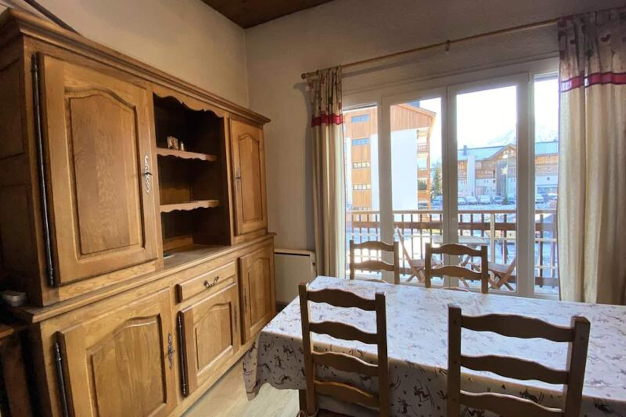 Högt ovanför den pulserande skidorten Les Deux Alpes inbjuder denna förtjusande lägenhet med ett sovrum dig att uppleva bergens magi i varje säsong. Med sitt utmärkta läge bara några minuter från linbanan, poolen och isbanan är det den perfekta tillflyktsorten för familjer eller vänner som söker äventyr och avkoppling i lika stor utsträckning. Från din privata balkong kan du njuta av den hisnande alpina utsikten medan du smuttar på ditt morgonkaffe eller varvar ner efter en dag av utforskande. Denna mysiga lägenhet är designad för att rymma upp till sex gäster och erbjuder en genomtänkt planlösning för att garantera din komfort. Vardagsrummet har en bäddsoffa och våningssäng, vilket skapar en välkomnande plats för umgänge eller vila. Det fullt utrustade köket gör det enkelt att laga mat, medan det separata sovrummet, komplett med en dubbelsäng och en extra våningssäng, erbjuder en lugn tillflyktsort. Ett modernt badrum, tvättstuga med tvättmaskin och garage gör din vistelse ännu bekvämare. Gå ut och befinn dig i hjärtat av Les Deux Alpes, där butiker, restauranger och aktiviteter finns i överflöd. Oavsett om du ger dig ut i backarna, glider över isbanan eller njuter av anläggningens livliga afterski-scen, finns allt du behöver inom räckhåll. På sommaren förvandlas bergen till ett paradis för vandrare och cyklister, med leder som lovar fantastiska vyer åt varje håll. Boka din vistelse idag och låt denna charmiga lägenhet bli din port till oförglömliga alpina äventyr. Oavsett om du är här för spänningen med vintersport eller lugnet i sommarlandskap, erbjuder Les Deux Alpes en upplevelse utan dess like.