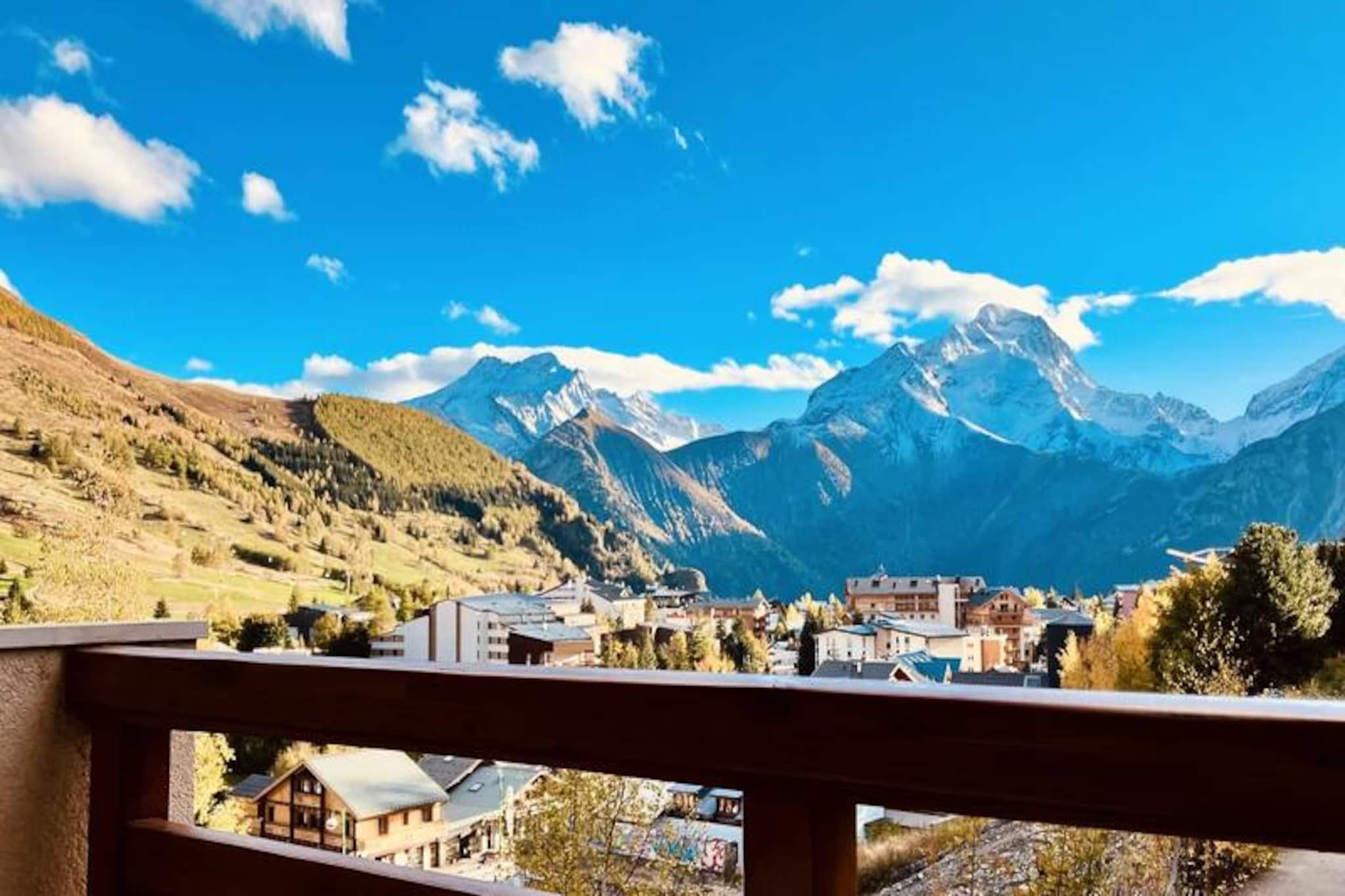 Högt ovanför det pittoreska Les Deux Alpes erbjuder denna mysiga studiolägenhet på fjärde våningen en fridfull tillflyktsort med hisnande utsikt över det majestätiska berget Muzelle. Tänk dig att varva ner på din privata balkong i söderläge och titta på fackelljuset som lyser upp backarna under festliga kvällar. Denna charmiga 28 m² stora oas är den perfekta tillflyktsorten för familjer eller vänner som söker en minnesvärd alpin semester. \n\nLägenheten är utformad för att bekvämt rymma upp till fyra gäster och har en alkov i alpin stil med våningssängar, ett välkomnande vardagsrum med bäddsoffa och ett badrum med badkar och hårtork. Den separata toaletten och det fullt utrustade öppna köket – med ugn, mikrovågsugn, diskmaskin och till och med en raclettegrill – säkerställer alla bekvämligheter i ett hem. Praktiska bekvämligheter som privat parkering, säker skidförvaring och Wi-Fi gör din vistelse enkel, medan en närliggande gratisbuss och 3S-skidliftarna, bara 3 minuters promenad bort, ger smidig tillgång till backarna. \n\nLes Deux Alpes är ett paradis året runt. På vintern kan du utforska 225 km skidbackar, en snowpark i världsklass och det ikoniska offpistområdet La Grave. Sommaren förvandlar orten till ett pulserande nav för panoramavandringar, mountainbike i en av Europas största cykelparker, paragliding och till och med golf. Med livliga barer, restauranger och kulturevenemang surrar orten av energi varje säsong. \n\nOavsett om du söker spännande äventyr eller lugna stunder i naturen, placerar denna förtjusande lägenhet dig i hjärtat av allt. Boka nu och låt magin i Les Deux Alpes fängsla dig!