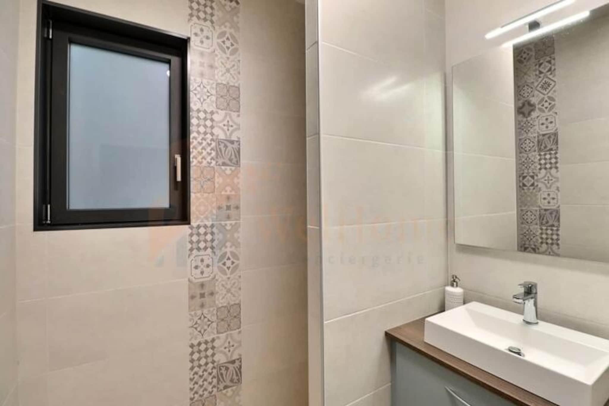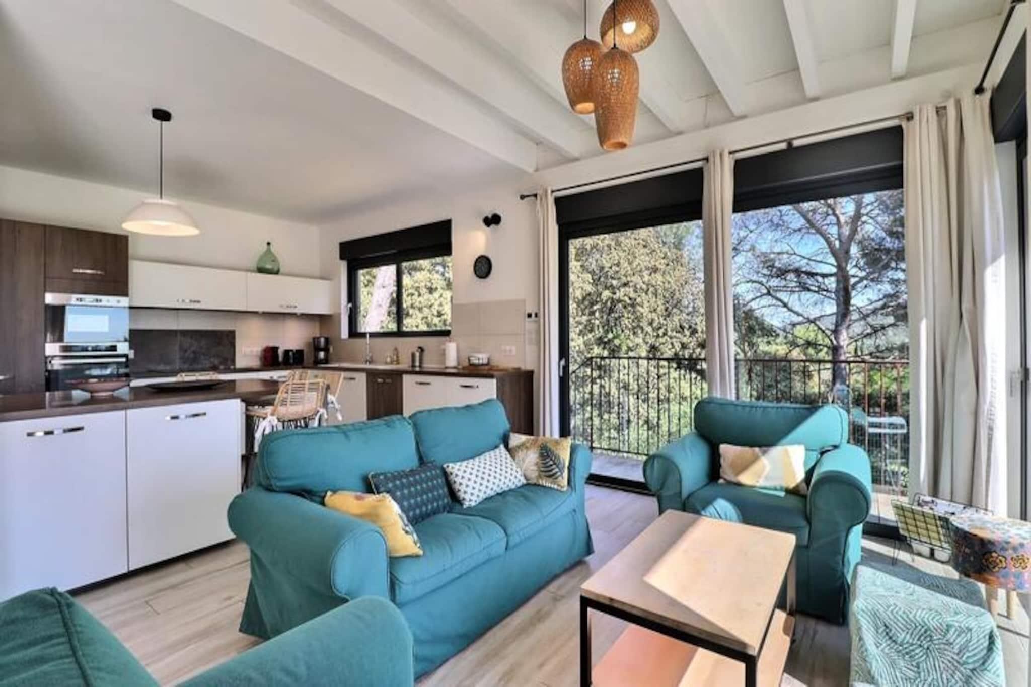 Mitt i Provence böljande kullar, bara en kort 10-minuters bilresa från den livliga staden Aix-en-Provence, erbjuder denna fantastiska moderna trävilla en tillflyktsort till lugn och naturlig skönhet. Från det ögonblick du anländer fängslar den panoramautsikt över de omgivande kullarna och den charmiga byn Velaux dina sinnen och inbjuder dig att koppla av på de solbelysta terrasserna eller i den fridfulla trädgården, där de enda ljuden är naturens. Detta är en plats där tiden går långsammare och varje ögonblick känns som en reträtt. Villan är designad med modern elegans och kombinerar komfort och stil på ett harmoniskt sätt. Det rymliga, luftkonditionerade vardagsrummet badar i naturligt ljus och har en mysig lounge med vedspis, ett stort matbord för gemensamma måltider och ett fullt utrustat öppet kök med en central köksö. Den genomtänkta designen fortsätter utomhus med flera terrasser i skuggan av tallar, perfekta för måltider utomhus eller stilla kontemplation. Villan rymmer bekvämt upp till åtta gäster, med fyra sovrum, alla med lyxiga 160 x 200 cm sängar, gott om förvaringsutrymme och fläktar för en god natts sömn. Två moderna badrum och en dedikerad arbetsplats bidrar till bekvämligheten, vilket gör den idealisk för familjer, vänner eller distansarbete. Utanför lockar den säkra saltvattenpoolen till uppfriskande dopp, omgiven av grönskande växtlighet som skapar en privat oas. Oavsett om du njuter av en lugn frukost på terrassen eller kopplar av vid poolen, är utomhusutrymmena utformade för avkoppling och gemenskap. Villan är utrustad med alla moderna bekvämligheter, inklusive Wi-Fi, diskmaskin, tvättmaskin och mycket mer, vilket garanterar en smidig vistelse. Privat parkering på fastigheten bidrar till att göra ditt besök ännu enklare. Denna villa har ett perfekt läge för att utforska Provence skatter och erbjuder en harmonisk blandning av modern lyx och naturlig charm. Oavsett om du upptäcker de kulturella nöjena i Aix-en-Provence, njuter av lokala viner eller helt enkelt njuter av den provensalska solen, är detta hem den perfekta basen för oförglömliga minnen.