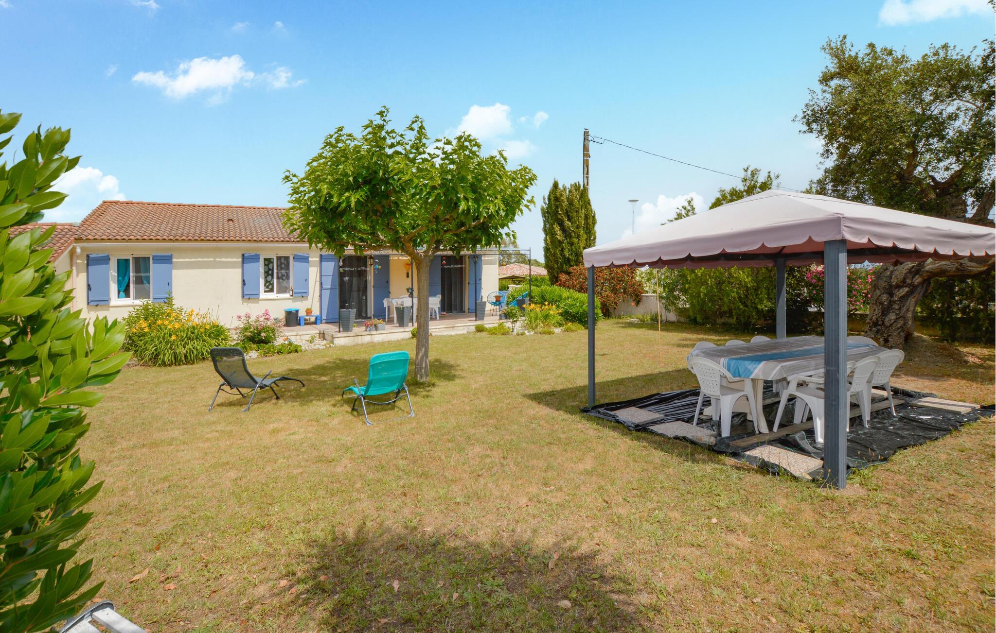 Den rymliga trädgården erbjuder gott om plats för utomhusaktiviteter, oavsett om du spelar bollspel på gräsmattan eller solar. På kvällen kan du tända grillen och avrunda dagen med en avslappnad måltid tillsammans. Du kan använda trädgårdsbordet under den skuggiga paviljongen när som helst på dygnet.