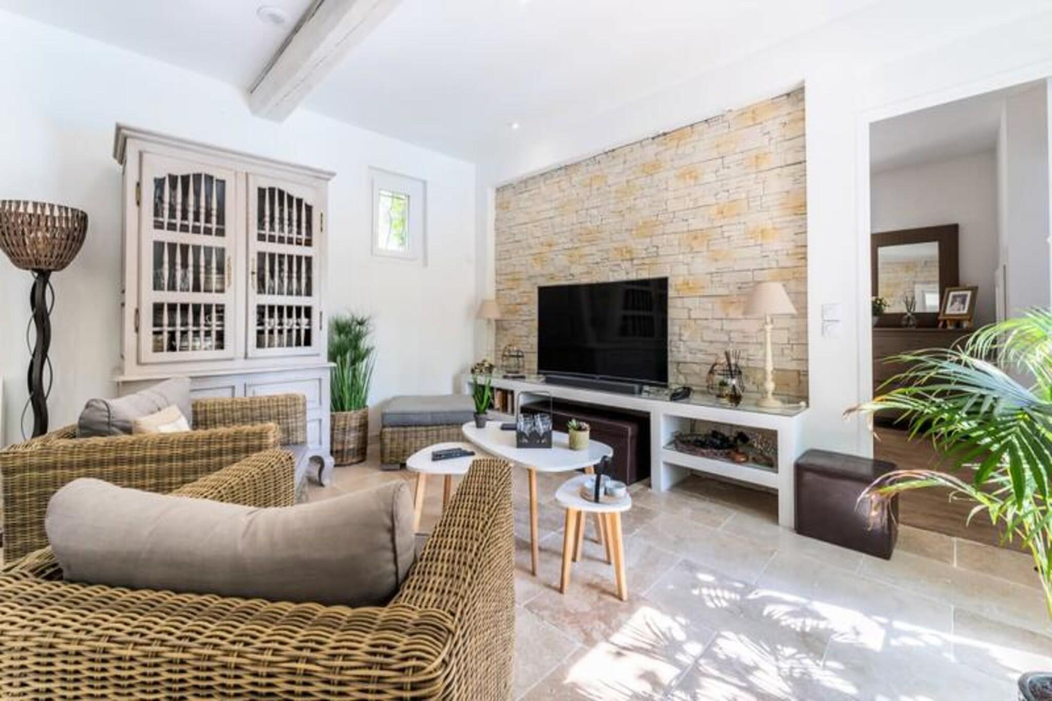Charmigt renoverat boende med en magnifik uppvärmd pool på en tomt på mer än 5000m². Nära Salon de Provence, 40 minuter från Aix en Provence, är Vernègrave;gues en by i Provence mellan Lubéron och Alpilles. 5 sovrum, rymmer 10 personer. Utan skruvar som ligger i ett lugnt men inte isolerat läge är denna plats idealisk med familj eller vänner för att njuta av regionen **Sidoexteriör:** Utanför, all charm i Provence med bowlingbana, uppvärmd 10*5 pool (april till slutet av september), sommarkök. med sina 20m² träterrass och möblerade utrymmen. 4 bilar kan parkeras på fastigheten. Inuti är inredningen sober och elegant med all nödvändig utrustning inklusive luftkonditionering och fiber (internet) **Bottenvåning:** •Perfekt utrustat kök öppet mot matsalen. äta •Vackert rum live med en tv-hörna, •Sovrum 1: 180 cm säng, badrum - dusch •Toaletter & tvättstuga Alla rum på bottenvåningen vetter mot en 60m2 terrass med utsikt över poolen. **Första våningen:** •Sovrum 2: 180 cm säng, badrum-wc •Sovrum 3: 140 cm säng eller två 70 cm sängar •Sovrum 4: 140 cm säng •Sovrum 5: 140 cm säng •Badrum - dusch och separat toalett Sängkläder, handdukar och badlakan tillhandahålls. Sängarna är bäddade precis innan ankomst. Du hittar kosmetika i badrummen och några kalla drycker i kylskåpet. Valfria tjänster är tillgängliga på begäran på begäran. vid bokning eller under din vistelse: * Kockhem (vid bokning) * Linne och extra städning * Vintur (efter bokning) * Cykeluthyrning * Matinköp tillgänglig vid din ankomst Du kommer att välkomnas av en chef som kommer att introducera dig till fastigheten, ge dig bra adresser och förbli tillgänglig under din vistelse. * Gå på en resa och upptäck de autentiska byarna Alpilles och Luberon * Varje dag avslöjar en marknad färgstark provensalsk och rik på sina lokala produkter * Pont Royal International Golf Course ligger på 10 minuter * Stränderna i Sausset les Pins och Carry le Rouet och de i Camargue ligger mycket nära * Promenera genom shoppinggatorna i Aix en Provence efter en picknick vid foten av Sainte Victoire * Unna dig en promenad i bäckarna runt Marseille och Cassis Deposition (i euro) - 800