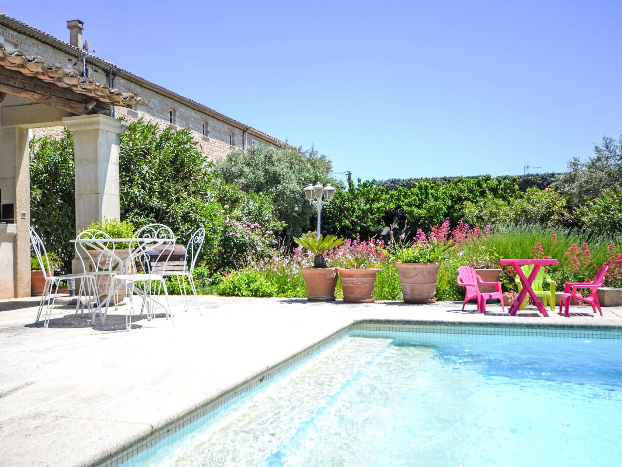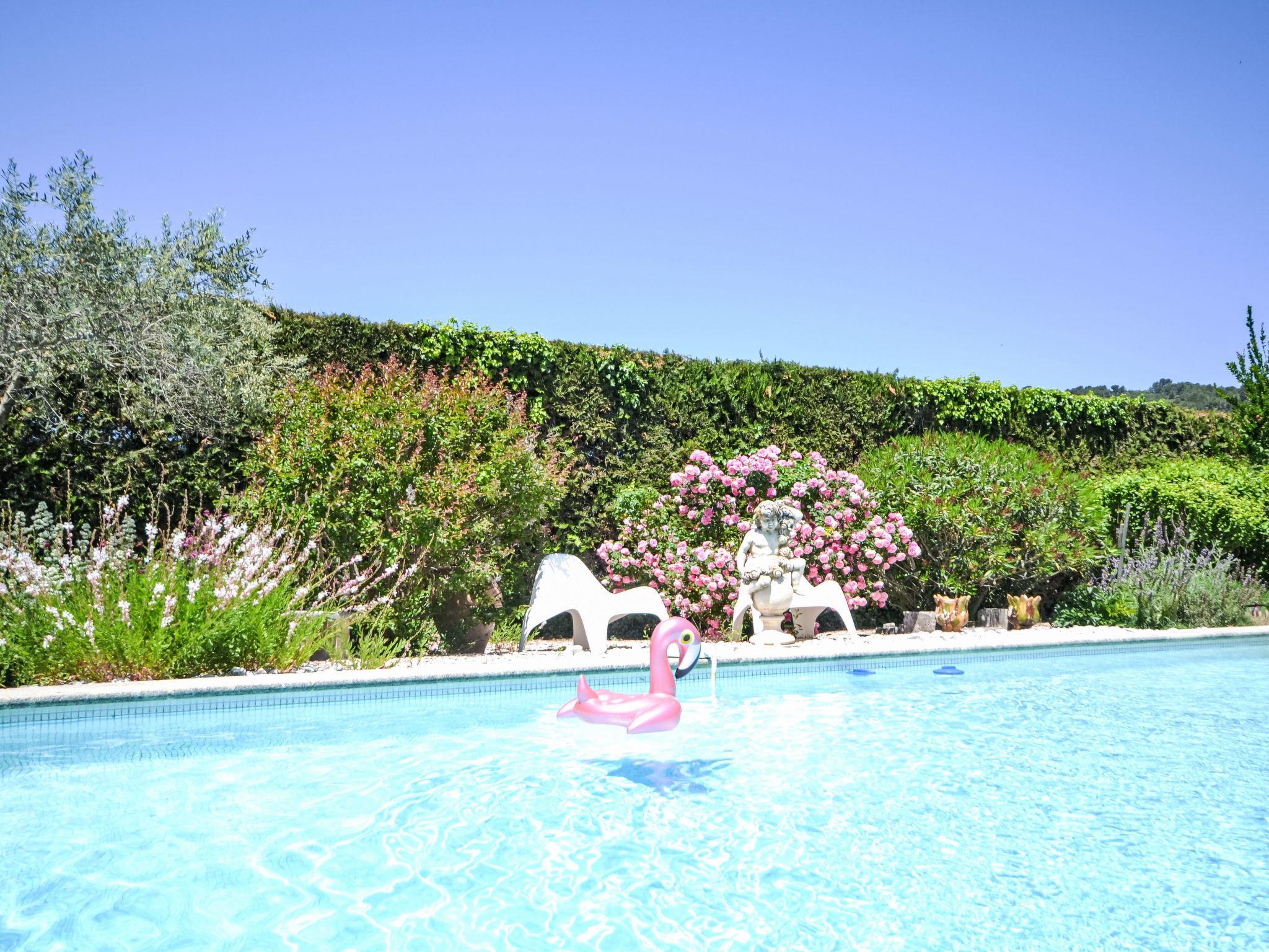 Small single-family house "La Fabrique". In the resort Villelaure, 28 km from the centre of Aix en Provence, 74 km from the centre of Avignon. Private: property 3'000 m2 (fenced) with flowers and trees, swimming pool (4 x 10 m, depth 100 - 180 cm, seasonal availability: 01.May. - 15.Oct.) with internal staircase and alarm system. Pool house with fridge and cooking stove, terrace, garden furniture, barbecue, parking on the premises. Shop 12 km, grocery 100 m, restaurant 12 km, bus stop "Le Vieux Château" 2.1 km. Nearby attractions: Lourmarin, Gordes, Fontaine du Vaucluse, Roussilion, L'isle sur la Sorgues. Well-known lakes can easily be reached: Etang de la Bonde 12 km.