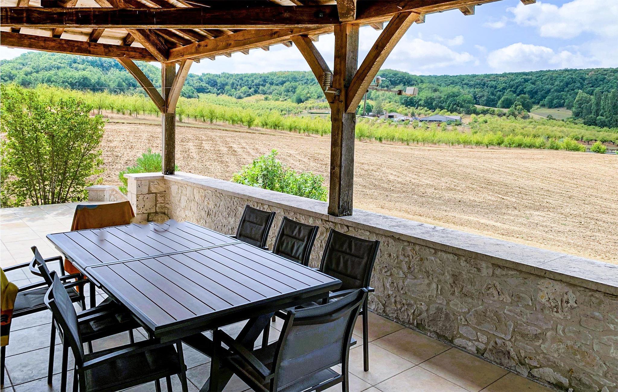 Du kan också äta på den täckta terrassen, som lovar dig en vacker utsikt över landsbygden. Ta ett dopp i den vackra poolen och njut av solskenet på träterrassen.