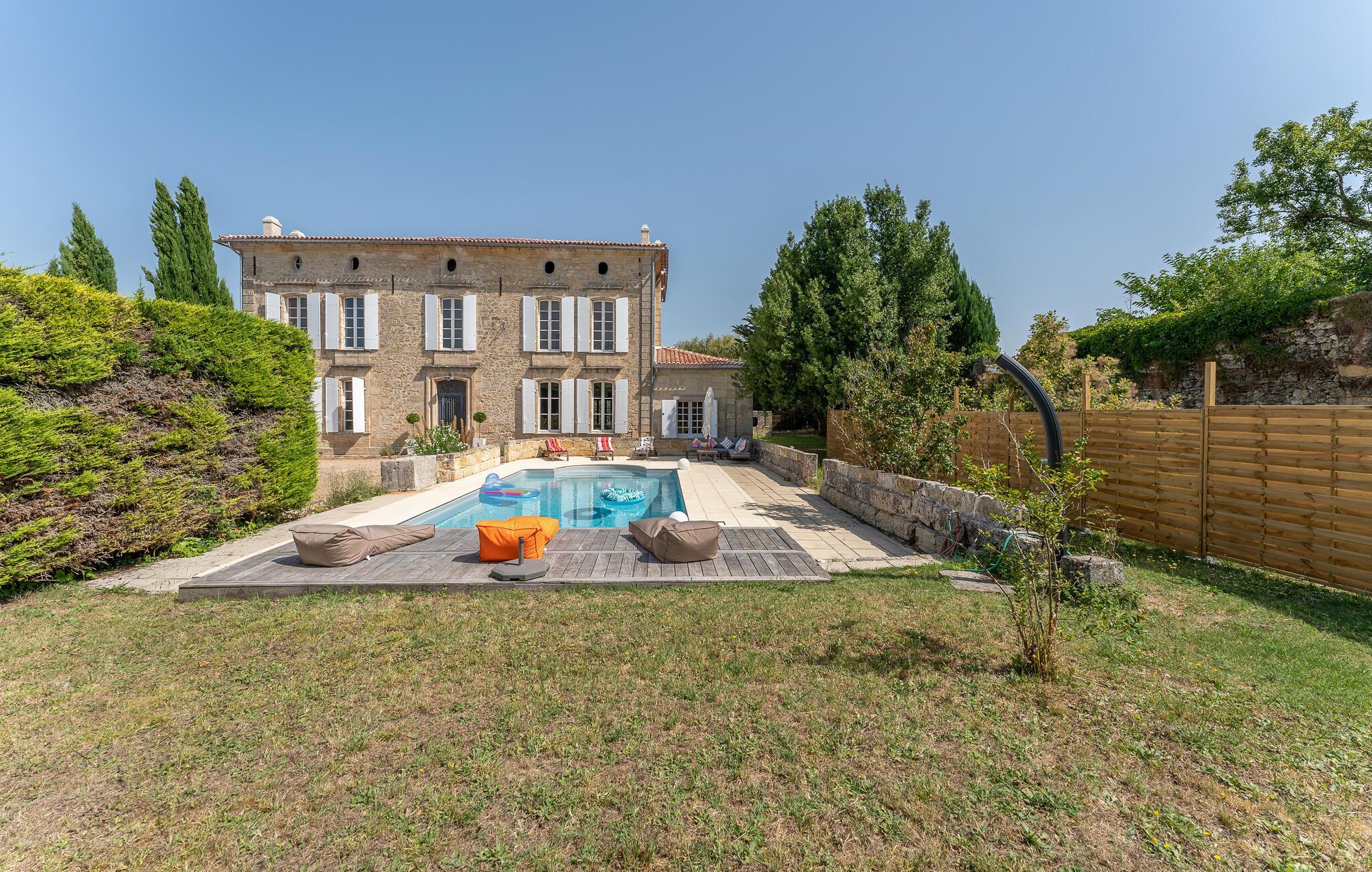 I denna imponerande herrgård i sten nära Virsac kan ni njuta av en avkopplande semester i en charmig och stilfull atmosfär. Det stora huset är perfekt för den stora familjen, som kan känna sig som hemma i de smakfulla rummen med högt i tak, vackra färger och komfort. Oavsett om ni lagar mat tillsammans i matköket eller dröjer er kvar i ett av de gemensamma rummen, kan ni helt enkelt känna er som hemma här.