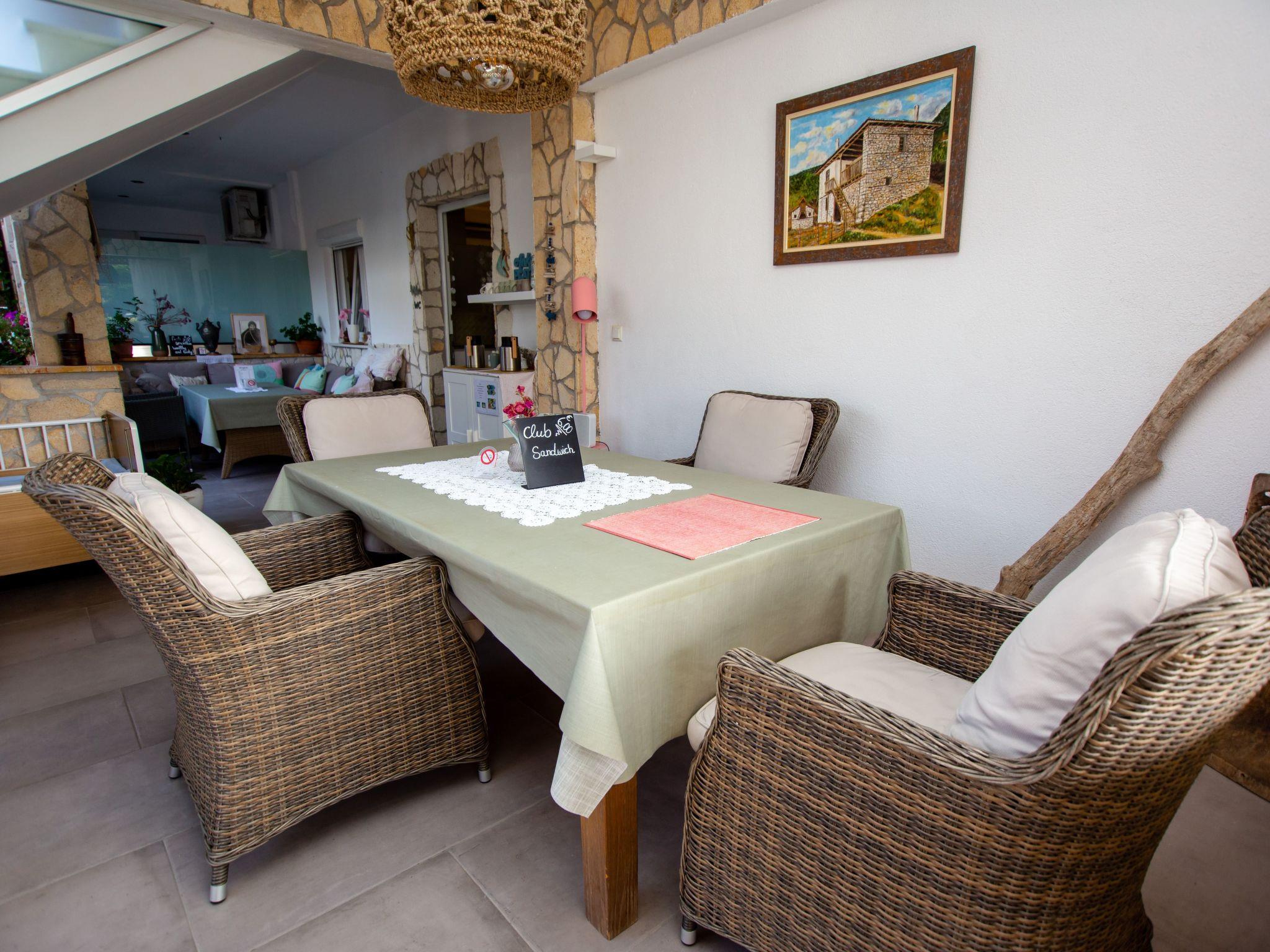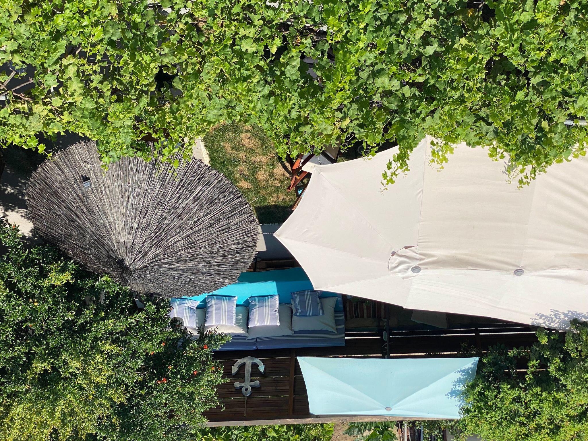 In the flower-filled courtyard there is a house bar with a cosy seating area, an outdoor shower, a drinks machine with cold water which our guests can use free of charge and a small lawn for playing and relaxing.