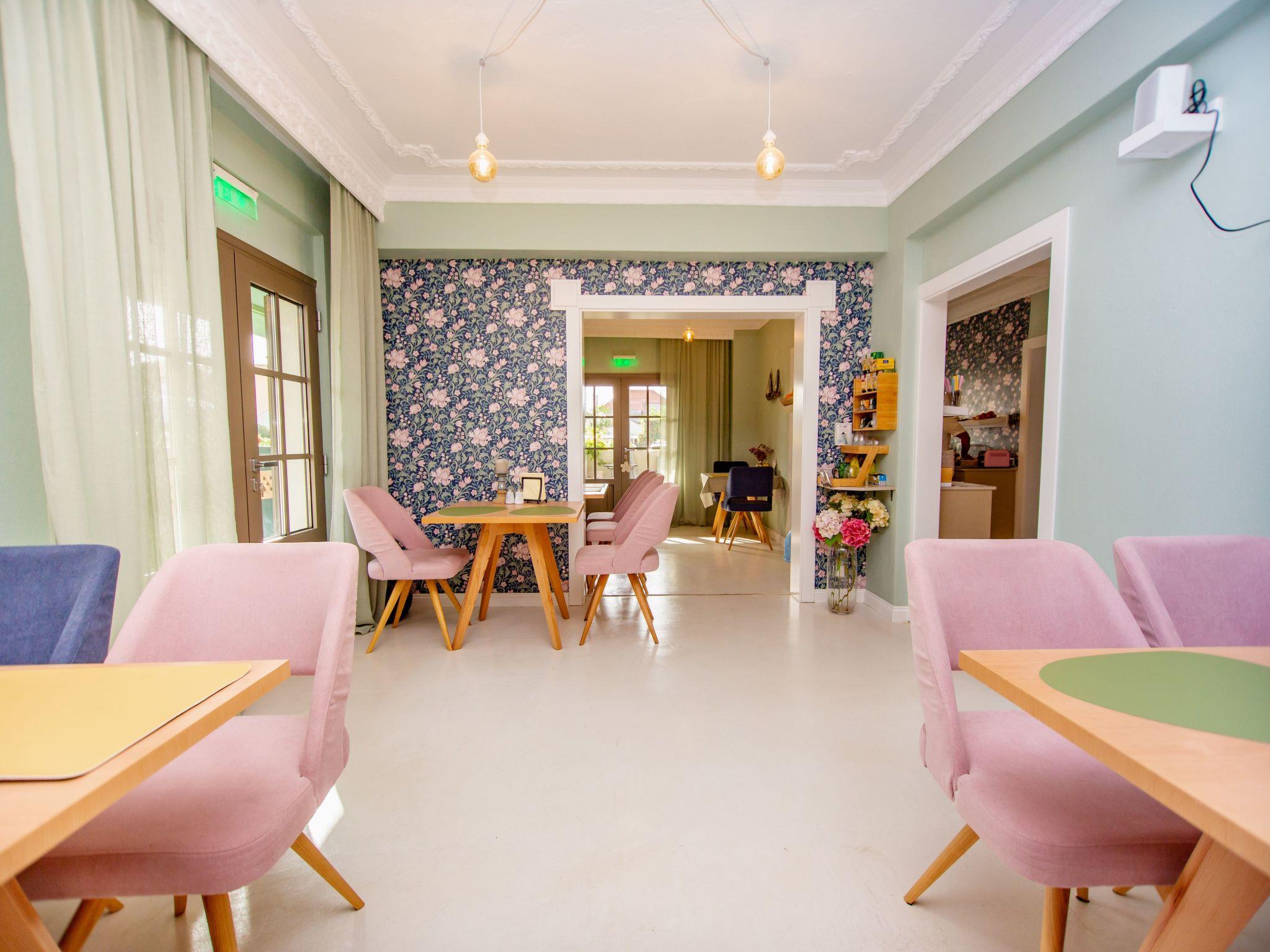 In the flower-filled courtyard there is a house bar with a cosy seating area, an outdoor shower, a vending machine with cold water and a small lawn for playing and relaxing.