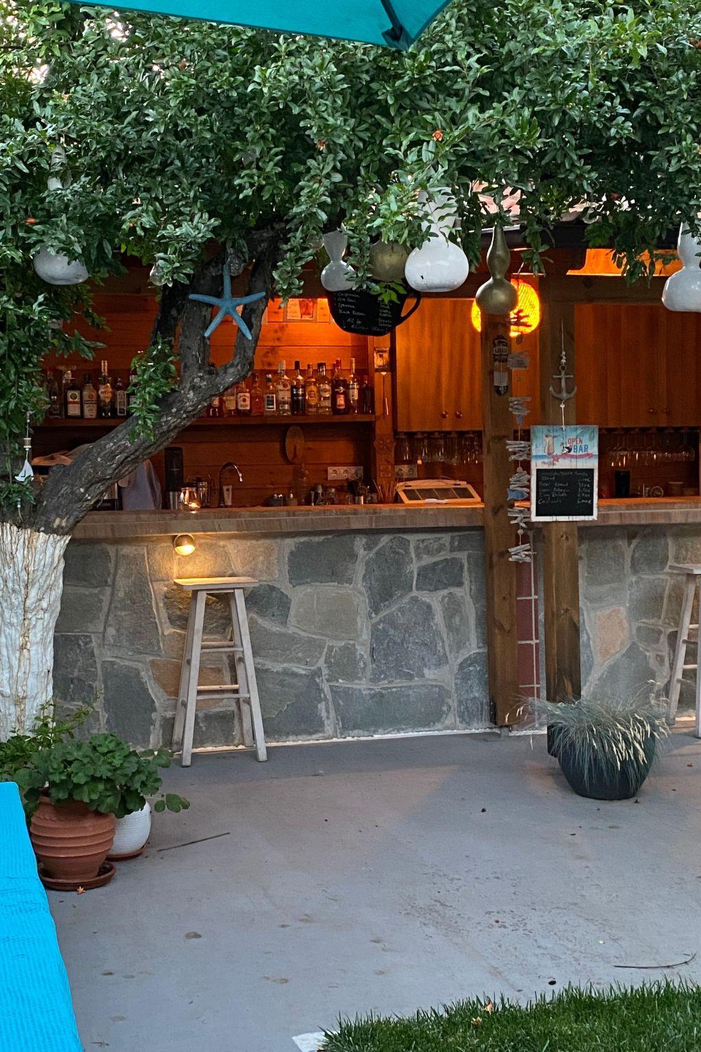 In the flower-filled courtyard there is a house bar with a cosy seating area, an outdoor shower, a vending machine with cold water and a small lawn for playing and relaxing.