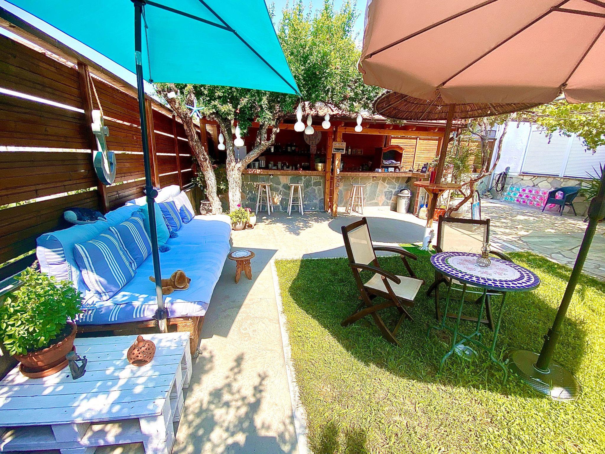 The flat house is only 230m from the 8km long beach!!! Our house is situated in the centre of Nea Vrasna. Very quiet and yet very central. The 8 km long sandy beach is only 4 - 5 minutes walk (230m.). All shopping facilities as well as bars and the many taverns are within walking distance. The bakery is only 100 metres from the house. Thessaloniki airport is 90 km away. You can reach the airport in one hour via the new A2 motorway.