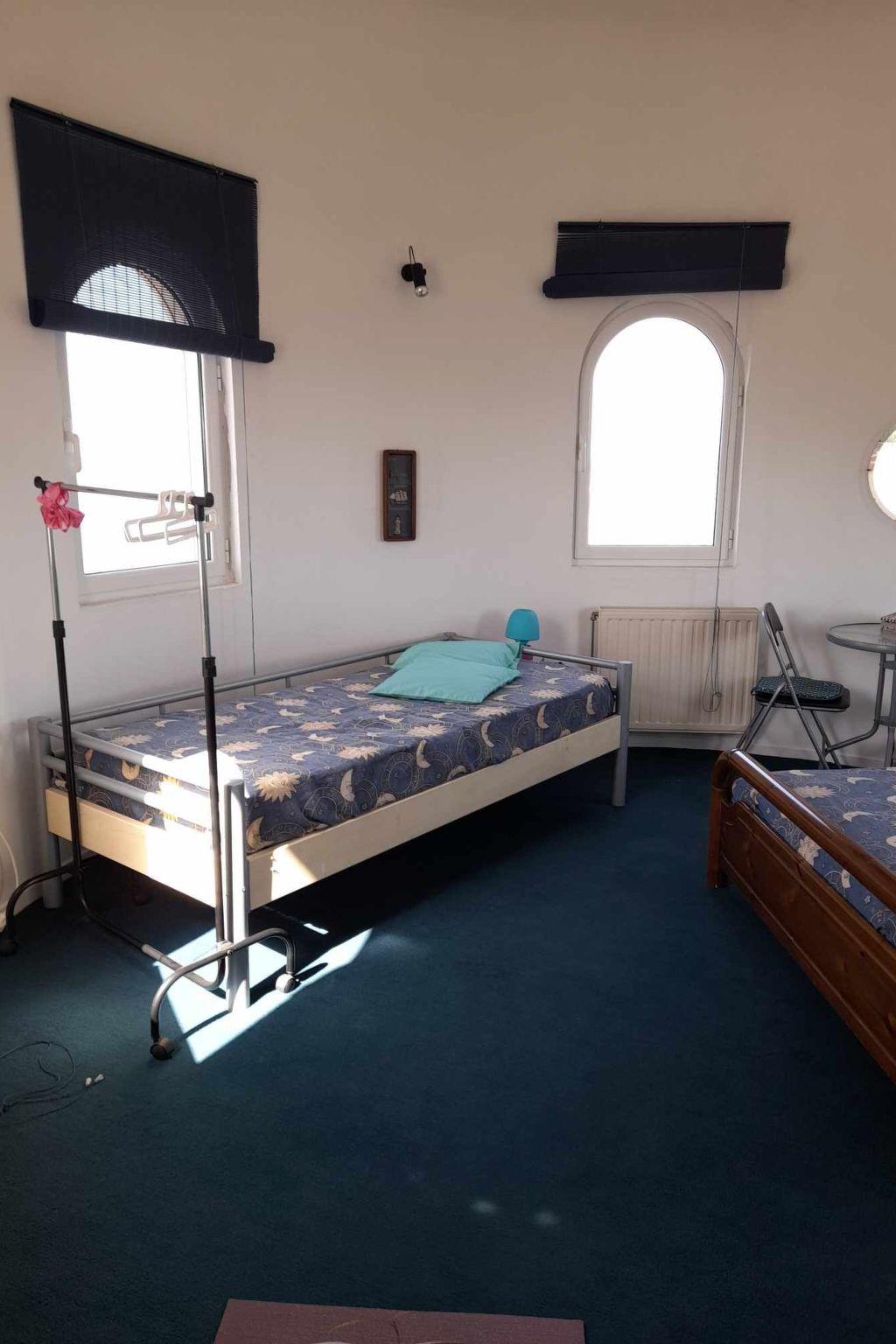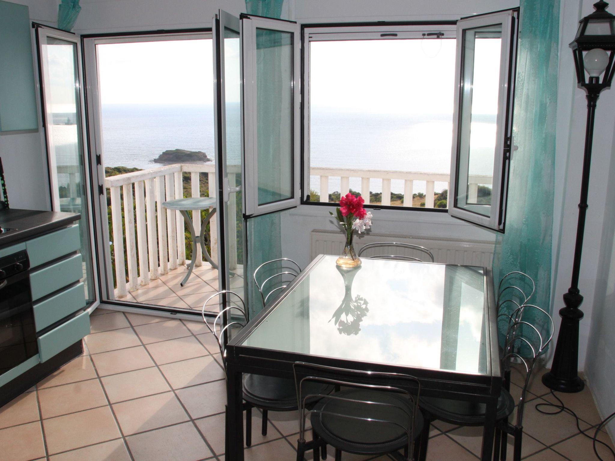 Upper ground floor-1st-2nd floor for 9 people, air-conditioned open space comprising living room with sea-view balcony, dining room, kitchen with sea-view balcony. Separate bathroom and air-conditioned double bedroom with garden view. Upper ground floor-1st + 4 stairs, 1 double bedroom with sea view balcony/bathroom-wc/air conditioning. 2nd 1 double bedroom with garden view/air conditioning/bathroom-wc and 1 round triple bedroom, WITHOUT BATHROOM-WC, sea and garden view/air conditioning.Panoramic terrace. Bed linen and towels changed once every 7 nights. If you wish to stay more often, it is possible to rent