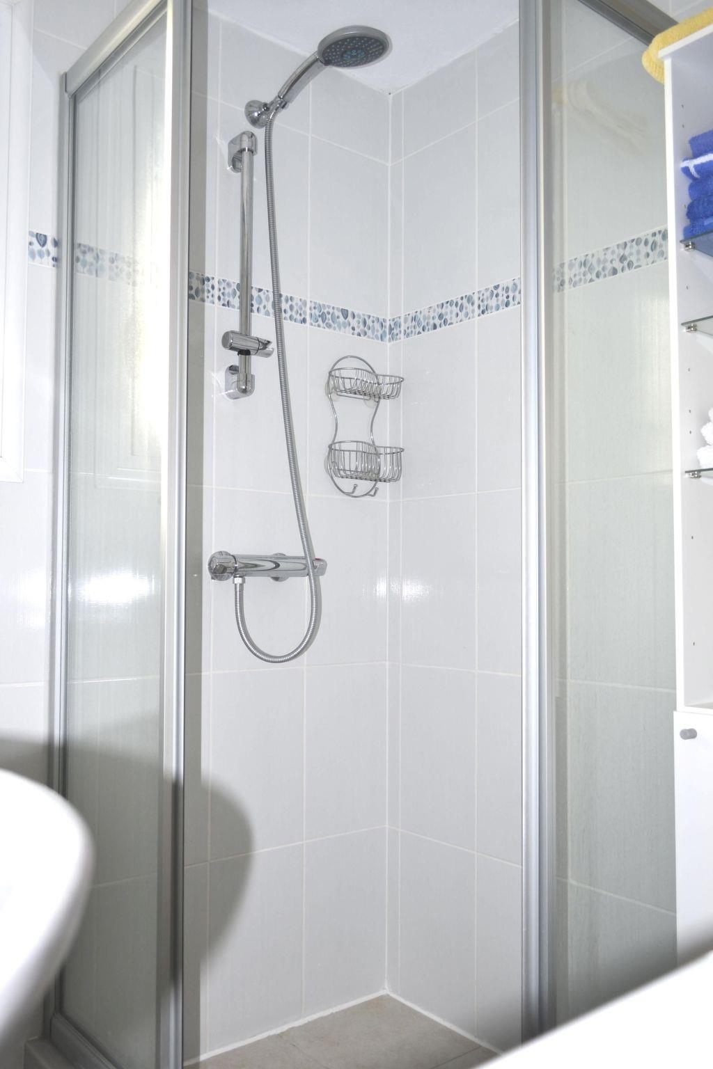 If you ever need heating at Villa Pilias, you have a few options: Firstly via the air conditioning in the 3 bedrooms or via fan heaters. Then via the underfloor heating, which is heated by the electric boiler in the cellar or the stove (with glass pane) in the living room. You then heat the underfloor heating with effective and inexpensive olive wood. In addition to a 42-inch TV panel with SAT reception in HD and a Blu-Ray player, you will also find a receiver with docking station for I-pad, I-phone etc. or USB stick. In one bedroom there is another HD flat screen TV and Internet access is available via a powerful mobile WLAN router with prepaid card, which can be topped up by the carer couple for a fee on request. There is a double bed in each of the three bedrooms. There is an L-shaped couch in the living room, which can easily be converted into a full sofa bed. In the master bedroom you may be woken up in the morning by a crowing cock and the Greek sun shining right into the double bed, you open your eyes and look out over the sea from your bed - or not, if you have closed the thick aluminium shutters and the double-glazed door - Villa Pilias is located in the countryside. Of course, you can also cook for yourself in the fully equipped kitchen, for example with recipes from a Greek cookery book, which can be found in the well-stocked bookcase. In addition to a dishwasher, toaster, kettle, fridge, 3 coffee machines and 2 electric grills, there is of course plenty of crockery available. In the villa, four people shower at the same time with 130 litres of water heated up to 70 degrees from the solar collector or from the electric boiler. The main bathroom has a double shower and two washbasins. There is also a washing machine in the second bathroom with shower and WC.