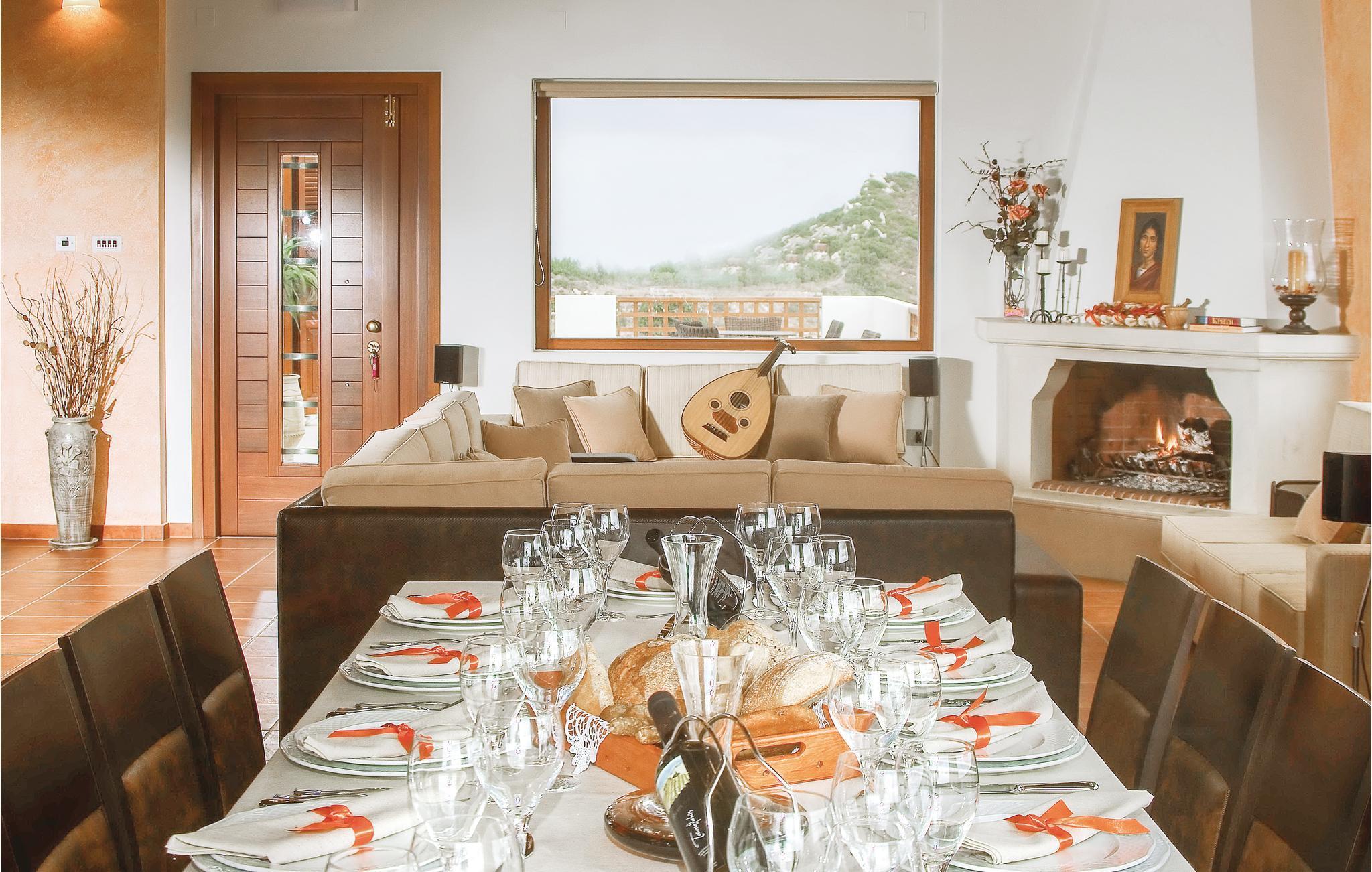 Inne i huset finns ett öppet kök och vardagsrum med öppen spis och stora panoramafönster som erbjuder dig en magnifik utsikt. En balkong är tillgänglig från vardagsrummet och från fyra av de sex sovrummen. Denna lyxfastighet och dess bekvämligheter kommer säkert att tillfredsställa de mest kräsna smaker - ett utmärkt val för både stora familjer och grupper av vänner.