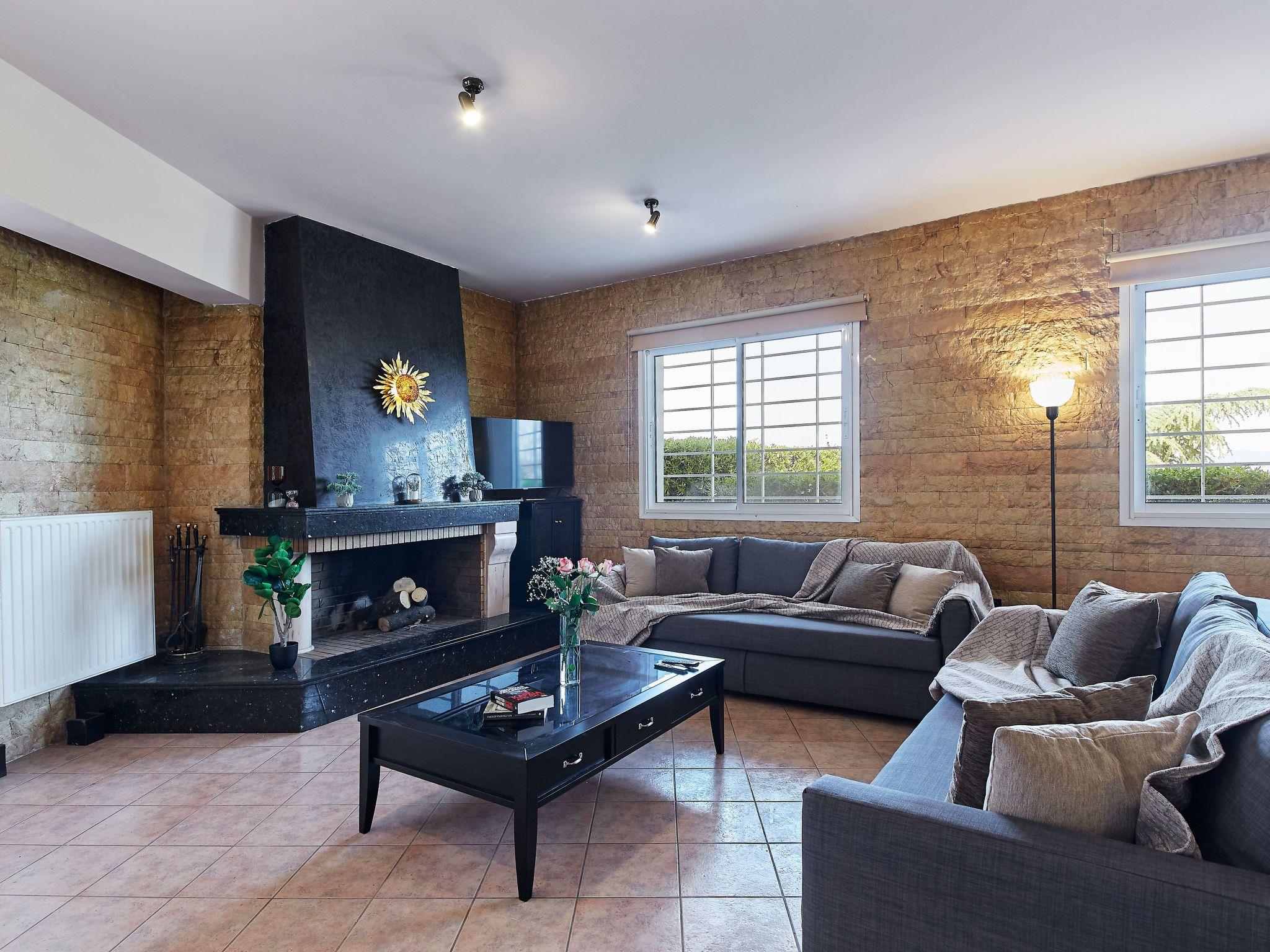 The villa has been built on three levels with wifi coverage and can properly accomodate up to 20 guests. Additional accomodation settings could be arranged for up to 5 more guests. The first level offers a large dining area with a living room and a fireplace and a direct entrance to the kitchen. Inside, you will find a TV, streaming services. On the mid level you will find a superior master bedroom with magnificent sea view, a large living room, 1 bedroom with bunk bed and an attached bathroom and a kitchen. 3 more master bedrooms await you on the upper floor with access to a terrace with wonderful sea view. Sleep soundly amid the quiet nature surroundings and wake up to the vivid colors each new day!