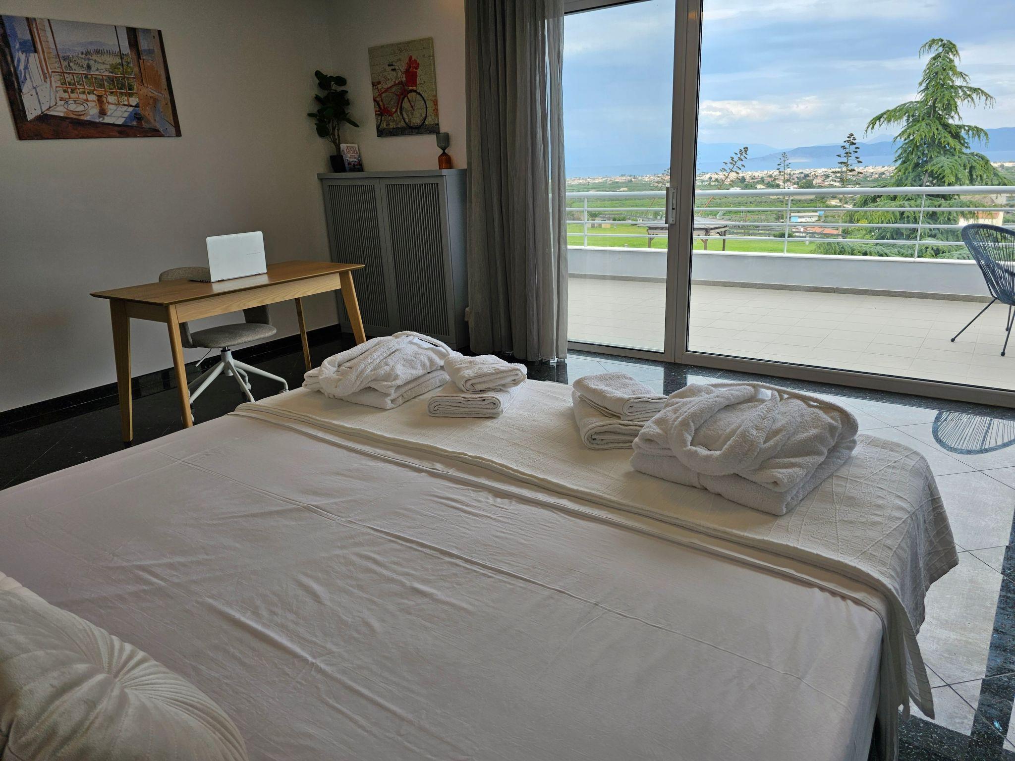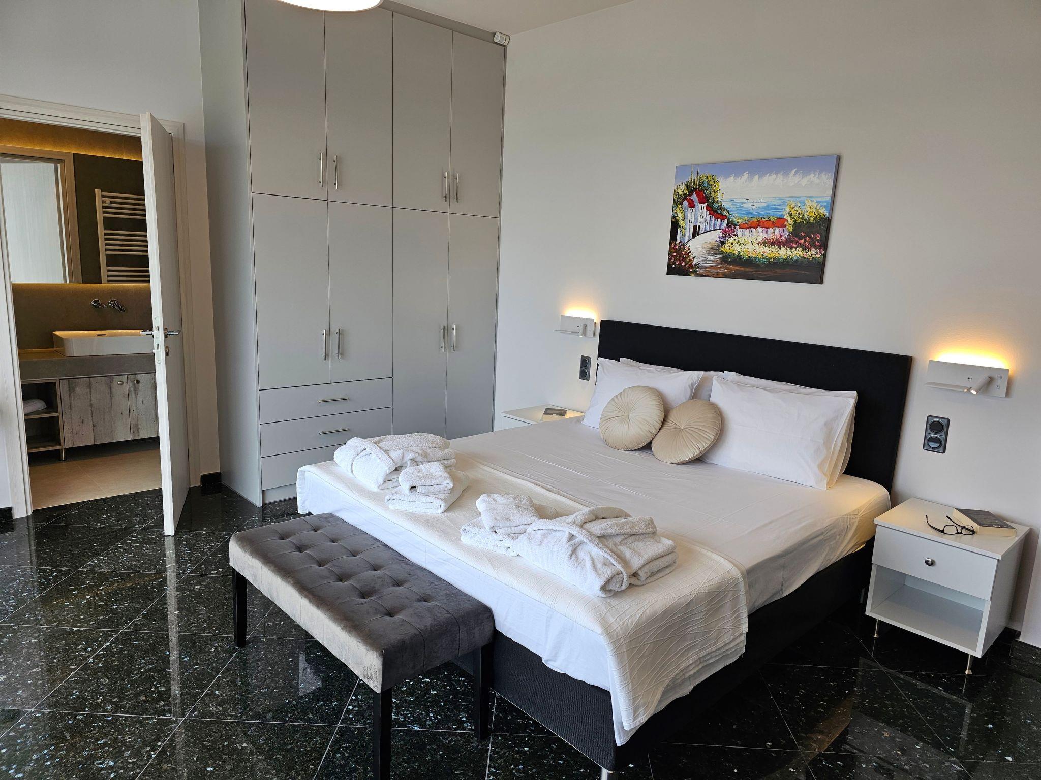 Bedroom 2- Master: King size bed, En-suite bathroom with stand-alone shower, Direct access to Terrace, Air conditioning, view of the sea