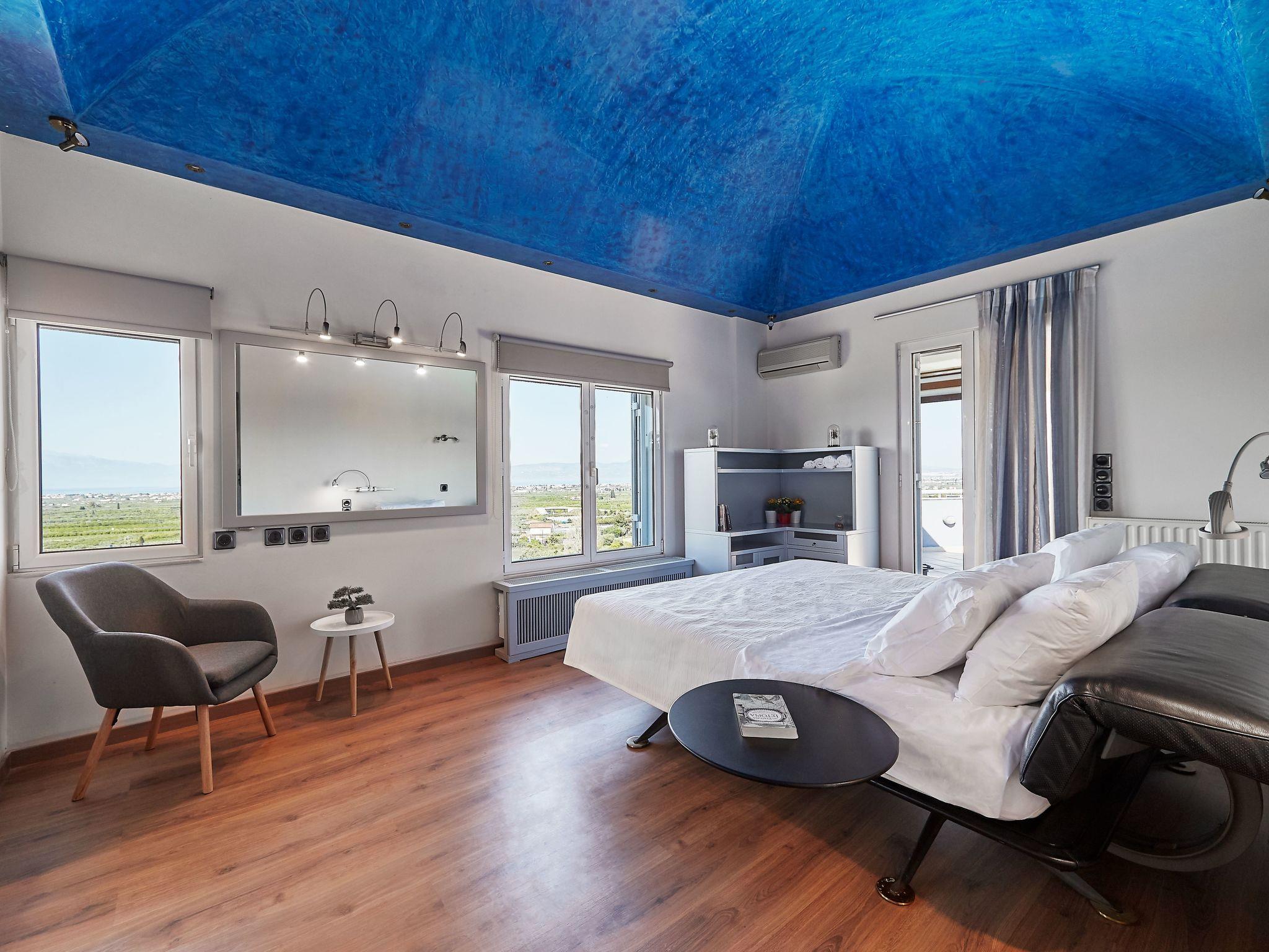Bedroom 3 - Master: King size bed, En-suite bathroom with stand-alone shower, Air conditioning, view of the sea