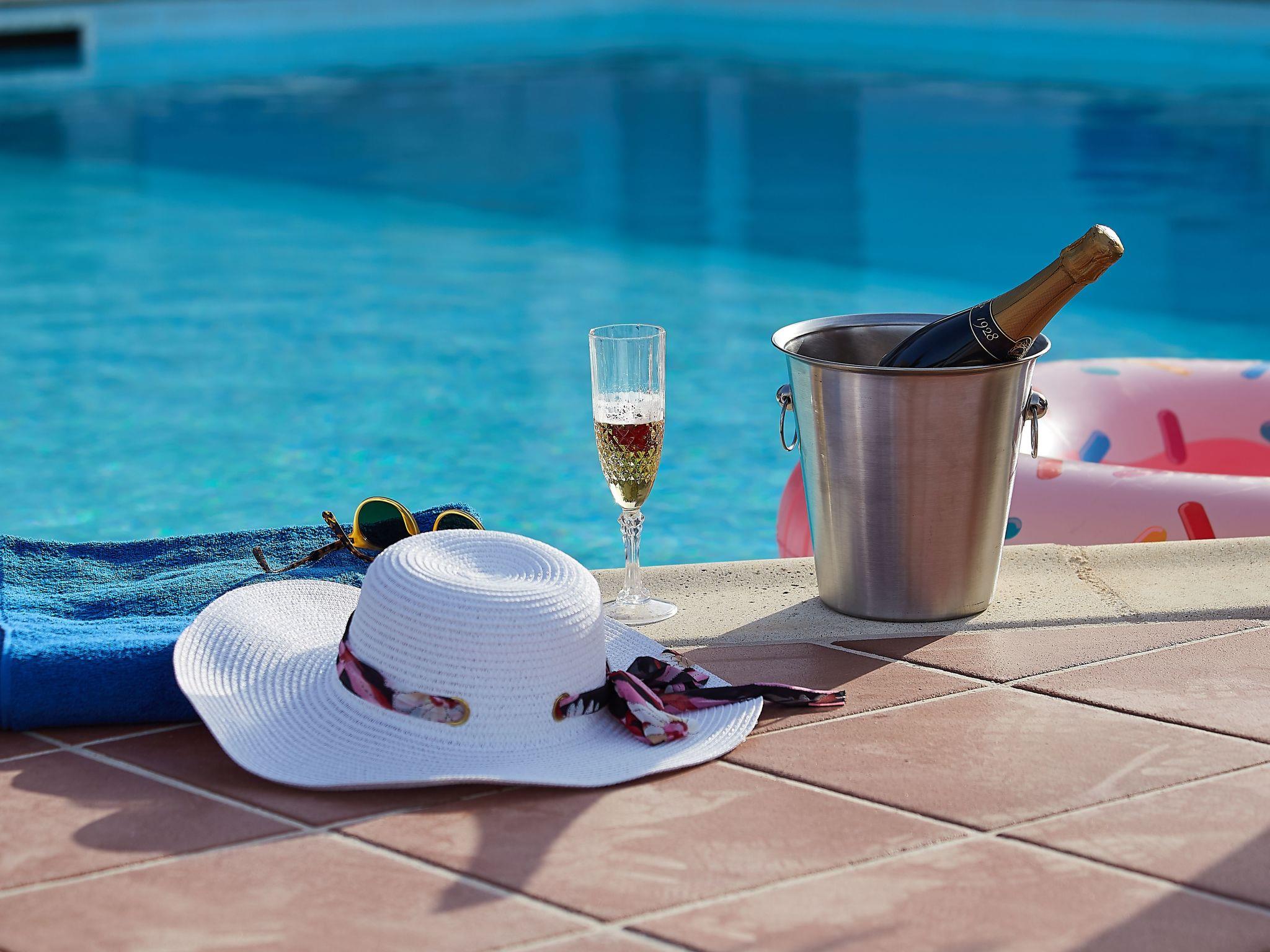 An impressive, infinity swimming pool stretches around the large garden area. The swimming pool area is great for sun bathing and the outdoor speakers can provide the music of your liking.