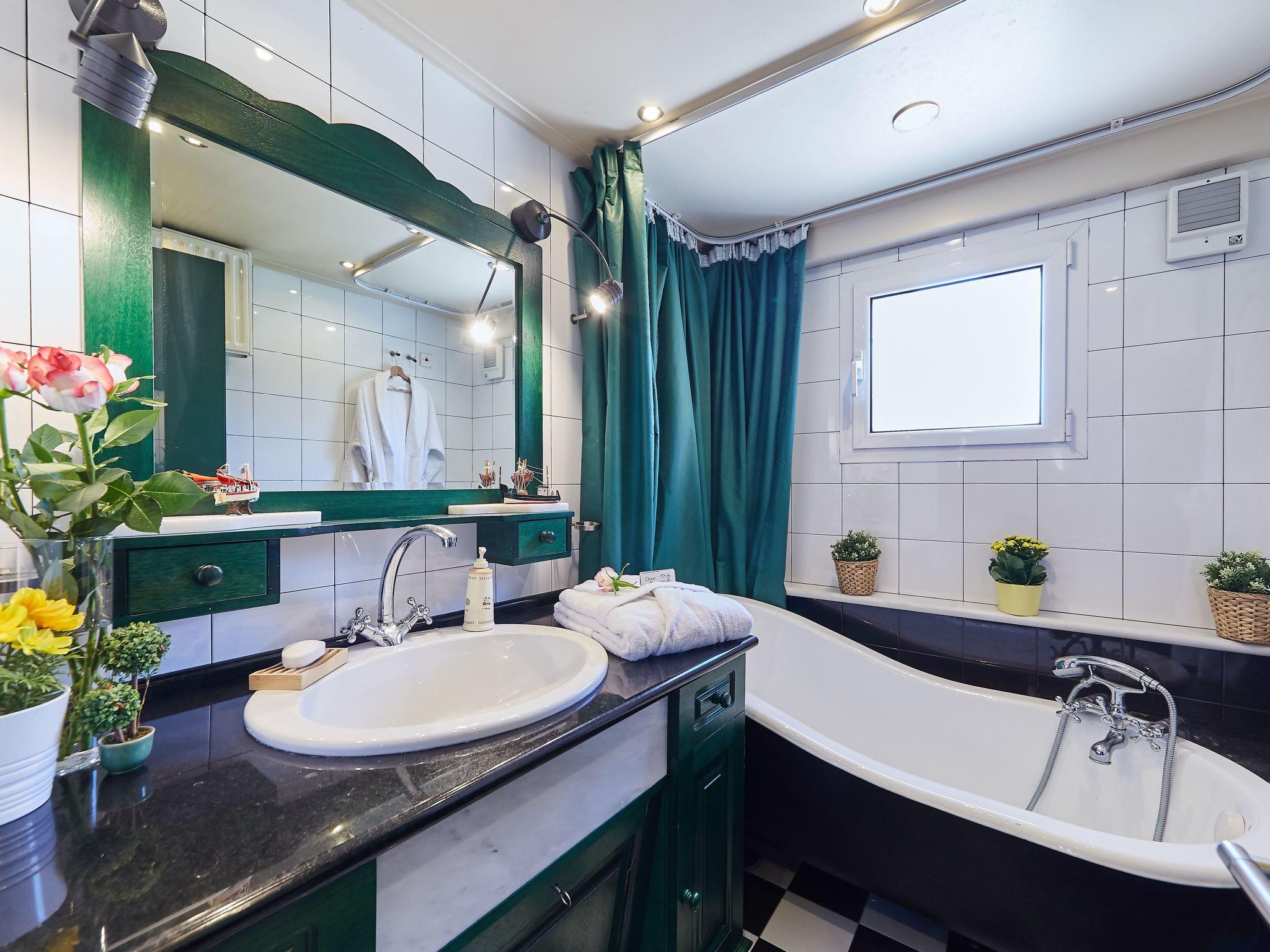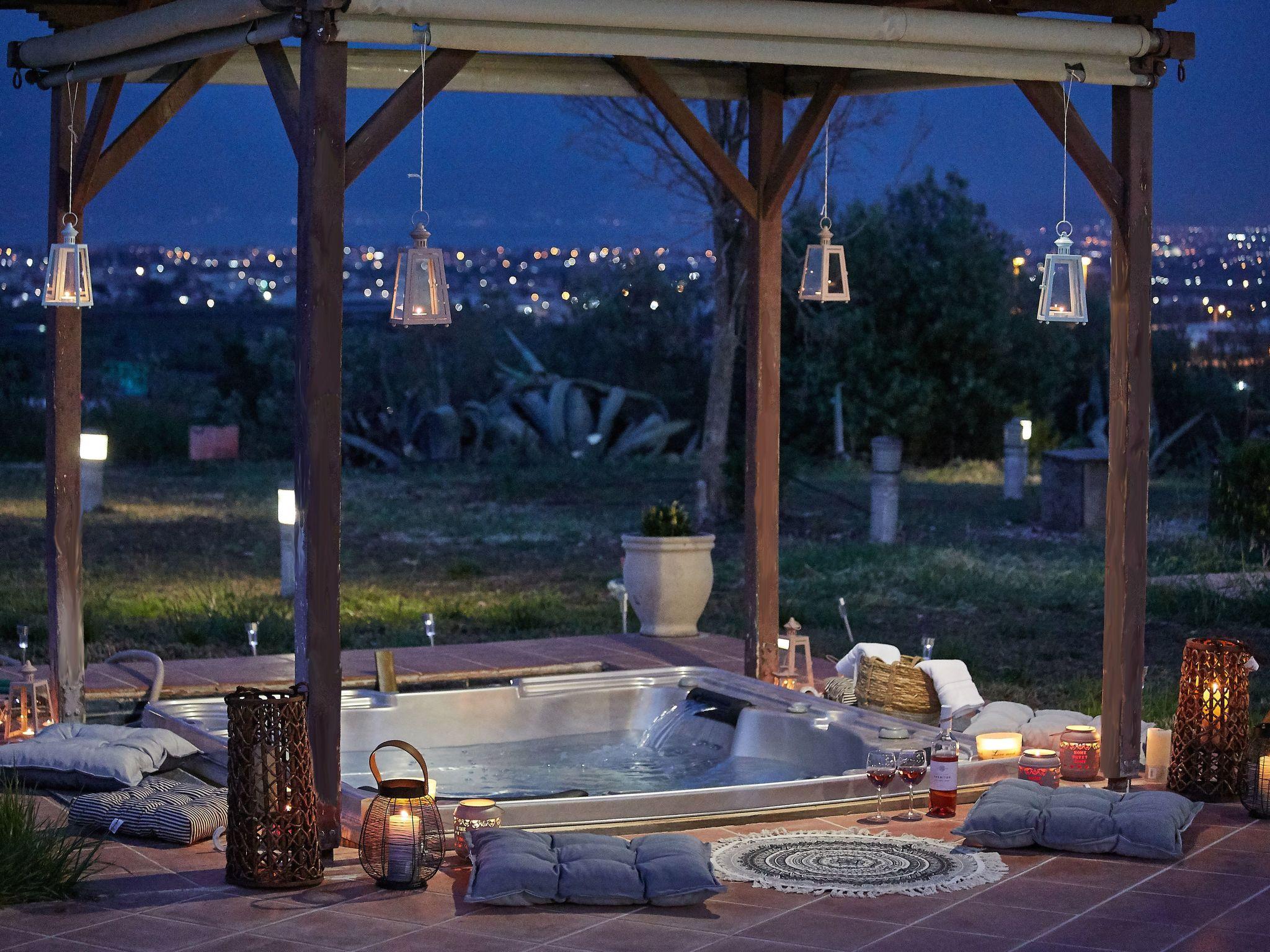 A very large pool just in front of the main building will make your holidays even more luxurious while you can use the pool facilities for sunbathing. Our garden will offer you joyful moments, especially in the sunset, when the orange sky will make the colors of the natural landscape more distinctive. A large outdoor jacuzzi situated next to the pool overlooking the Corinthian Bay can give the needed relaxing sense. Especially in nighttime the feeling of the water massage under the stars is unique.