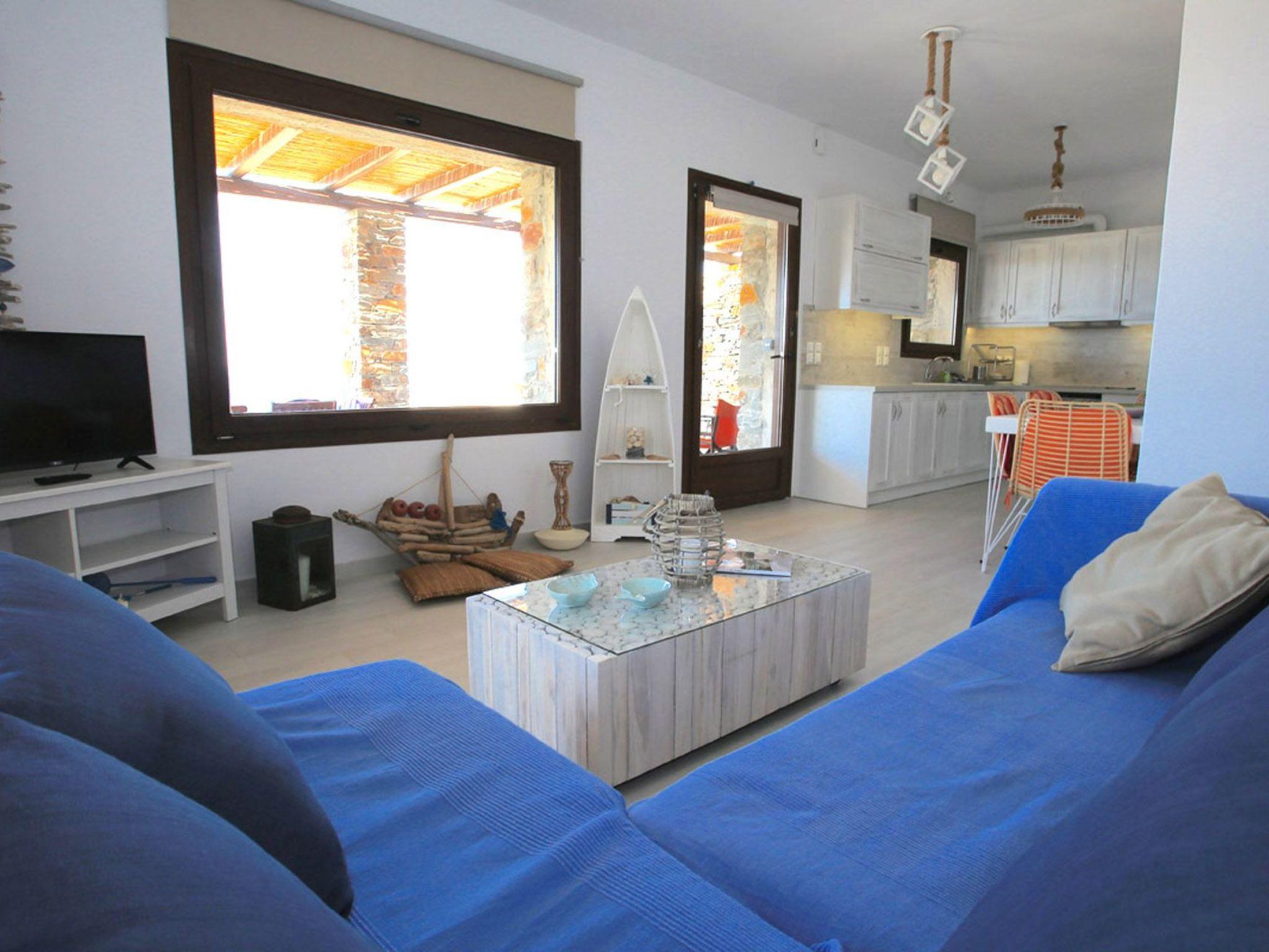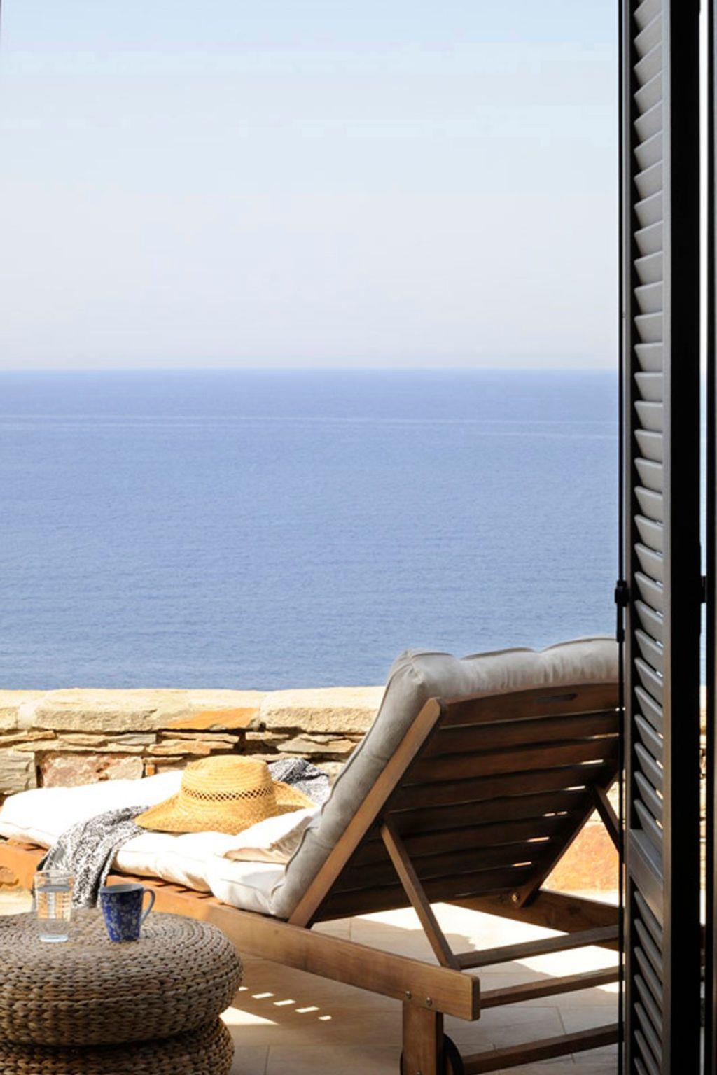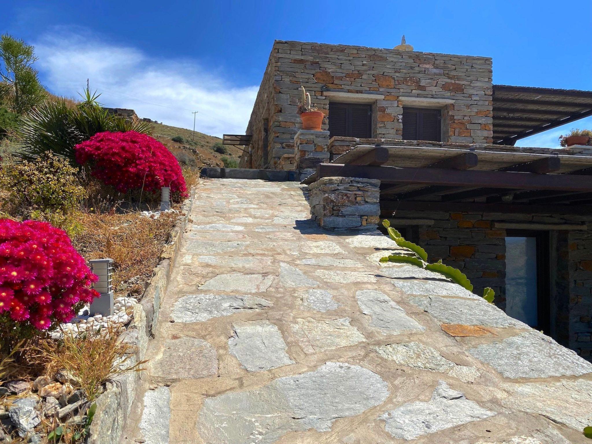 Externally, the villa’s grounds are a paradise waiting to be discovered. Positioned facing south-west to guard against the meltemi summer winds, it sits gracefully atop a serene inlet. This position ensures a tourist-less, 60-meter beach with enchanting blue-green waters, practically inaccessible to the general public. The villa's architecture, characterized by the "old-style" uncut boulder technique, harmoniously blends with its natural surroundings, offering spaces of tranquility and beauty.