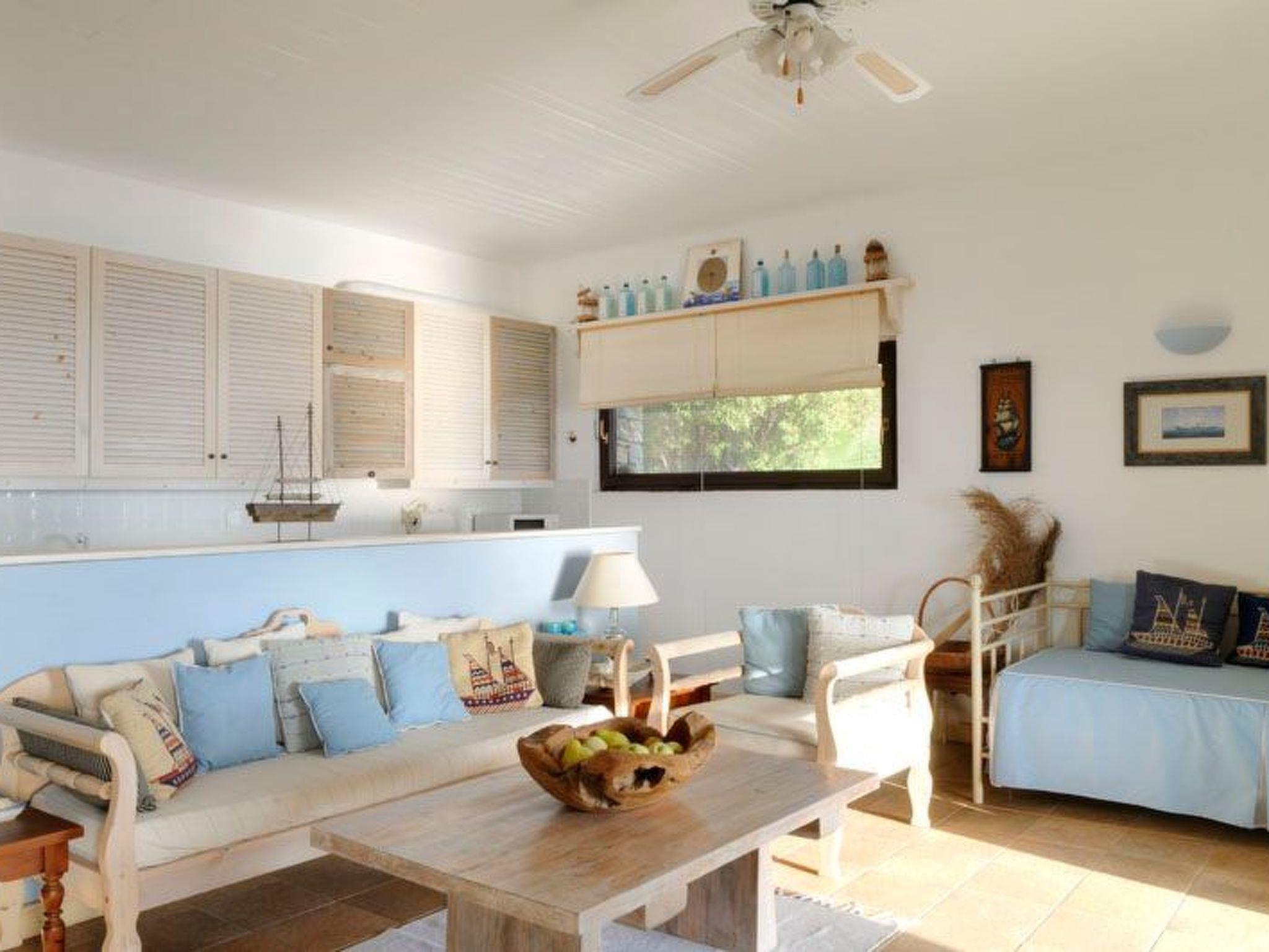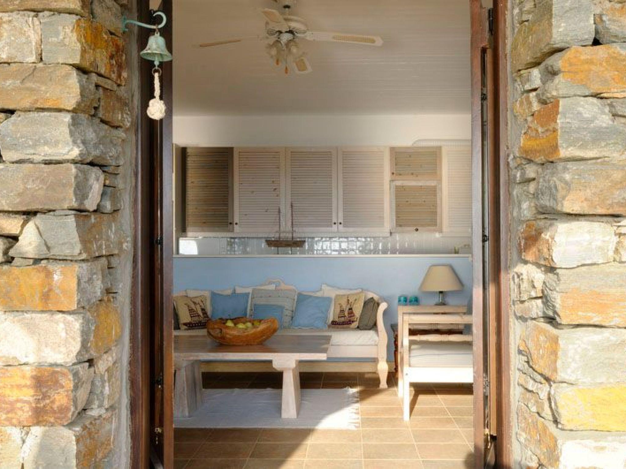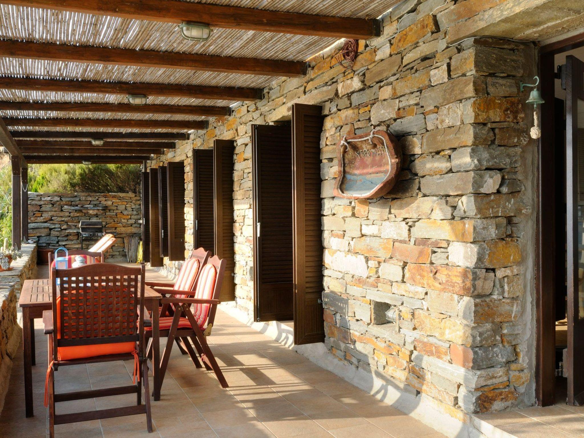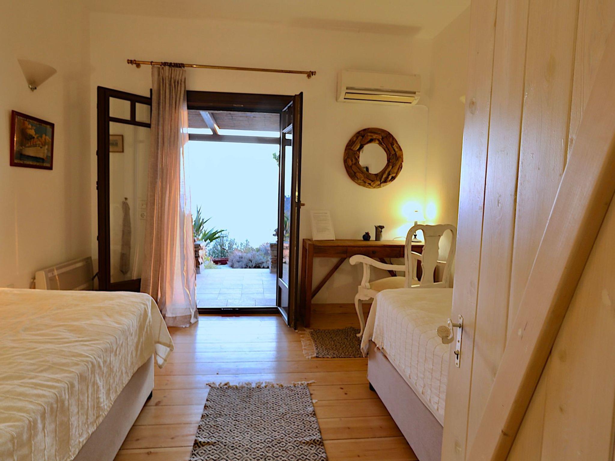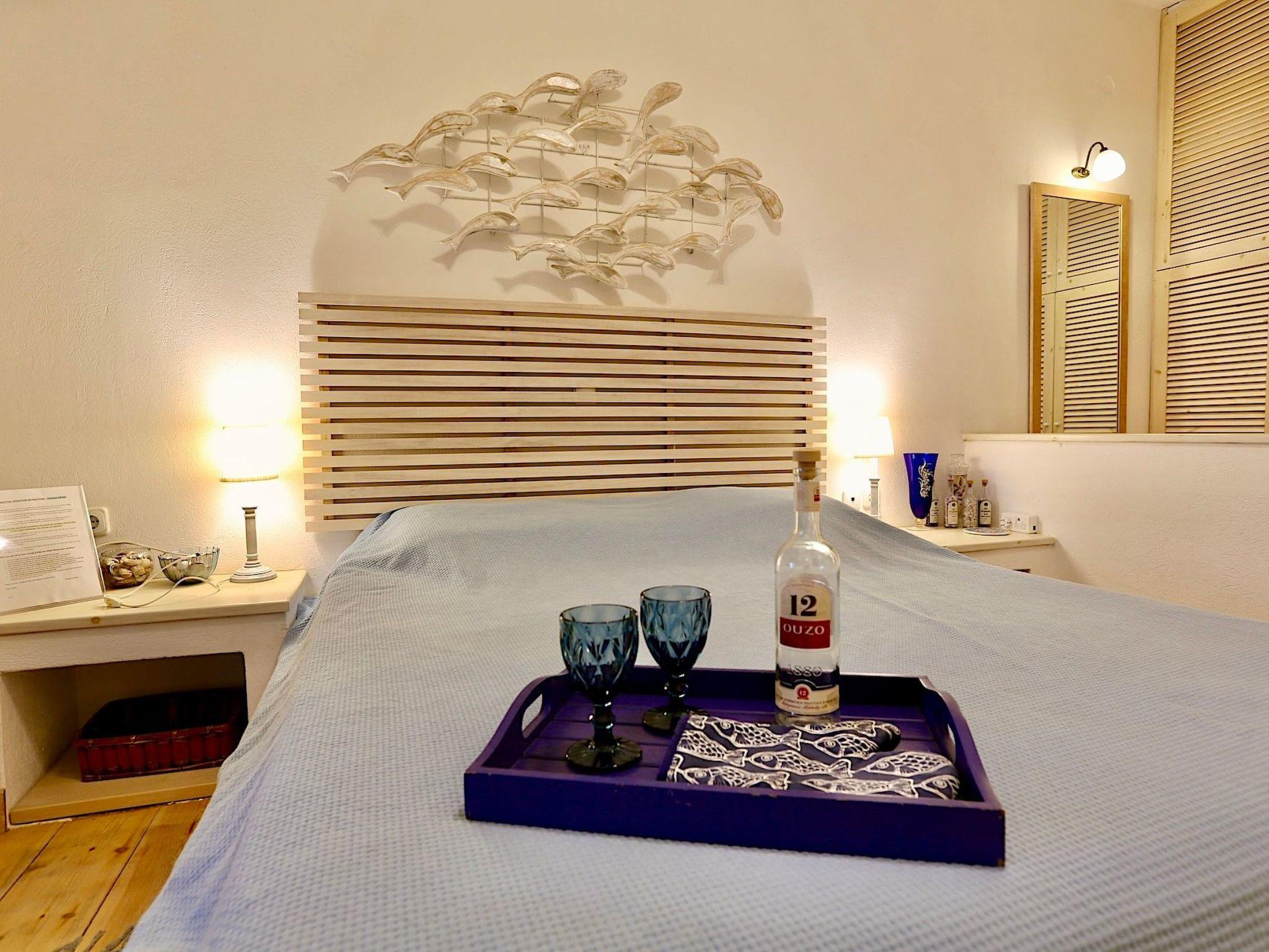A charming spacious 105 sqm apartment that occupies the entire garden level of the Villa. It is an autonomous house, with its own independent entrance and outside spacious reed-shaded sitting area, offering a unique “on-the-sea”, feet –in-the-water vacation experience and a high level of privacy, a reason why it remains a favorite among our seasoned guests. Not suitable for families with children under 4. This is a self contained apartment 2 bedroom, 1 bathroom (110 sm.), VERY close to the water (17 m!), very private, a stupendous terrace, with an amazing view and quality furnishing & decorations. Sweeping 180 degree sea and sunset view Property with high quality furnishings Immediate beach access (3 min walk)- Maria Beach House (BH) is a luxurious, charming spacious apartment that occupies the whole lower level of the Villa Phil. Maria BH is a completely independent house, with its own independent entrance and outside reed-shaded sitting areas, offering a unique “on-the-sea”, feet –in-the-water vacation experience, a high level of privacy and remaining a favorite among seasoned guests. The upper level of the unit is occupied by the owners who provide daily support Inside: Large living nautically themed living room with single bed-divan (80X200cm) and immediate access to sea-viewing terrace & garden, dining hall, open plan fully equipped kitchen, master bedroom (queen size, built bed), guest bedroom (two singles), one large bathroom with shower. Equipment: 32” LCD HD TV, DVD, mini Hi-Fi, ceiling fans in all rooms, quality bedroom anatomic mattresses, kitchen with quality appliances by NEFF & BOSCH, refrigerator, oven, hood, dishwasher, microwave, mixer, blender, coffee machine, espresso maker, toaster, solar water heater, vacuum cleaner, clothes washer (shared), outside shower (shared), water softener. 1 GB wifi per week. Outside: 70 sq meters of reed-shaded terrace in the garden with sea view, teak wood outside furniture, sun/lounge chairs, American gas-lava rock outside BBQ, open air parking, succulent/ Mediterranean garden.