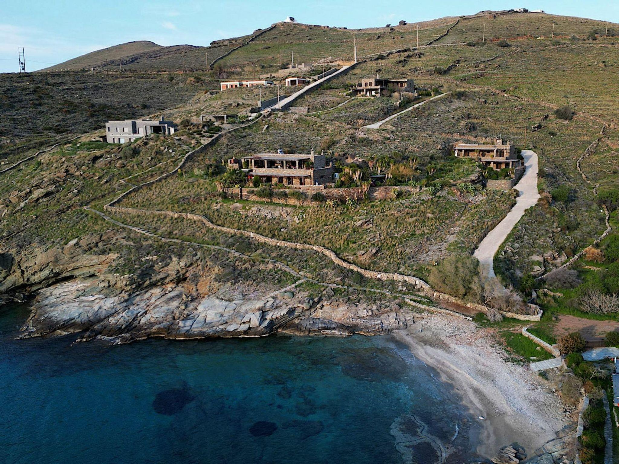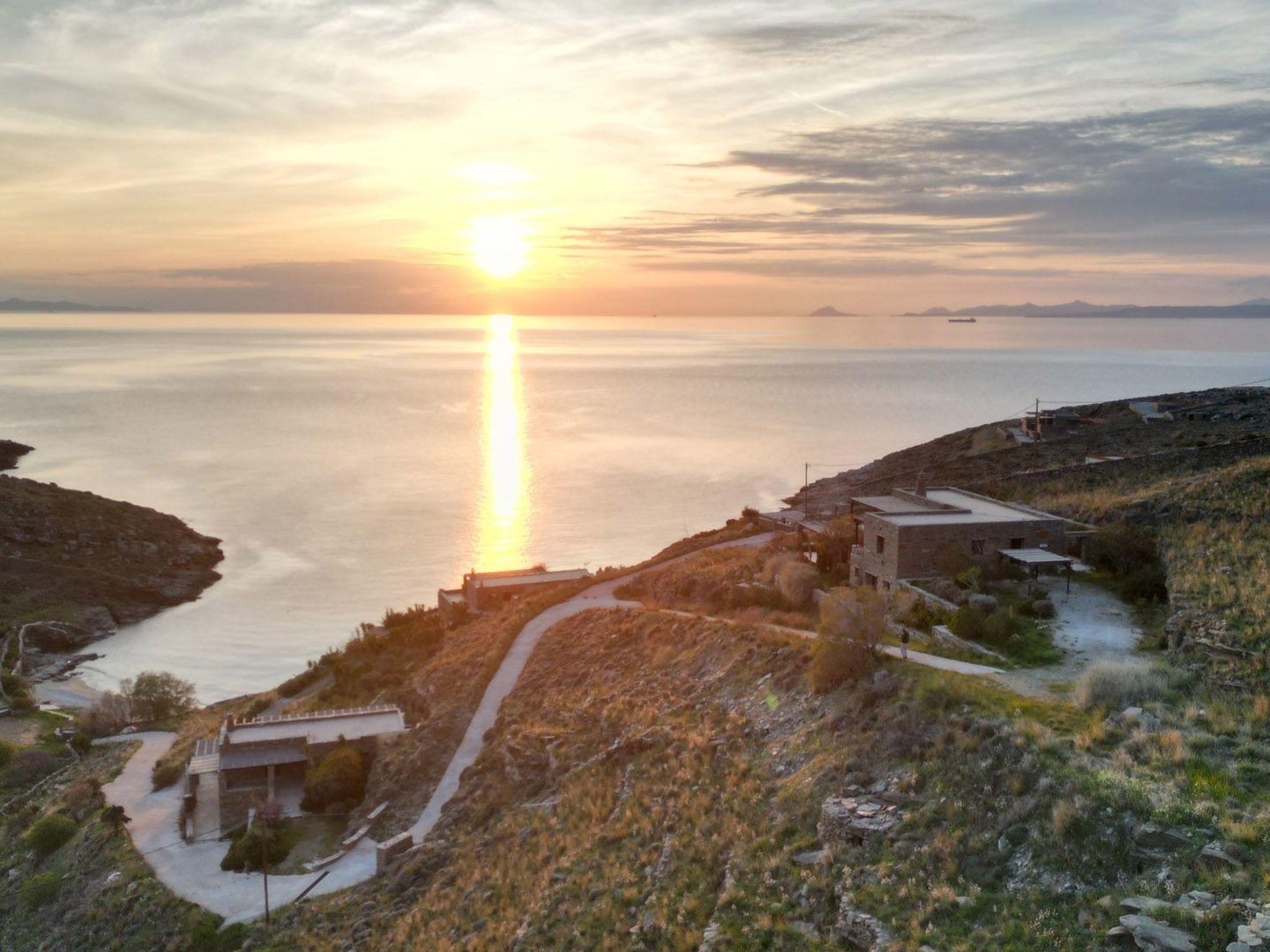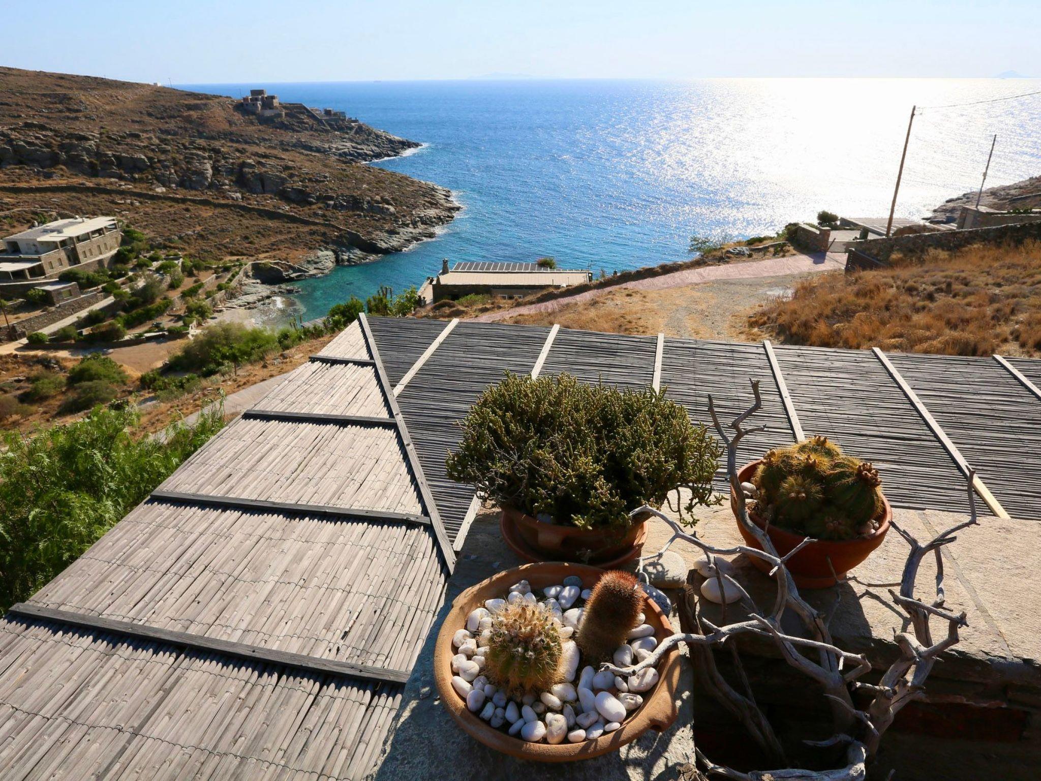 1 km for tavernas and shopping and organized beach, 3 km to water sports beach. In Kastellakia Bay on Kea island in the Cyclades, this holiday villa has access to the Kastellakia Beach and amazing sunset views 100 meters from the house. Access to Kea from Athens and its airport is easy, swift (door to door in 2 hours).