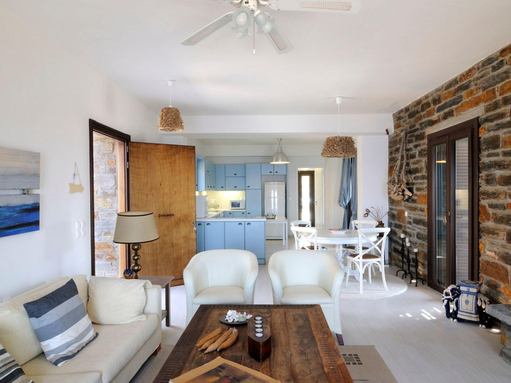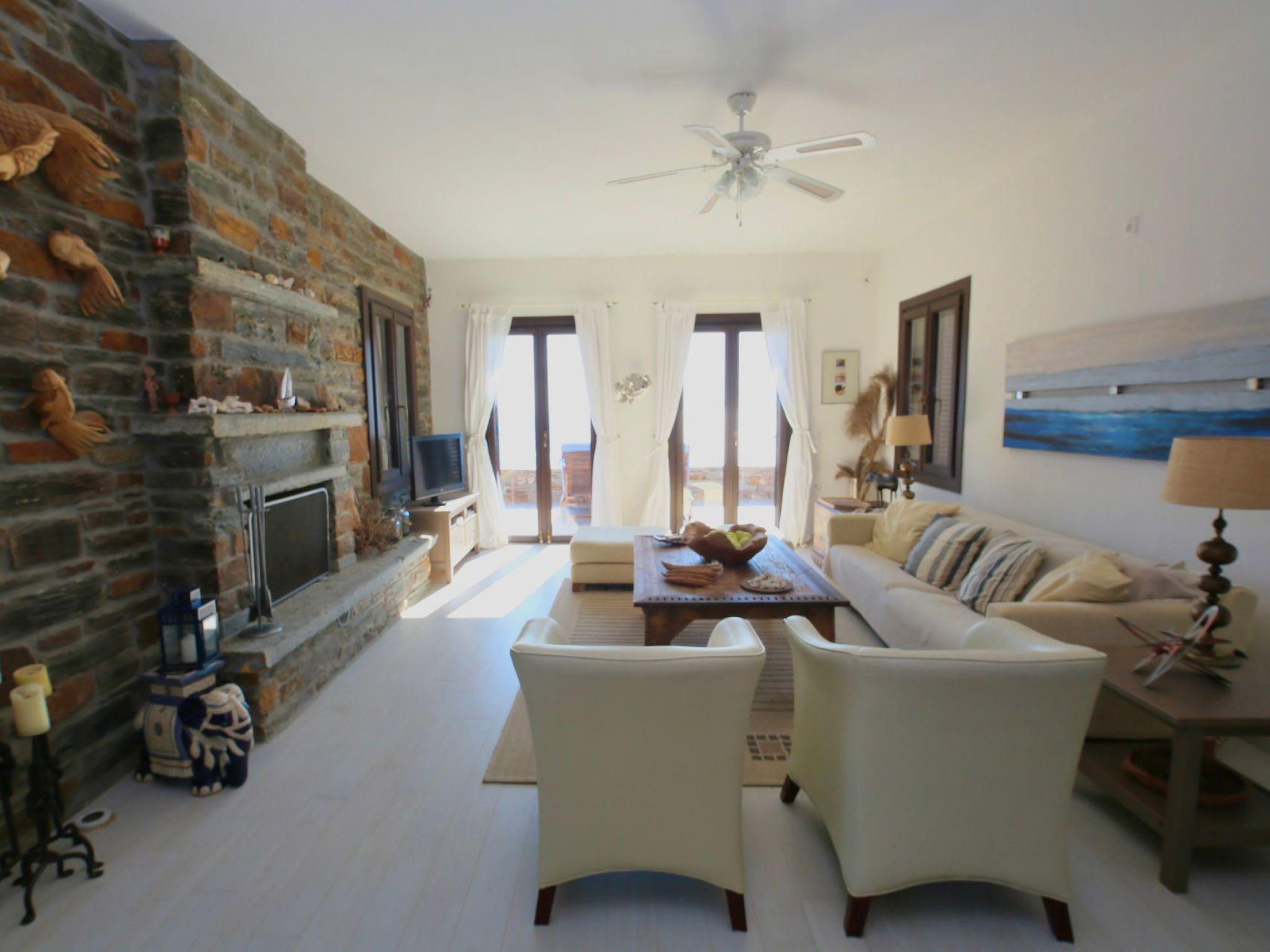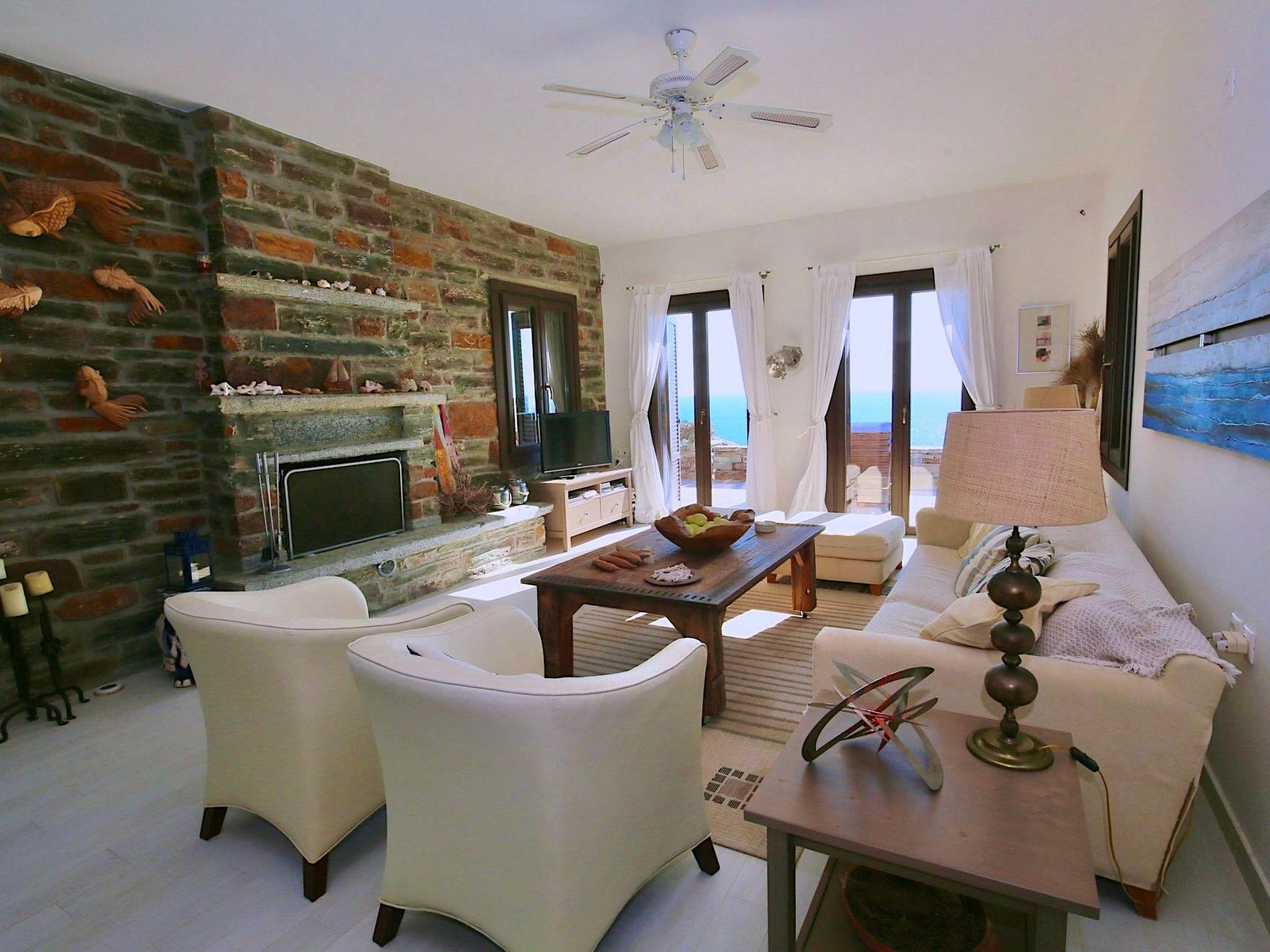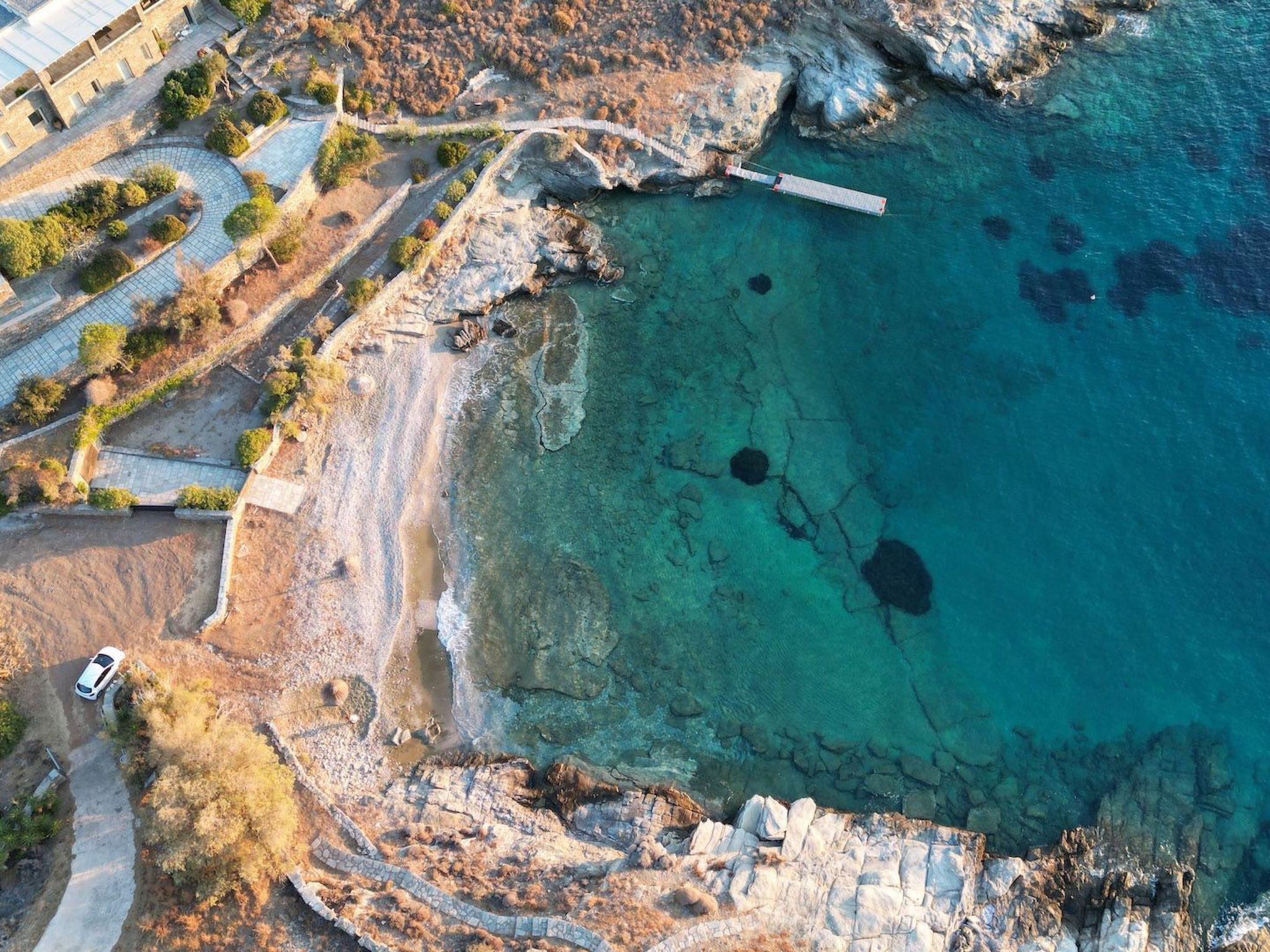 1 km for tavernas and shopping and organized beach, 3 km to water sports beach. In Kastellakia Bay on Kea island in the Cyclades, this holiday villa has access to the Kastellakia Beach and amazing sunset views 100 meters from the house. Access to Kea from Athens and its airport is easy, swift (door to door in 2 hours).