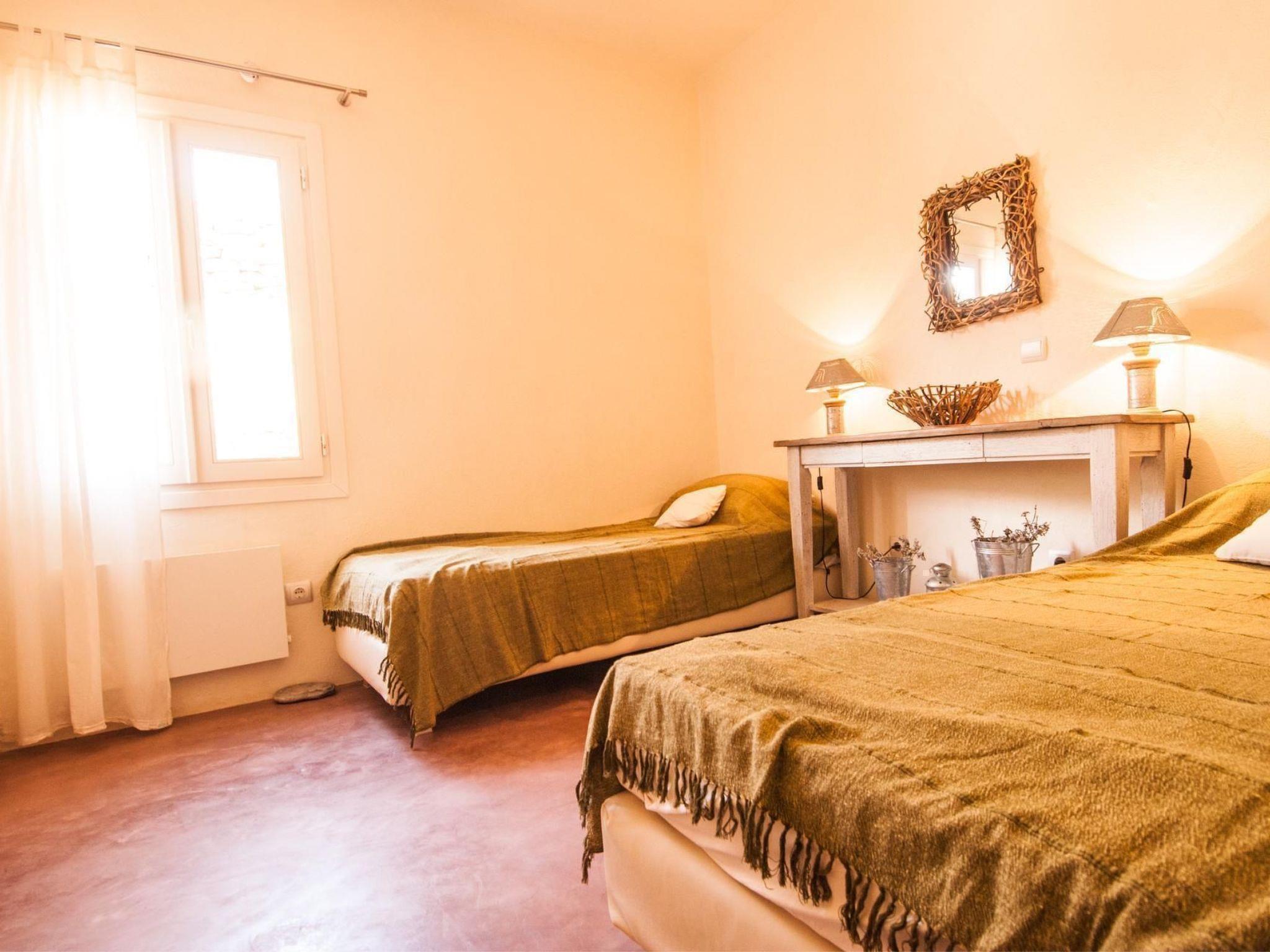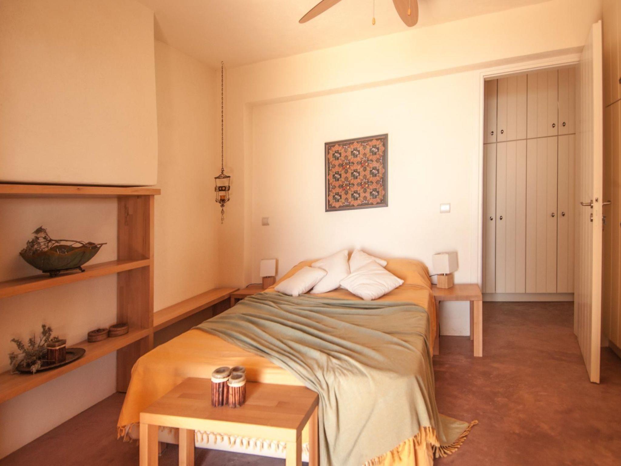 The property can accommodate up to 22 guests for a relaxing holiday. All four houses provide terraces with a spectacular view of the sea and the kidney-shaped pool. All the beds have ergonomic mattresses. The double beds measure 170 x 200cm, the single beds 90 x 200cm. There are insect screens fitted in front of the doors and windows. Owing to the natural ventilation it is generally cool inside the buildings, even on the hottest summer days. All the rooms are fitted with additional ceiling fans. There is central heating in winter.