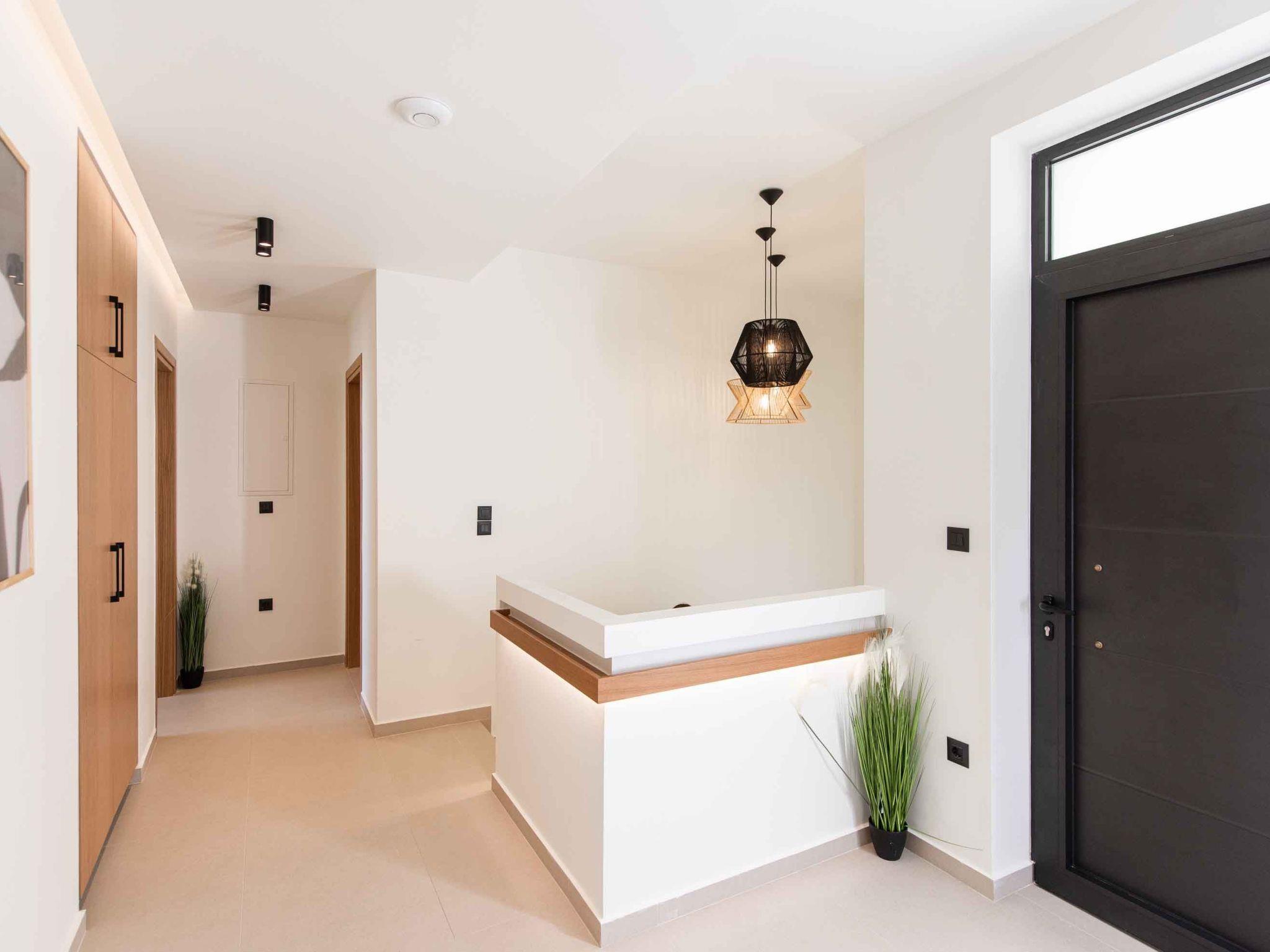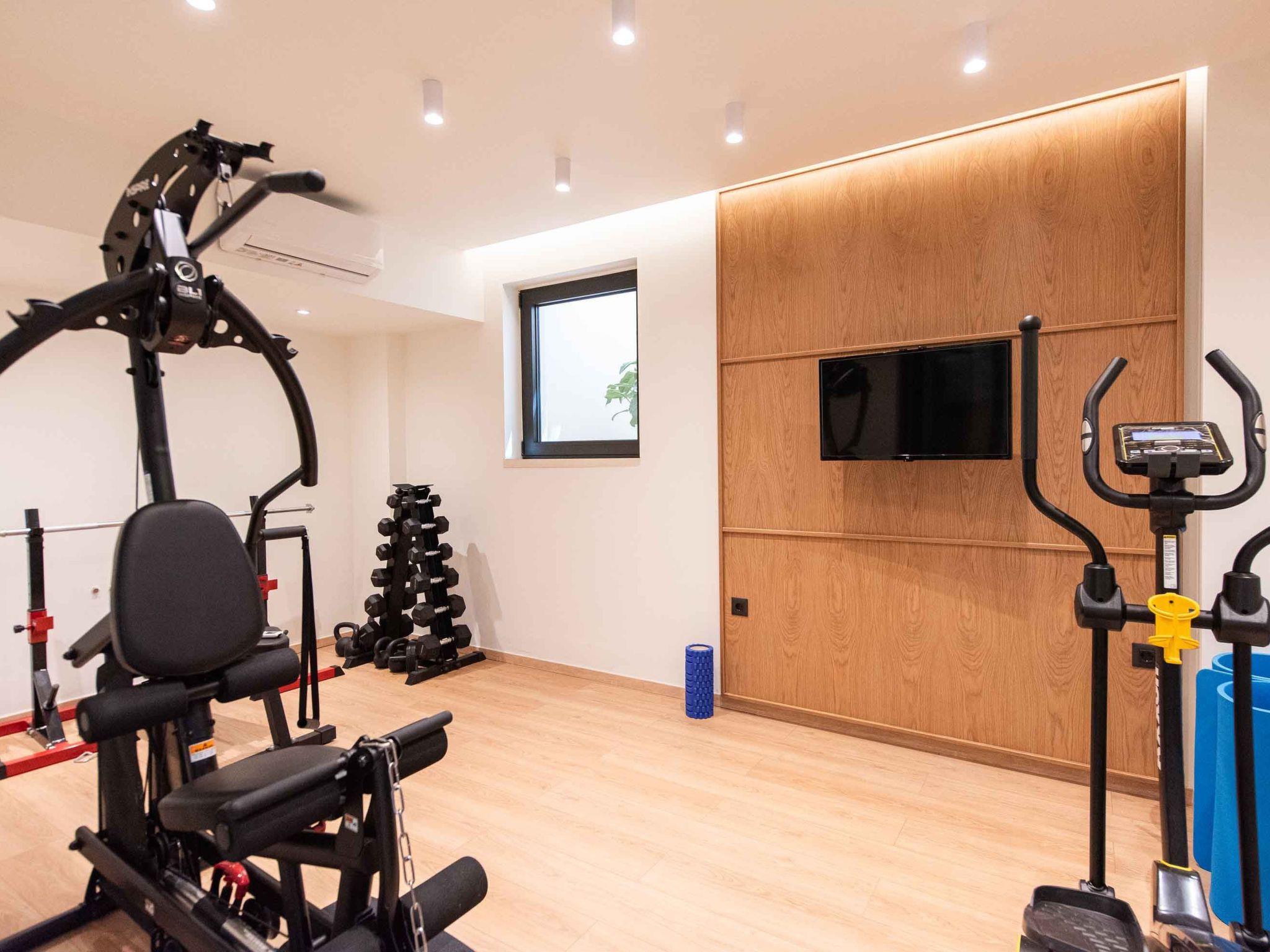 Casa di Franco is a three-story villa consisting of 7 bedrooms, one of them with bunk beds. On the lower floor, you will find a room adequate for people with disabilities with an ensuite bathroom and bunk beds for 4 persons. In the same area, you will find a gym and a Hamam. Four bedrooms are situated on the first floor, three with single beds that can be converted into double ones, and one with a king-size bed. Entering the villa on the ground floor you will find a spacious open area with a fantastically-equipped kitchen for foodies. The area is completed with a dining and a living room with a big flat-screen smart TV with satellite channels and a projector and a PlayStation Console and a bedroom with a king-size bed and a communal bathroom. Luxury and modern design complete the scenery of contemporary architecture and high-quality products. The neutral palette used here creates the perfect scenery for a serene getaway from the fast pace of life making your stay unforgettable. Sink into the sofa with a good book, or gather your group in the cozy dining area for an evening together. Natural light illuminates the interior, spend the night sipping on wine while having some quality and relaxing time with your loved ones. The best part of this villa is the wine cellar on the lower floor, adequate for connoisseurs and discerning wine lovers. After all, is there any present more elegant and distinguished than a relaxing evening by the fireplace with a glass of fine wine under the starlight? You can get to the lower floor via the elevator.