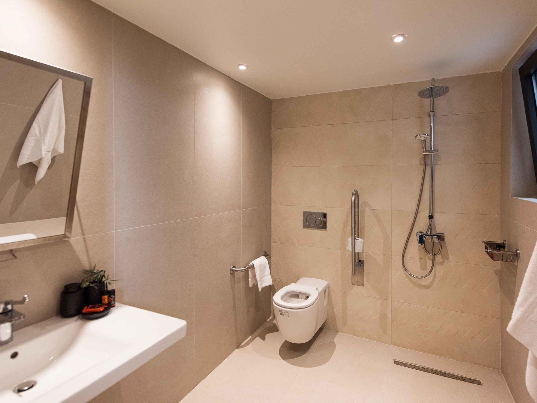 Bedroom 6 for guests with mobility needs: King-size bed (1.80×2.00), A/C, ensuite bathroom with shower adequate for people with mobility needs
