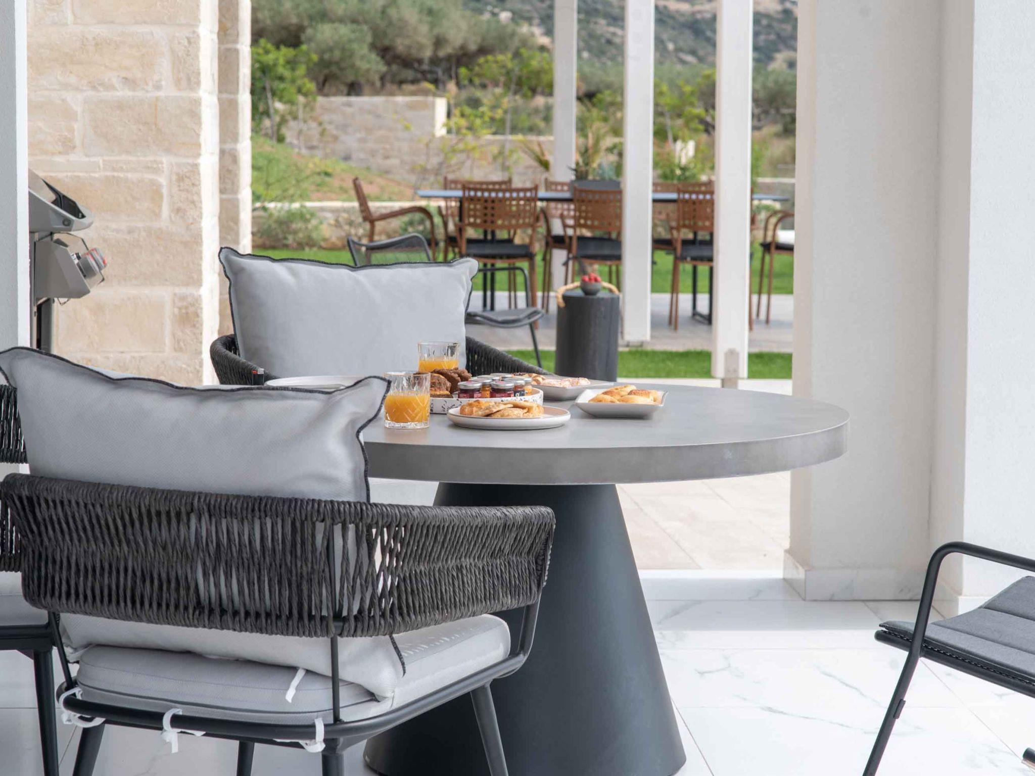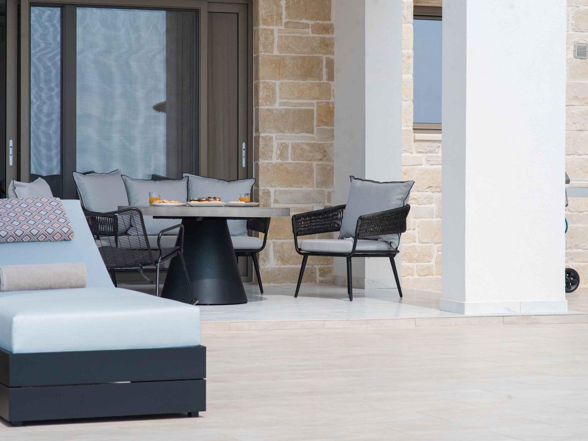 The spacious outdoor area offers panoramic sea views to the early sunrises, offering them beautiful sunsets too. Enjoy the sun and a good book under the sun! Last but not least for lovers of cocktails and drinks you can enjoy one right next to the dining area where you can relax and have some fun moments with your loved ones. Don’t forget that a secure parking area is provided outside the villa.