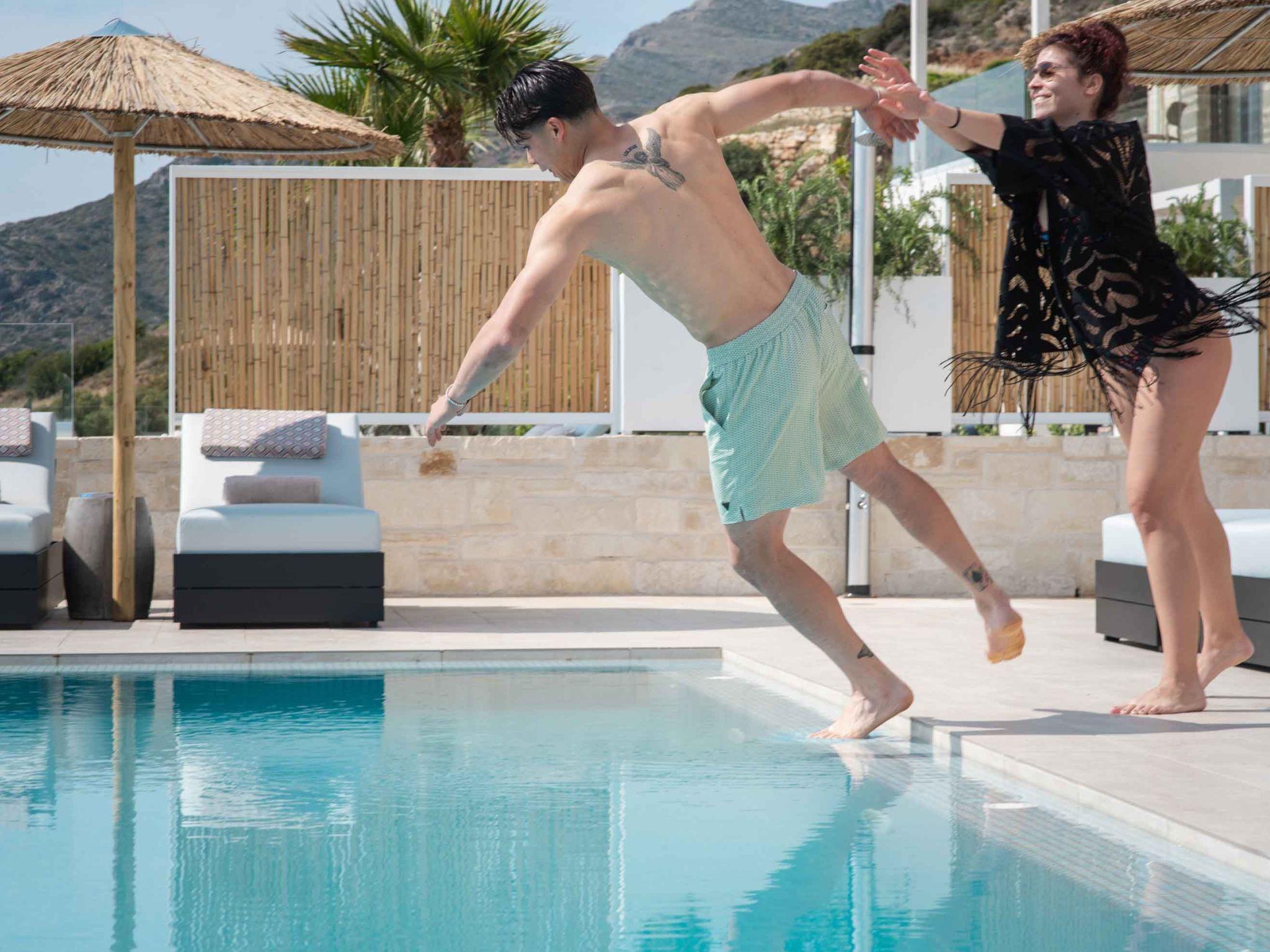 Actea Seaview Villa I is suitable for guests with mobility needs. Upon request, the bedroom on the ground floor can be converted into a bedroom for guests with mobility needs with a single mattress of 0.80x2.00. The bathroom on the same floor is already prepared for those guests, Last but not least, a pool lift can be added upon request at the swimming pool.