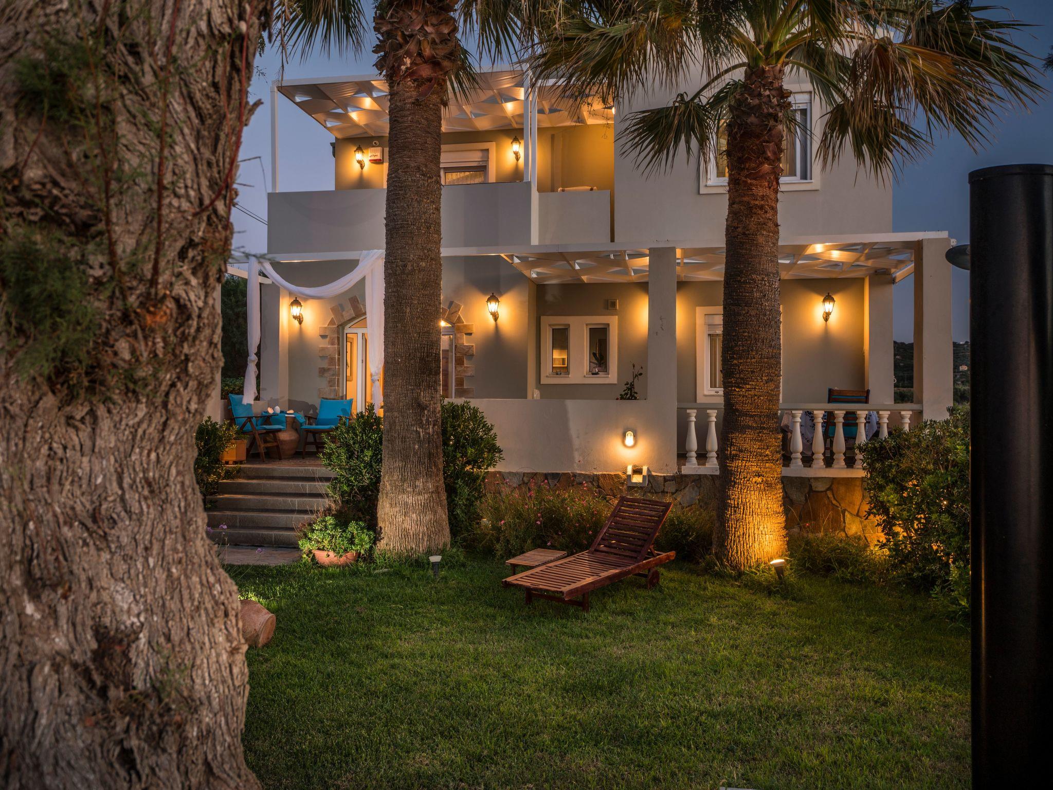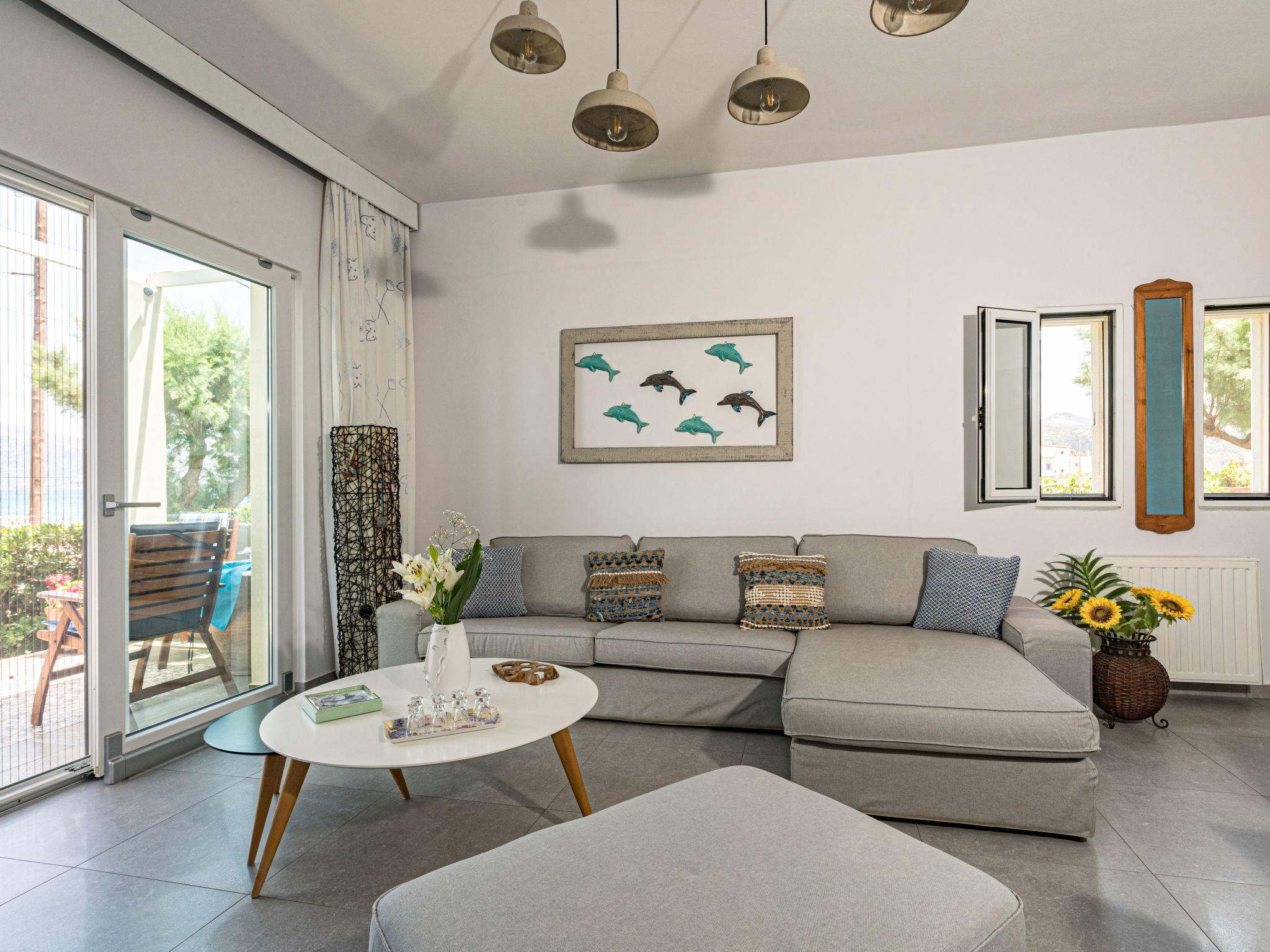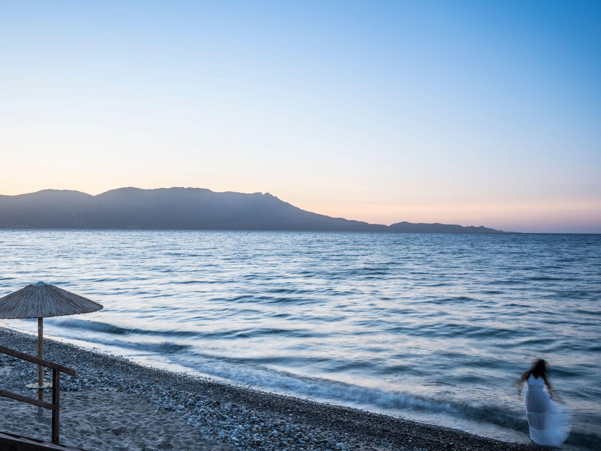 This exclusive holiday villa is located directly on Drapanias Beach in Kissamos (Chania/ Crete). Here you can enjoy a truly unique experience of the big blue sea. Situated in a unique location between two peninsulas, in the middle of Kissamos gulf, it also provides wonderful and romantic sunset views and a feeling of paradise. It is ideal for a spacious and tranquil living. Being in a not densely populated neighborhood, it guarantees privacy and real chill-out atmosphere.We have taken extra care for every single detail, from the bed linings and furniture to the electric devices and decoration, so that you can enjoy an exclusive and enjoyable stay.Just a few steps from the water away and offering spacious indoor and outdoor facilities (garden, terrace and balconies), this is the ideal choice for those loving high quality living standards and the sea or need a peaceful break, safeguarding their privacy and anonymity. It is the right choice for special guests or families with children.At your check-in you will have the chance to savour traditional Cretan tastes and enjoy Cretan products we have carefully chosen for you.The Exclusive Seafront Villa is located very close to internationally known beaches (Falassarna, Balos and Elafonissi are around the corner) and archaeological sites such as Gramvousa, Polirinea etc. For those loving night life and wandering around, Kissamos is at a 8km, Platanias at a 15km and the city of Chania at a 30km distance.How to reach the Big Blue Exclusive Seafront VillaOn the highway it's 30 km from Chania to Kissamos (Castelli). Driving past the big intersection to Nopigia, you will have to follow the signs leading to Drapanias Beach. Reaching the beach, you will find us after driving 300m on your right.