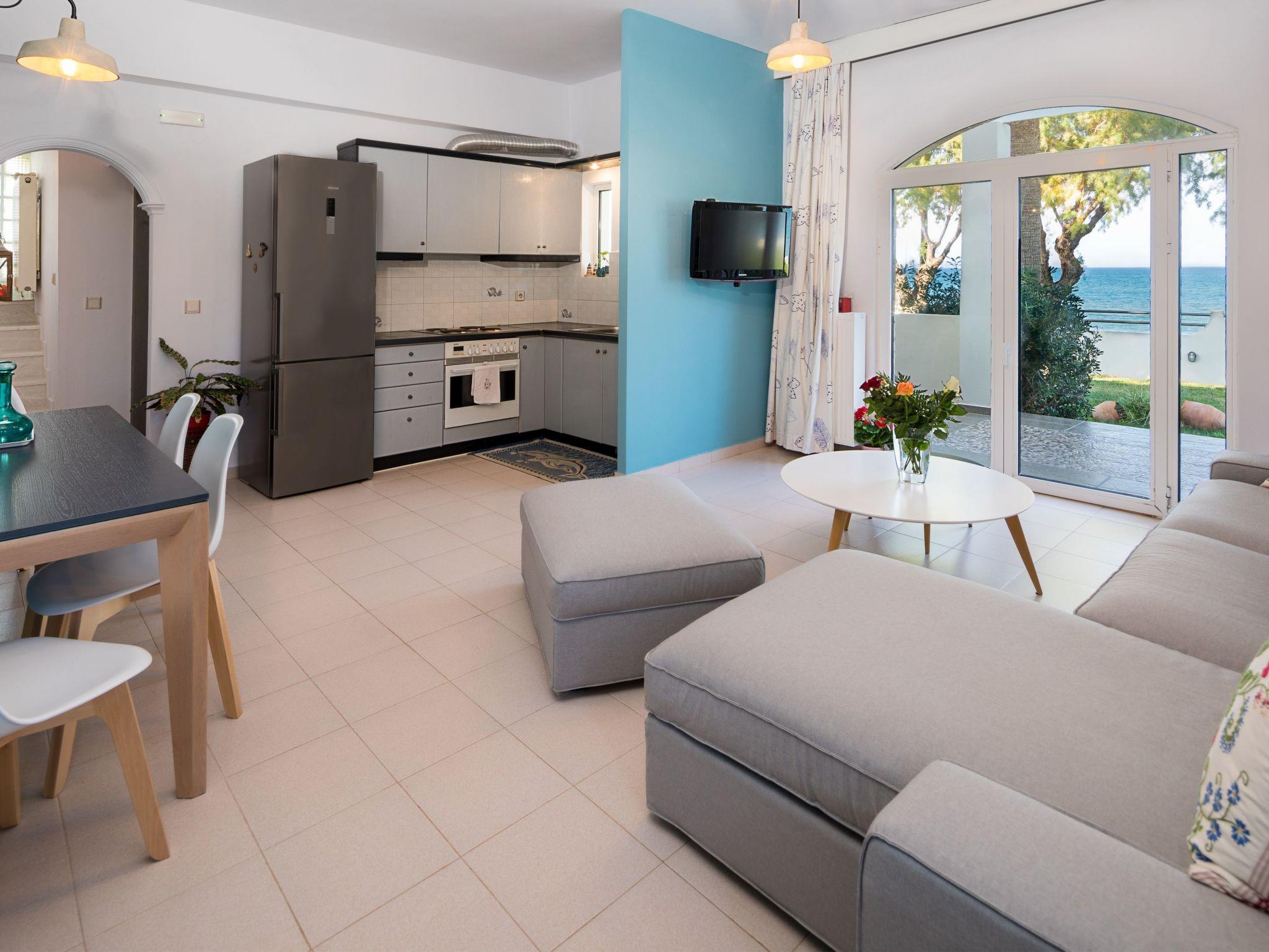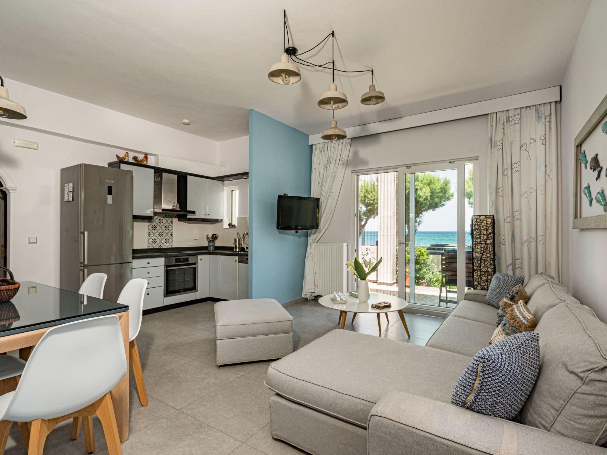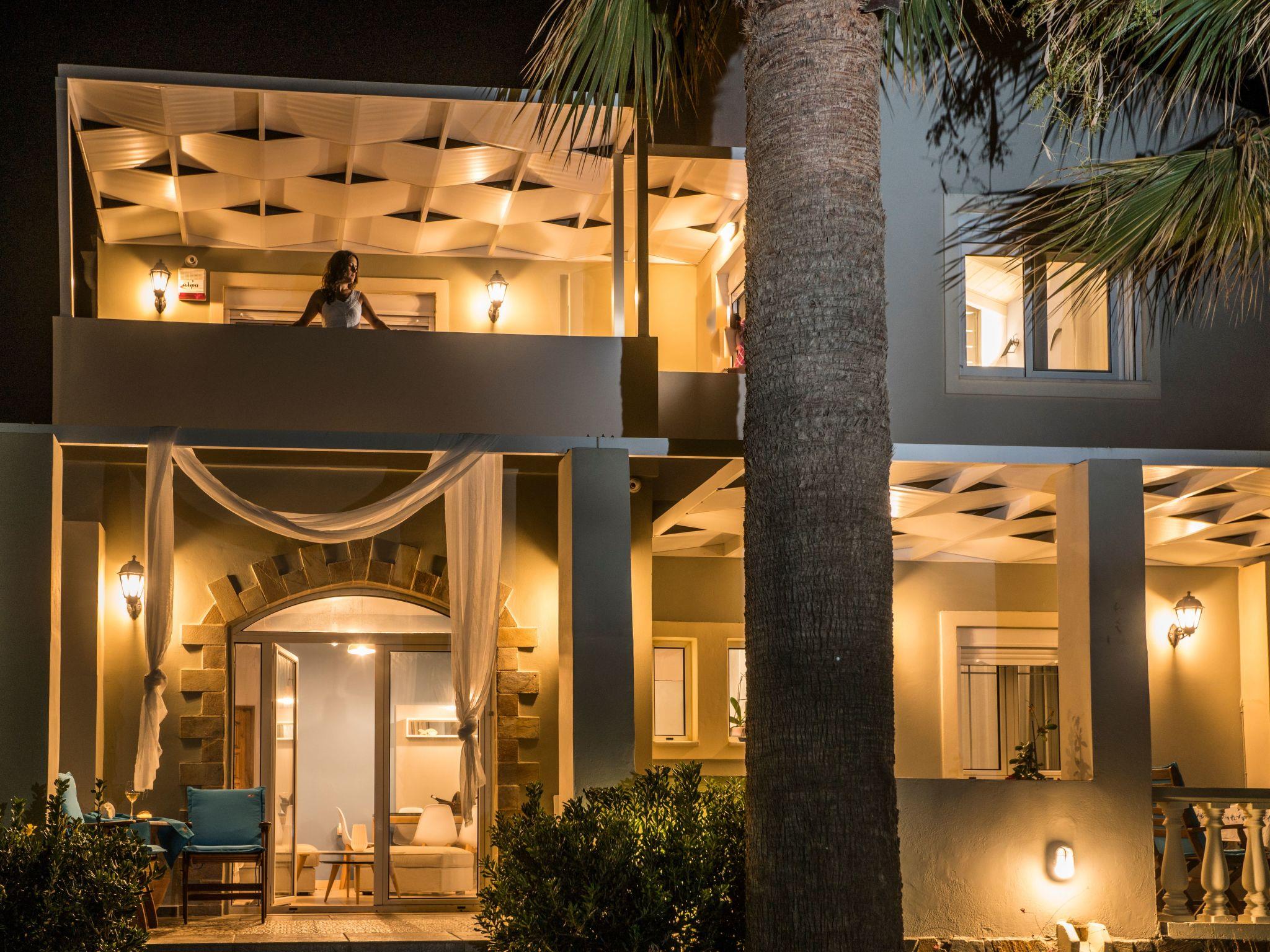 This exclusive holiday villa is located directly on Drapanias Beach in Kissamos (Chania/ Crete). Here you can enjoy a truly unique experience of the big blue sea. Situated in a unique location between two peninsulas, in the middle of Kissamos gulf, it also provides wonderful and romantic sunset views and a feeling of paradise. It is ideal for a spacious and tranquil living. Being in a not densely populated neighborhood, it guarantees privacy and real chill-out atmosphere.We have taken extra care for every single detail, from the bed linings and furniture to the electric devices and decoration, so that you can enjoy an exclusive and enjoyable stay.Just a few steps from the water away and offering spacious indoor and outdoor facilities (garden, terrace and balconies), this is the ideal choice for those loving high quality living standards and the sea or need a peaceful break, safeguarding their privacy and anonymity. It is the right choice for special guests or families with children.At your check-in you will have the chance to savour traditional Cretan tastes and enjoy Cretan products we have carefully chosen for you.The Exclusive Seafront Villa is located very close to internationally known beaches (Falassarna, Balos and Elafonissi are around the corner) and archaeological sites such as Gramvousa, Polirinea etc. For those loving night life and wandering around, Kissamos is at a 8km, Platanias at a 15km and the city of Chania at a 30km distance.How to reach the Big Blue Exclusive Seafront VillaOn the highway it's 30 km from Chania to Kissamos (Castelli). Driving past the big intersection to Nopigia, you will have to follow the signs leading to Drapanias Beach. Reaching the beach, you will find us after driving 300m on your right.