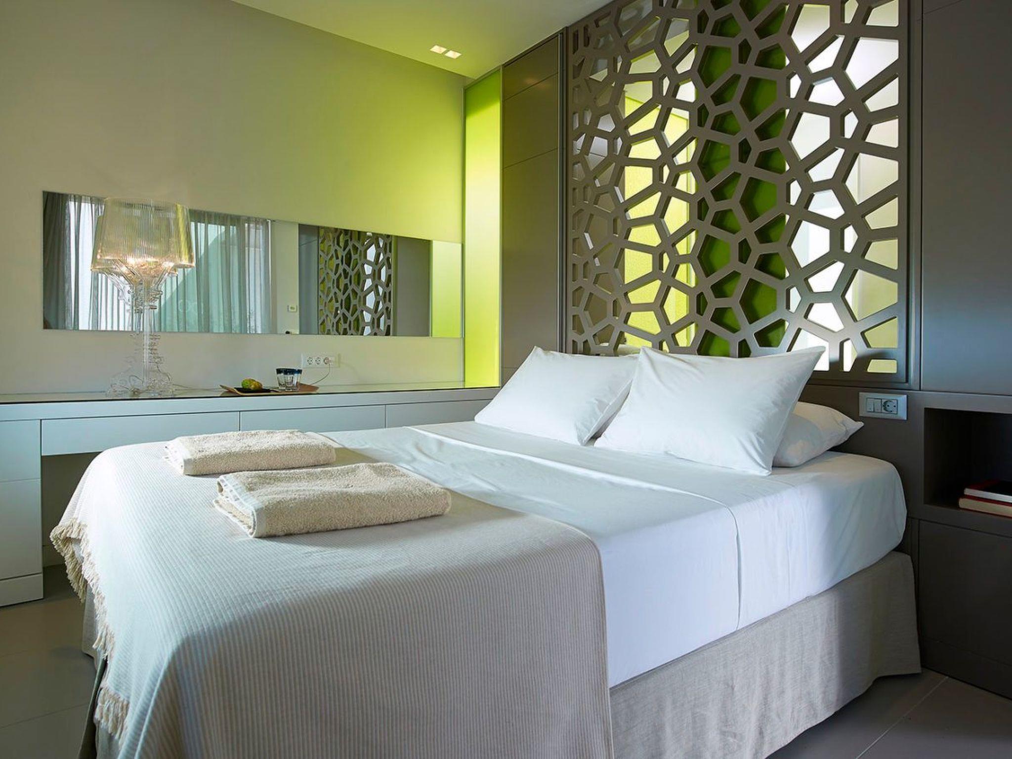 The villa’s exterior is a testament to the luxury of Cretan outdoor living. A natural stone terrace fronts the property, leading to a private infinity pool with the enchanting Cimentogonia surface and full-width Roman steps. The pool area, manageable with a Pool Heat Pump and a provided pool cover, makes for a perfect setting to relax at approximately 28°C, depending on the weather. Complete with outdoor dining and a barbecue, guests can enjoy alfresco meals while surrounded by mature gardens that guarantee privacy and tranquility.