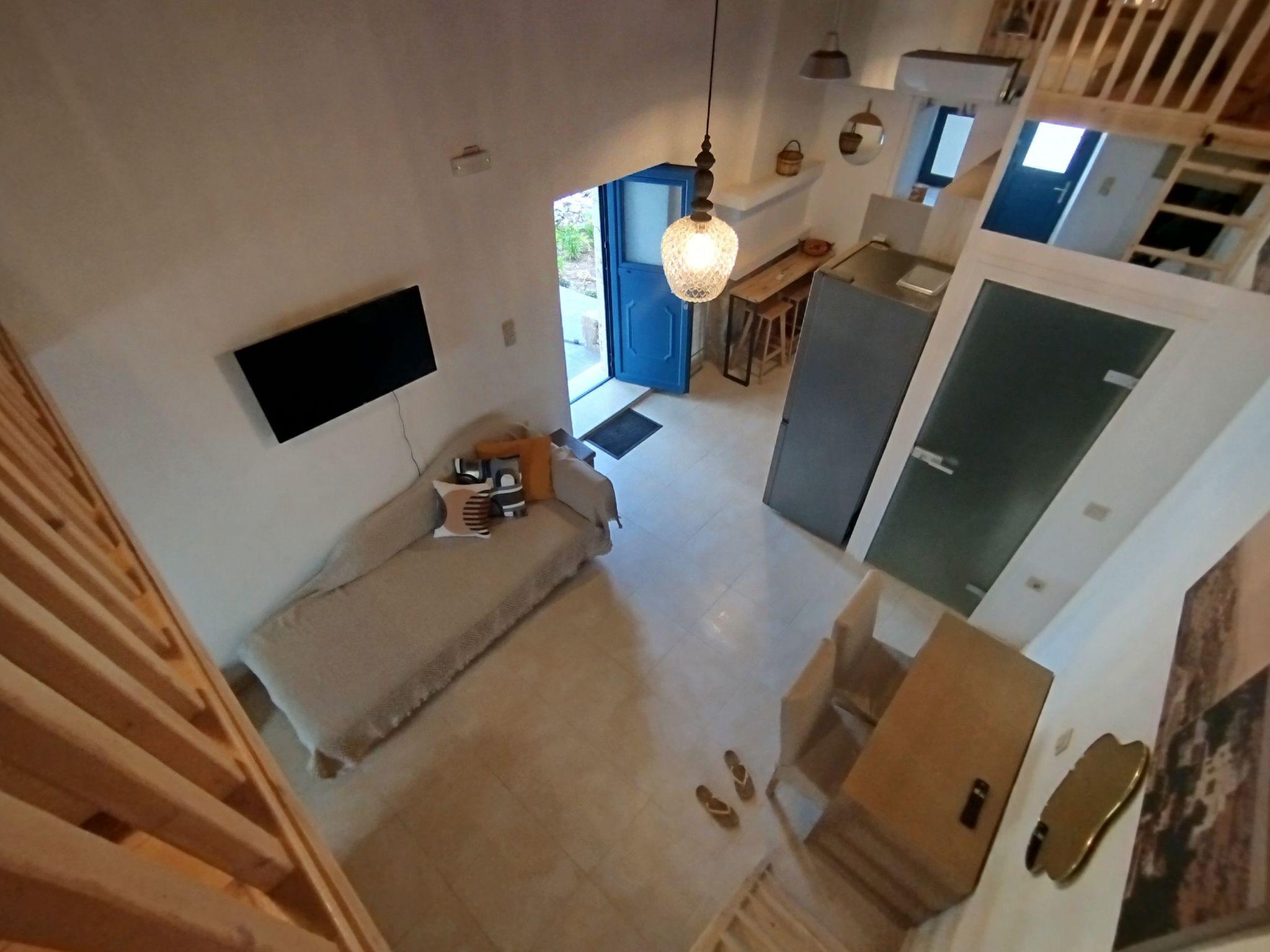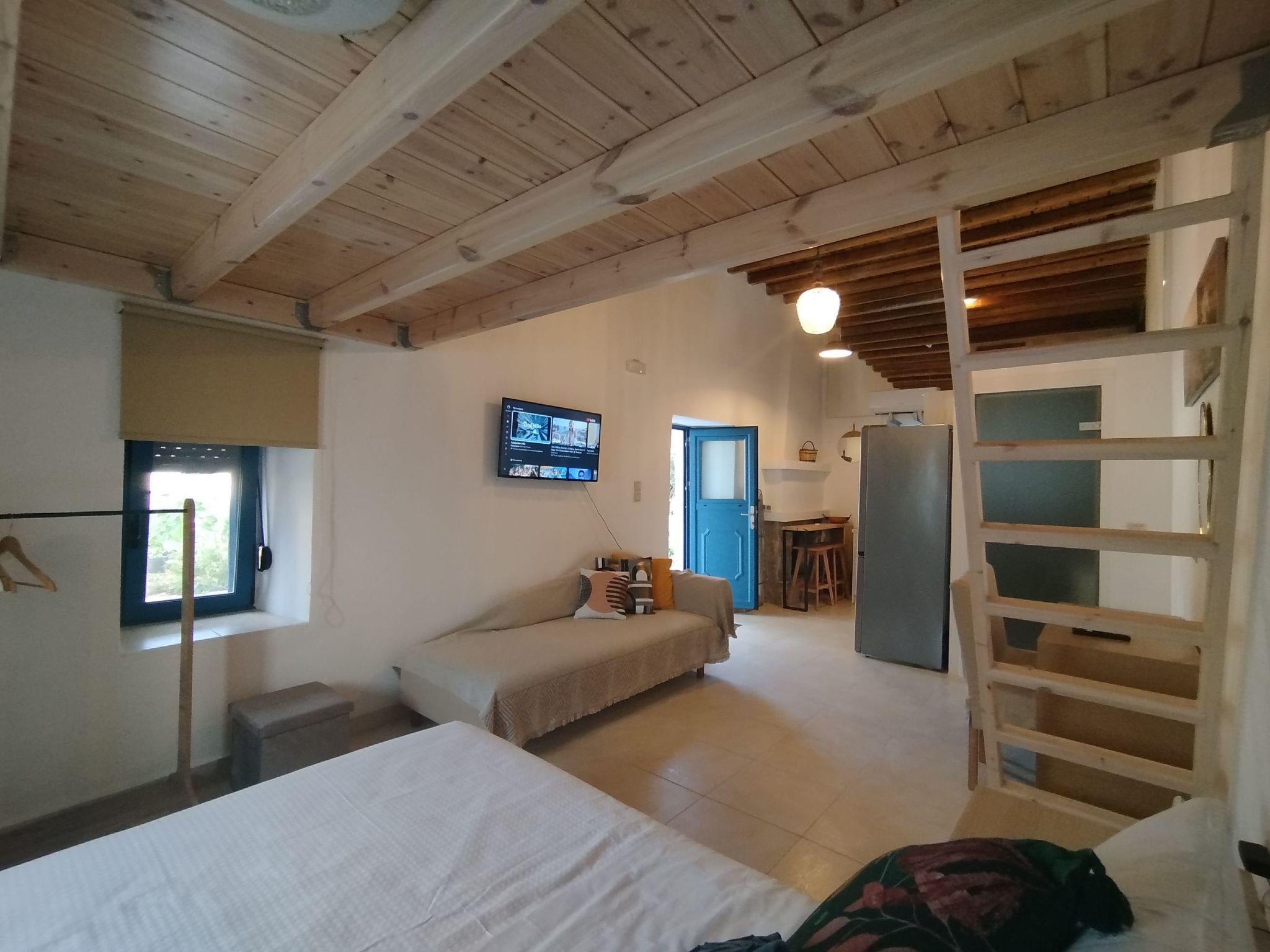 The house combining the age-old airy, bright and perfectly adapted to nature- simple architecture of the islands - where the white of the light and the blue of the sea dominates- is 80% energy efficient, cool in summer and warm in winter.It has a modern kitchen, a mini living room with a sofa and working desk, wooden loft-bedroom reached by a wooden ladder, according to old-traditional ?nterior design .The exterior spaces are in perfect harmony with the green and energetic nature next to a garden with flowers, neighboring estates with trees and other traditional houses of the village with hospitable and kind people.