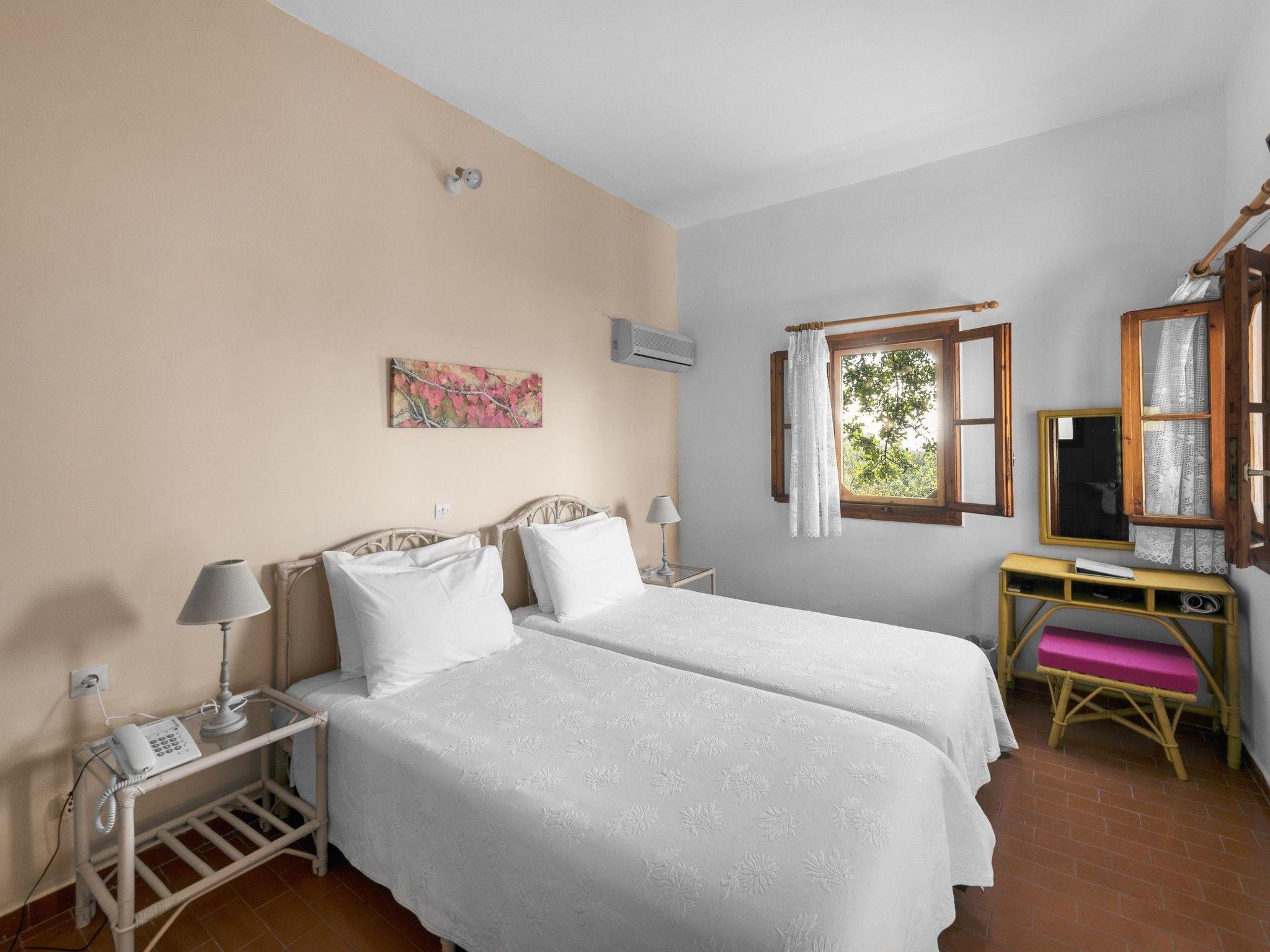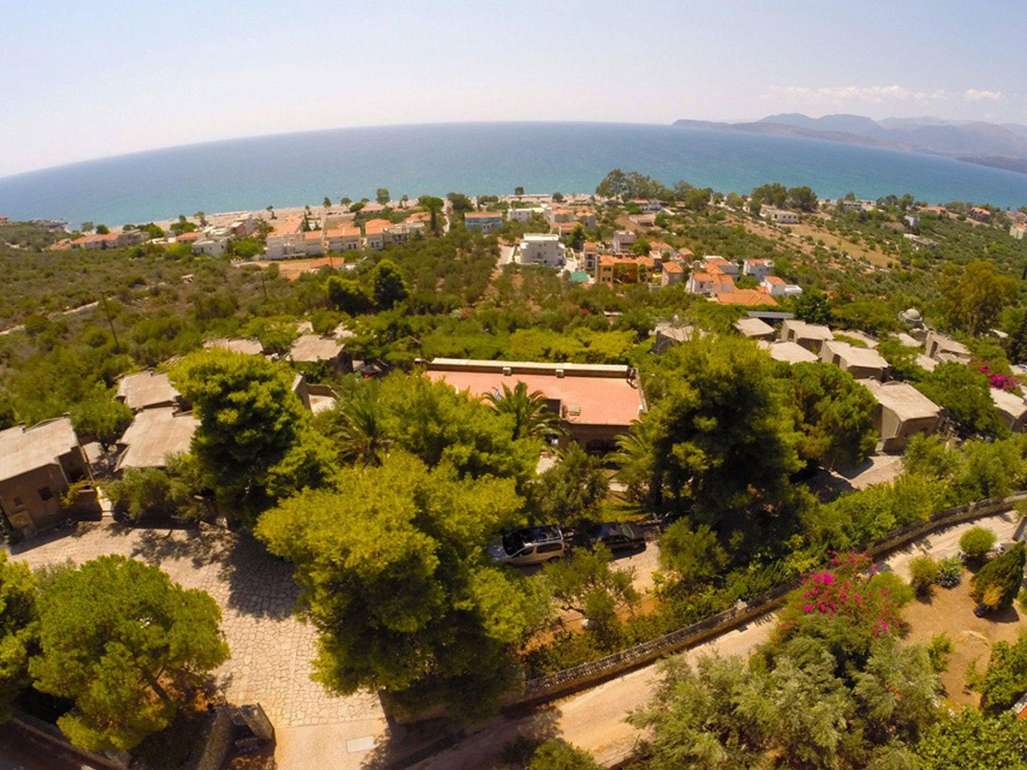 Location: Completely quiet on a large plot of land with olive and pine trees on a hillside on the edge of the pretty village of Mavrovouni. The complex is located above the long sandy beach, which can be reached via a small side road. There are 3 tavernas and a beach bar along the beach and a surf school 1.5 km away.