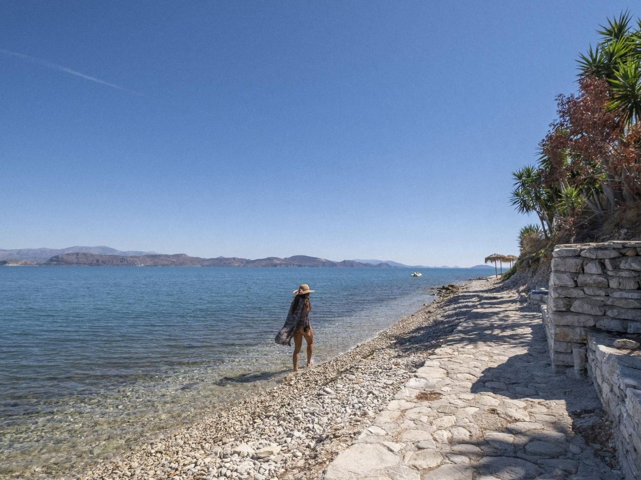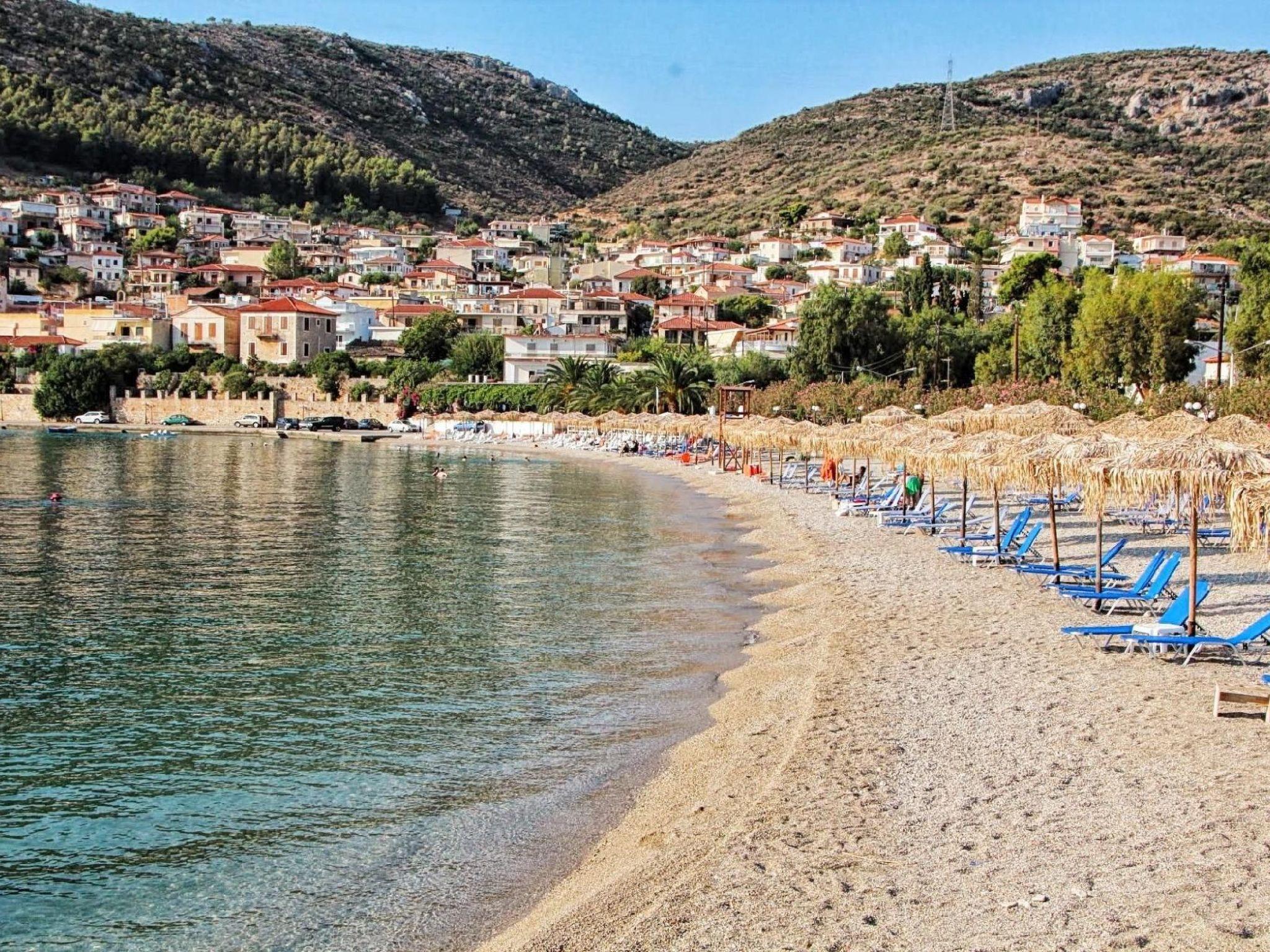 This building with its holiday apartments is located in the Kiveri village just few kilometre away from Nafplio and Argos in Argolis in Peloponnese region.It lies directly beside the crystal-clear sea and has its own beach. Our steps drive direct to a small beach front of the apartment.Also in a walking distance there are two public beaches in Kiveri village with sunbeds.Only 300m to 800m away by foot there sre taverns, restaurans, coffe shops, supermarket, bakery e.t.c.There is a bus station 500m away from the apartment.Waterfront holiday apartments, in Kiveri village, close to Nafplio, Mycenae, Epidaurus and the most archeological sites in Argolis