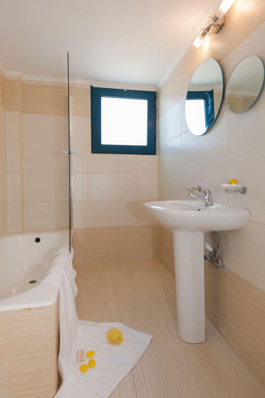 Inside, the house boasts a welcoming ground floor, featuring a cozy living room complete with a fireplace and satellite TV for relaxing evenings in. The adjacent dining space flows into a modern, fully-equipped kitchen that includes a dishwasher, oven, fridge, coffee machine, microwave, toaster, and kettle, making meal preparation a breeze. The ground floor is also home to one of the four bedrooms, furnished with a single bed, alongside a bathroom equipped with a shower and WC. The upper floor reveals three more bedrooms, ensuring ample space for guests, including one bedroom with a single bed. This level also hosts two additional bathrooms, one of which conveniently houses a washing machine, and all bedrooms are delicately designed for comfort with air conditioning.